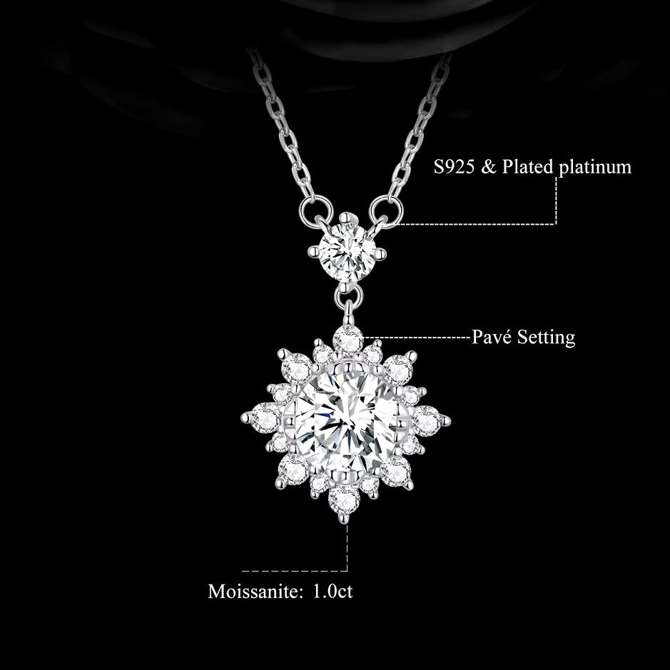Expertly crafted, this 1CT Moissanite pendant necklace showcases a stunning radiant halo design in 925 sterling silver. The center stone shines bright with fire and brilliance, surrounded by a sparkling cubic zirconia halo. Elevate any outfit with this high-quality, timeless piece.