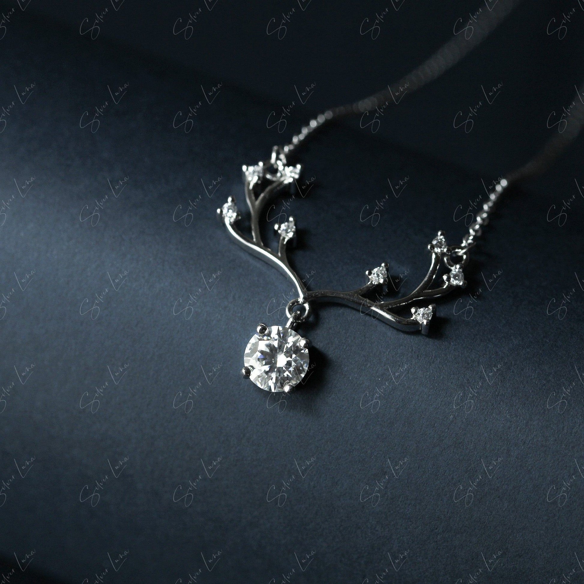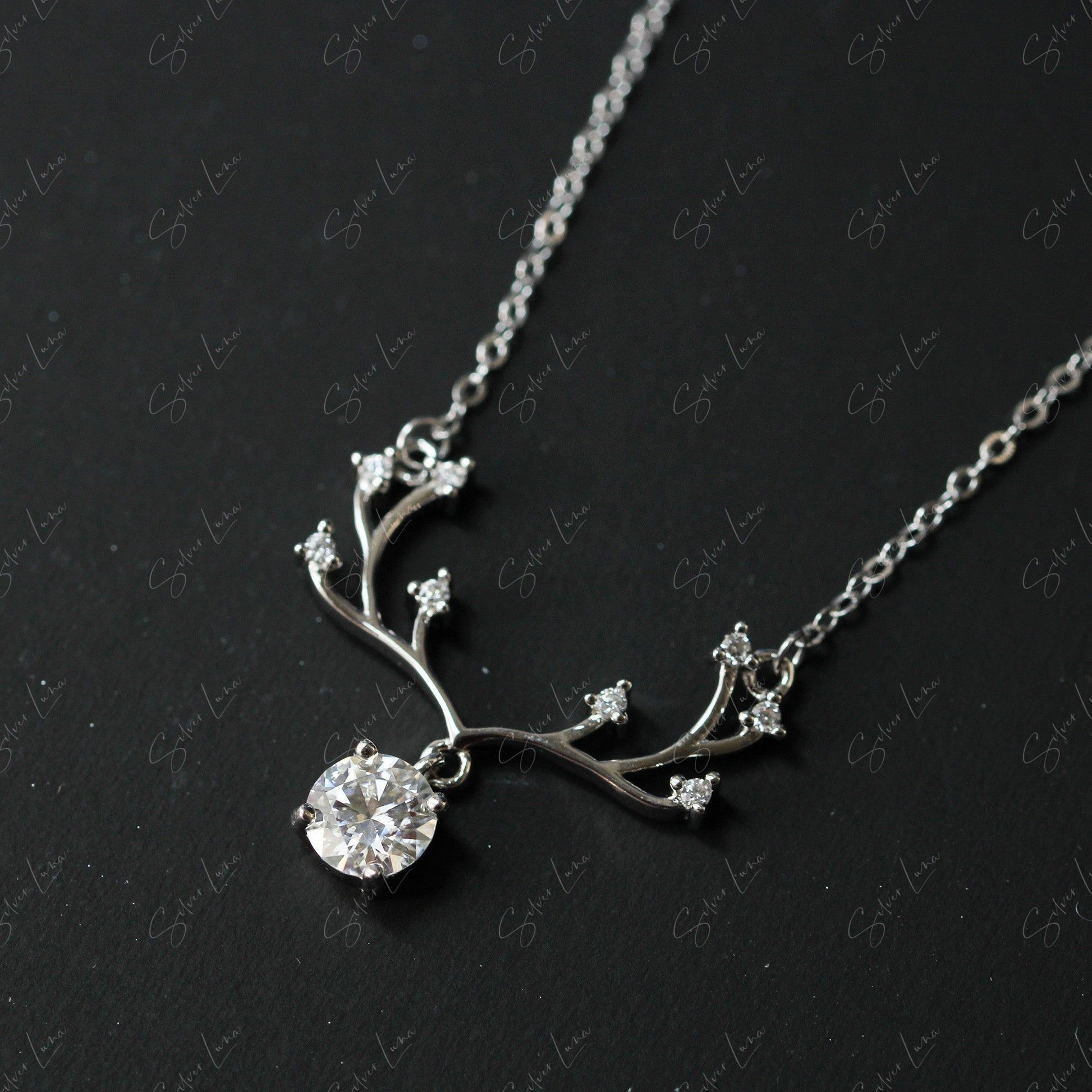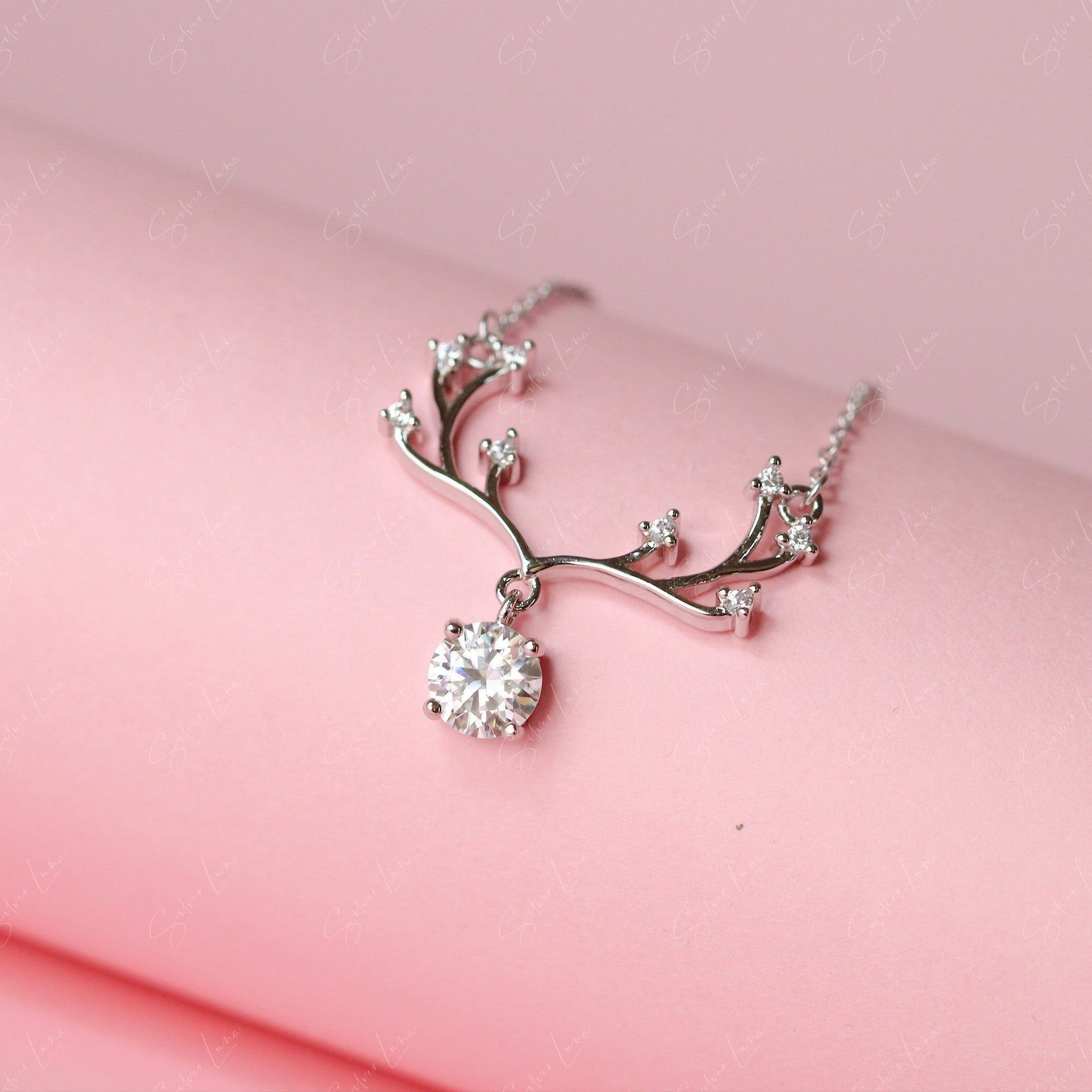 1CT Moissanite el antler pendant necklace