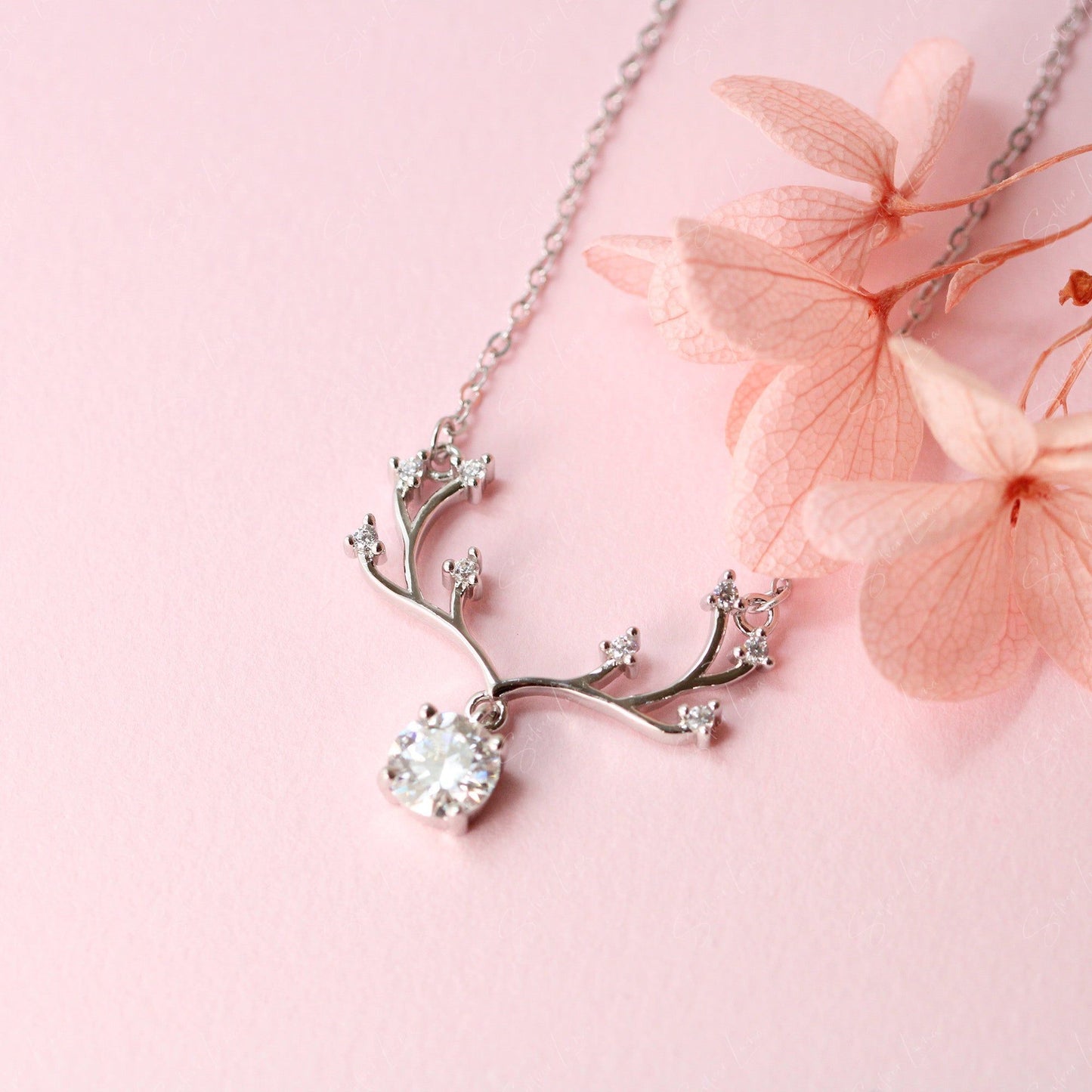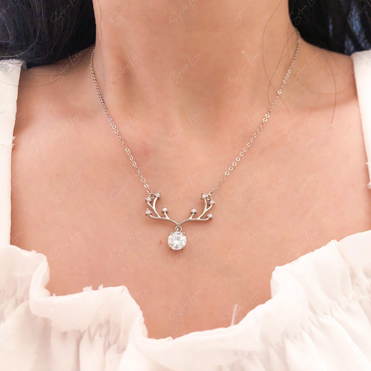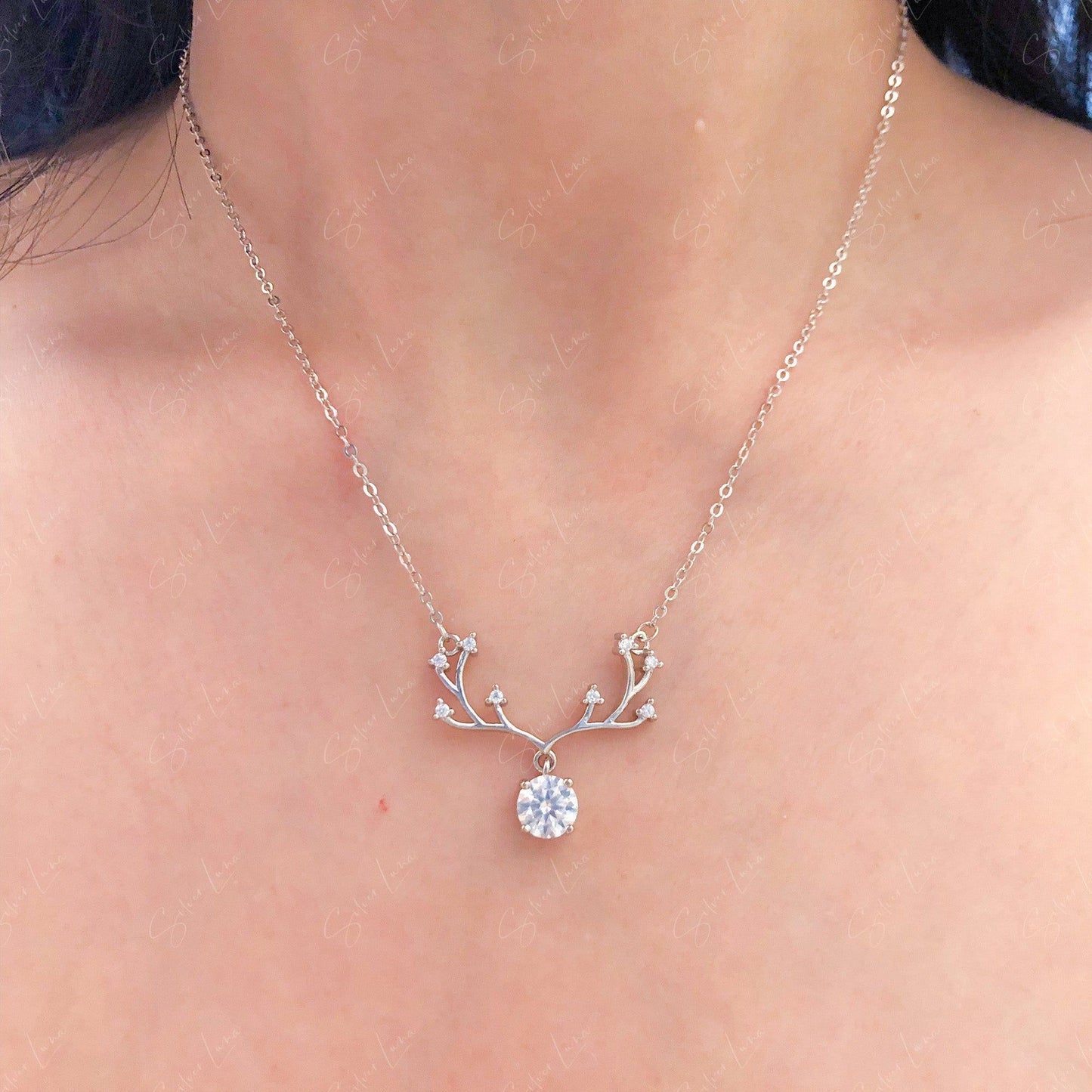 1CT Moissanite el antler pendant necklace