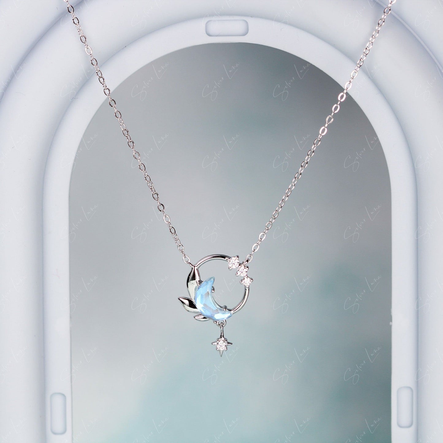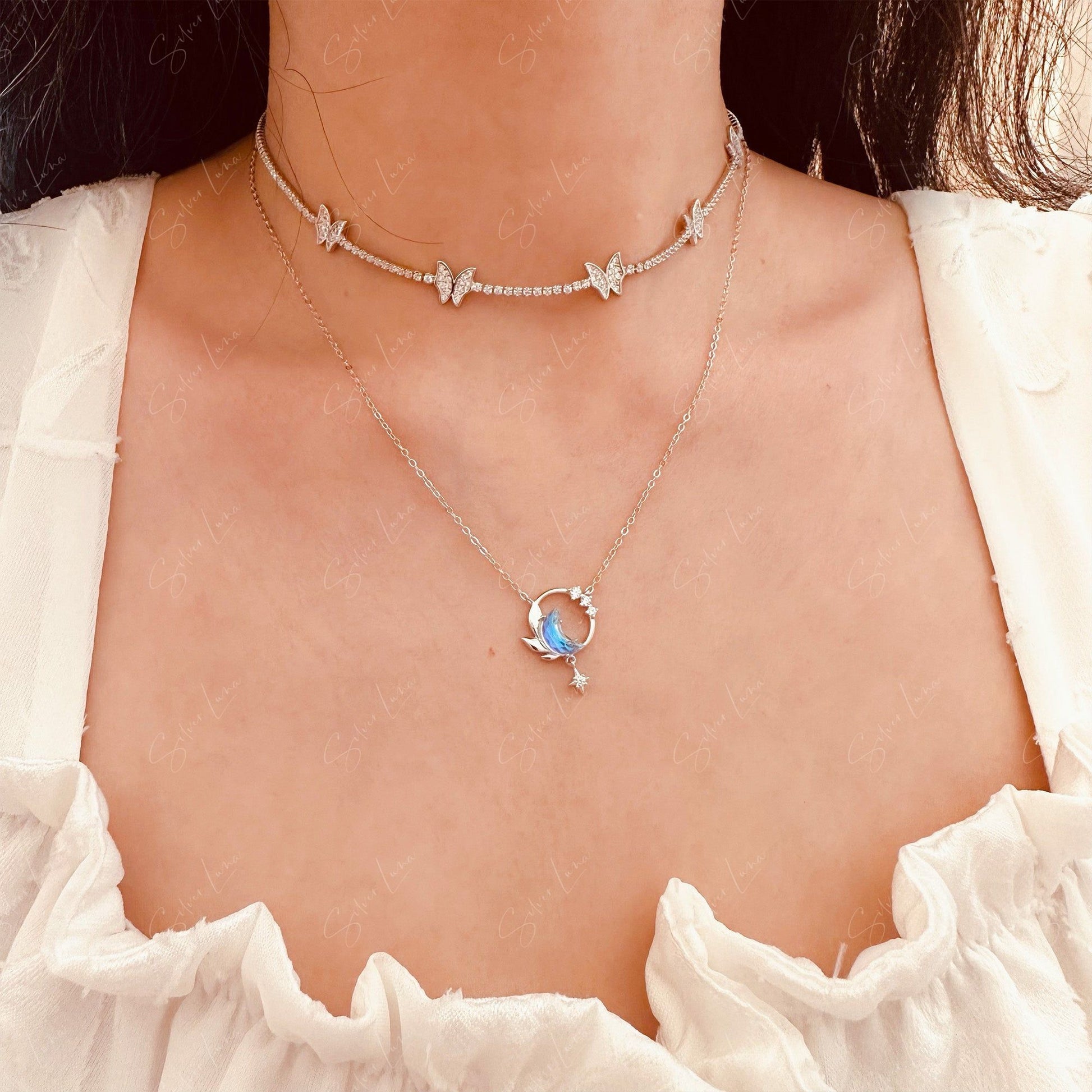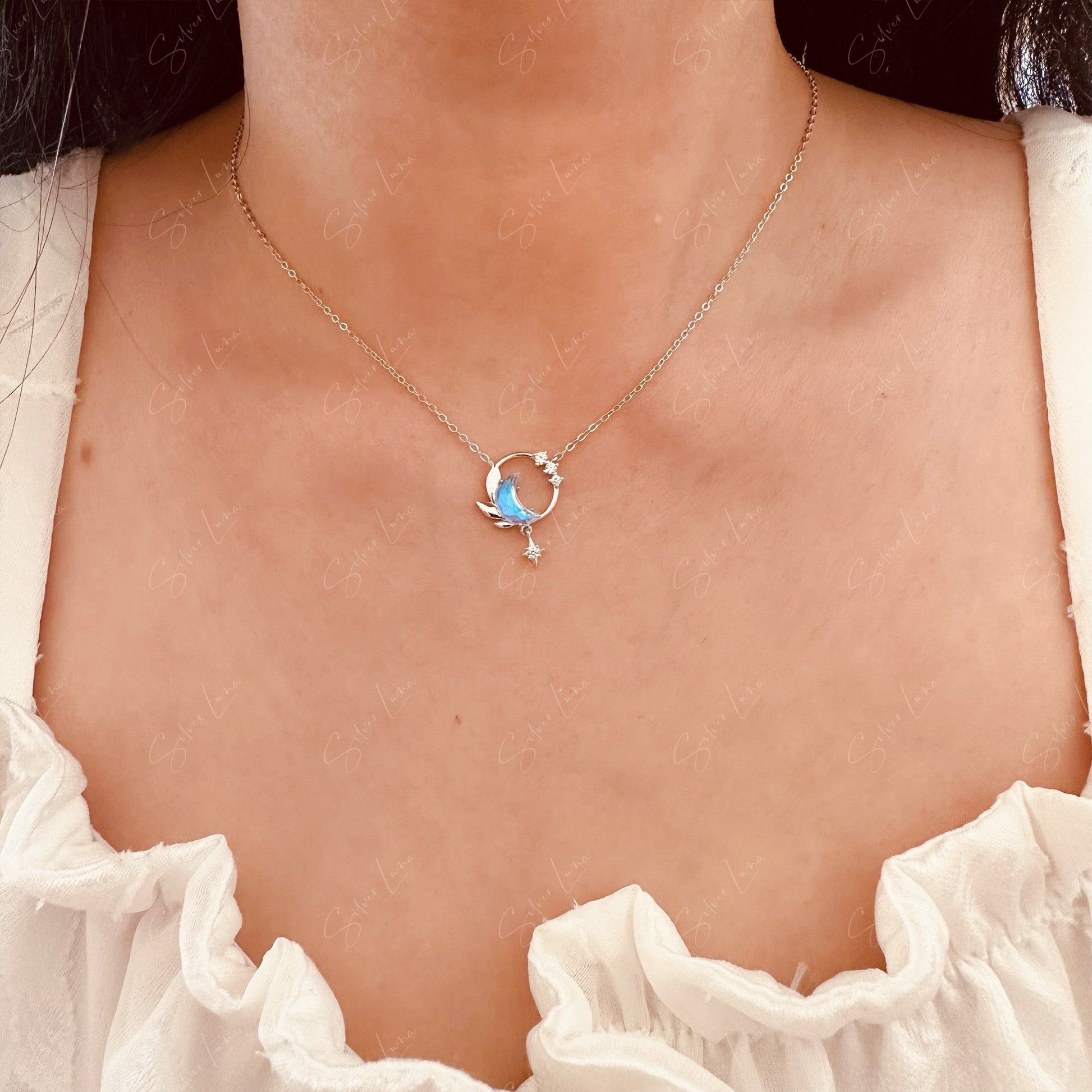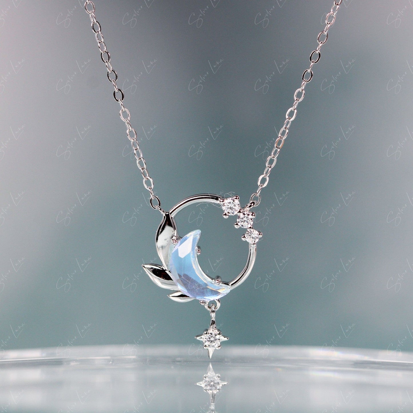Enhance your jewelry collection with this breathtaking crystal moon pendant necklace made from high-quality 925 sterling silver and plated with platinum. The intricate pendant design features sparkling cubic zirconia stones, making it a perfect gift for a special loved one or a luxurious addition to your everyday accessories.