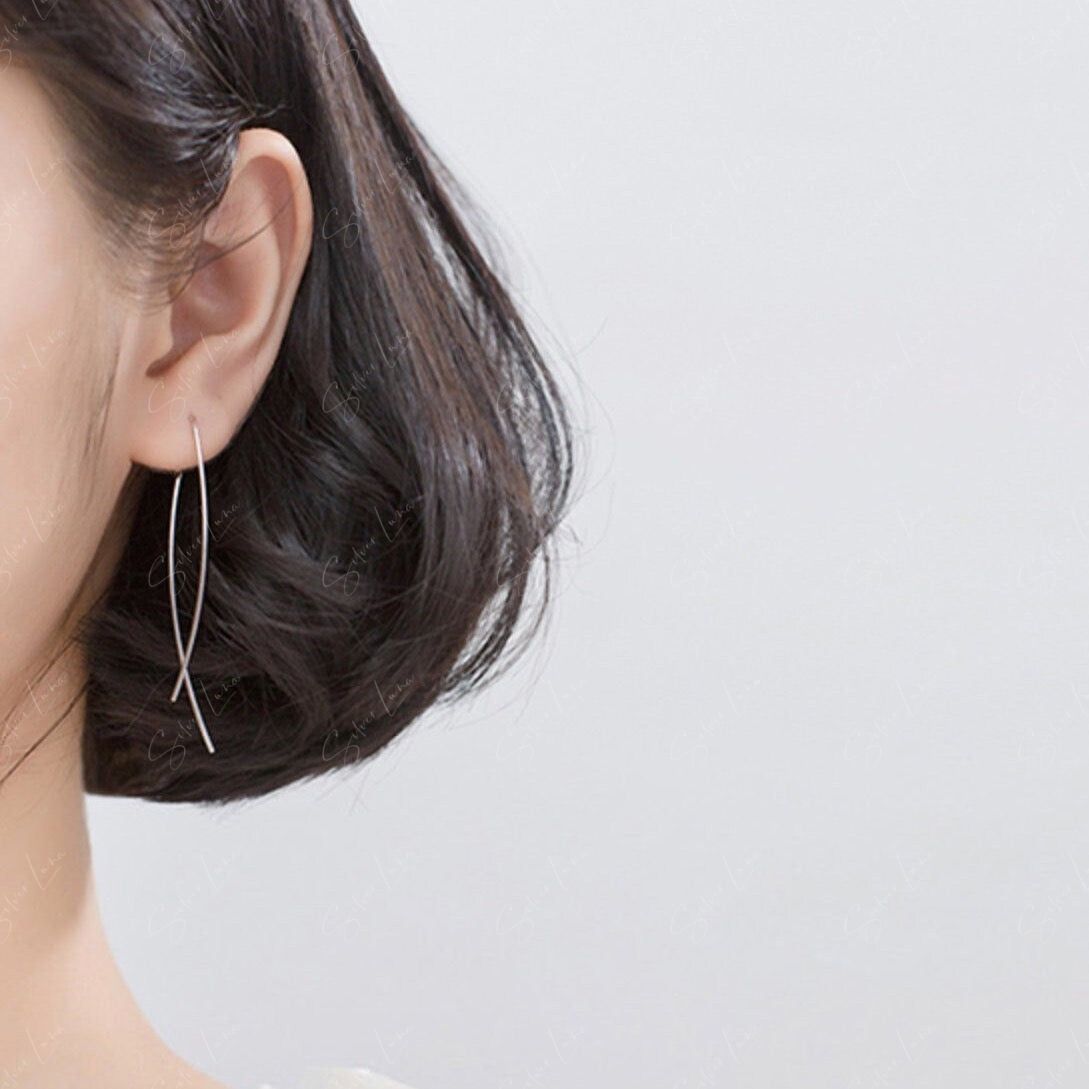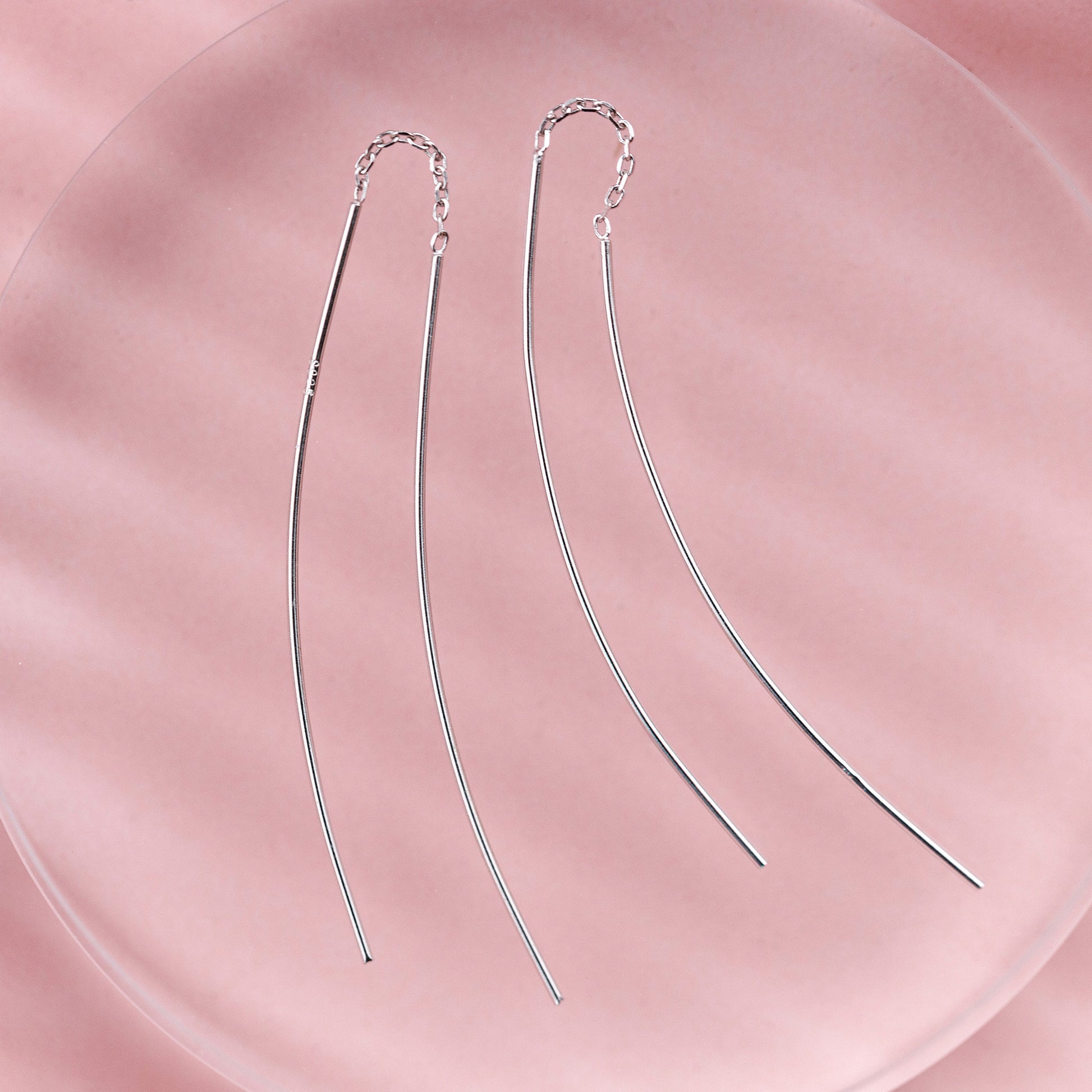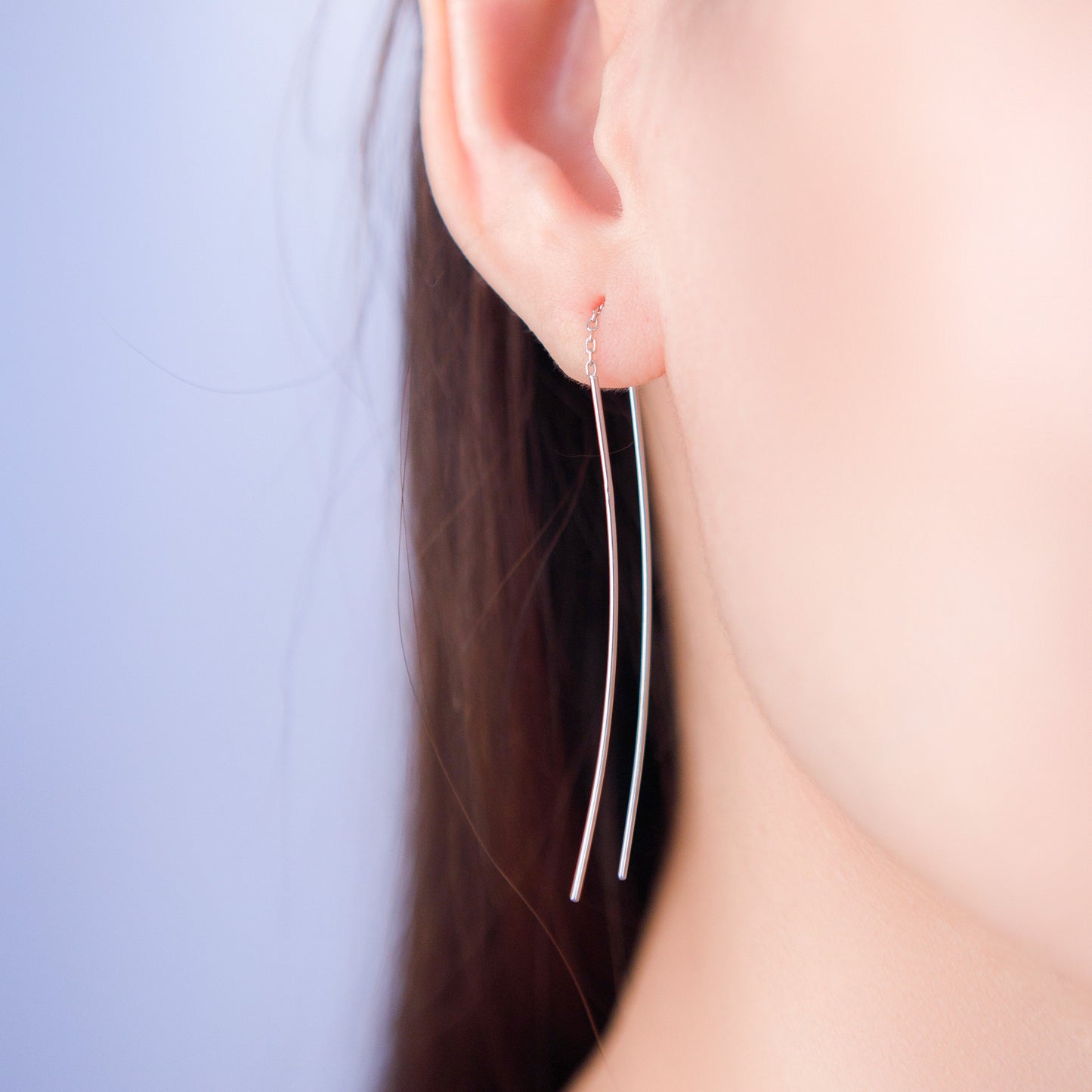 These stunning double stick dangle drop earrings add a touch of elegance to your ensemble. With one stick behind and one in front, they effortlessly go through your ear holes. Made of solid 925 sterling silver, these simple minimalist earrings are a must-have.