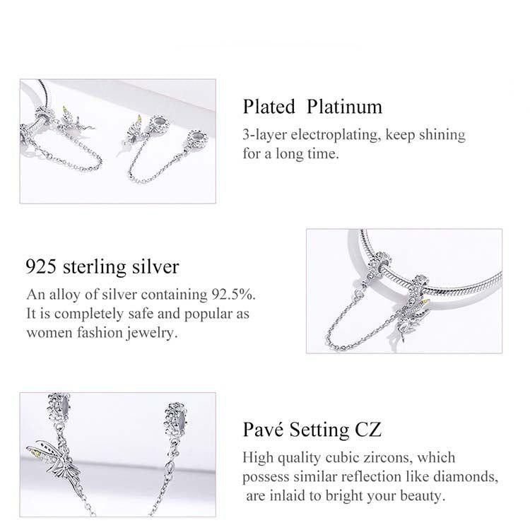 Fairy sterling silver safety chain for charm bracelets