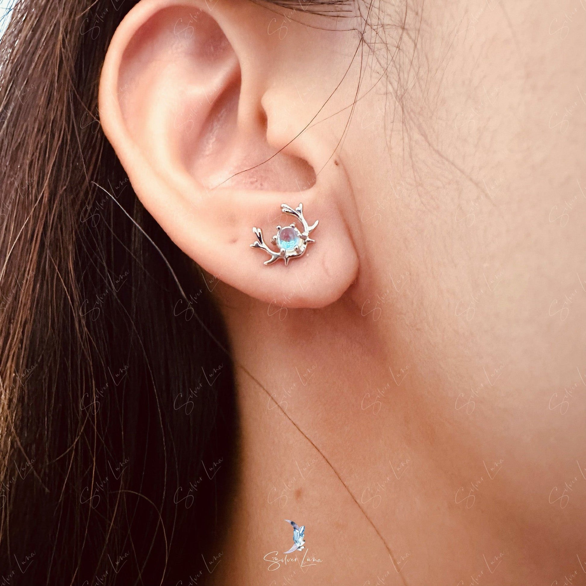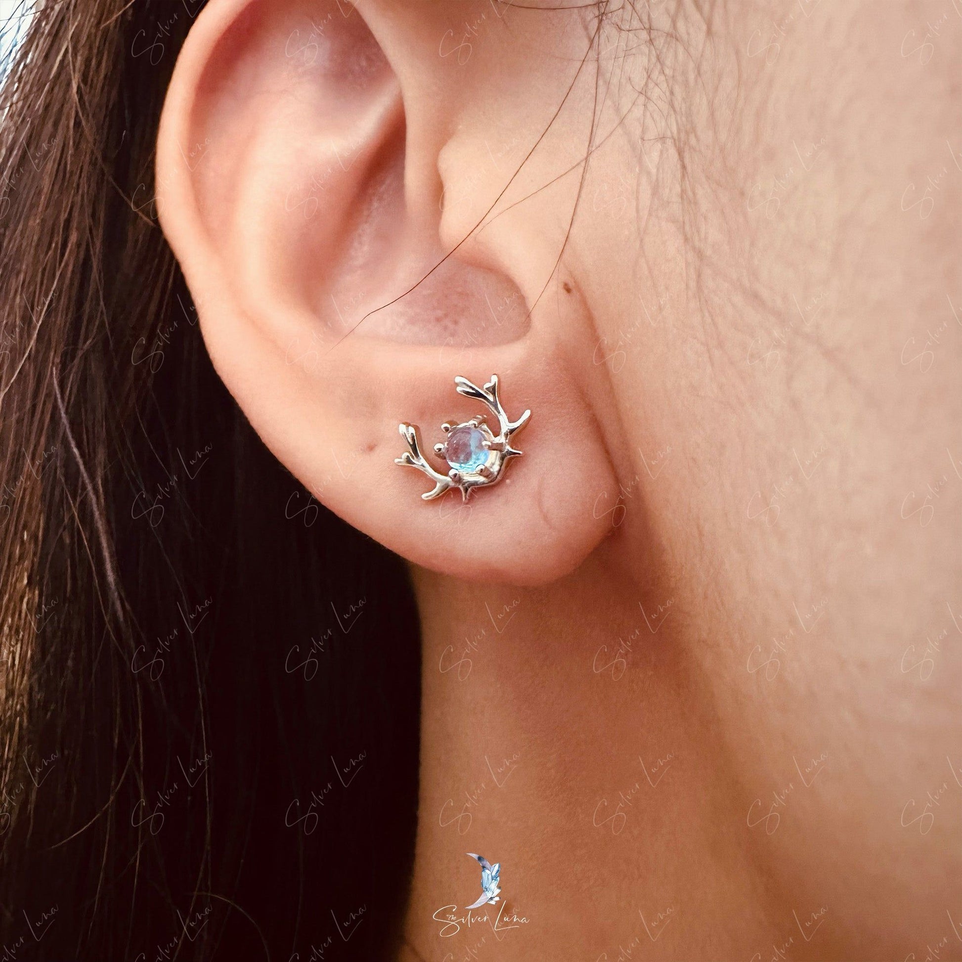 Stylish and elegant, these Elk Antler stud earrings showcase a holographic crystal stone at the center and intricate antler design. Made with high-quality 925 sterling silver and platinum plating, these holiday earrings are the perfect gift for your loved ones.