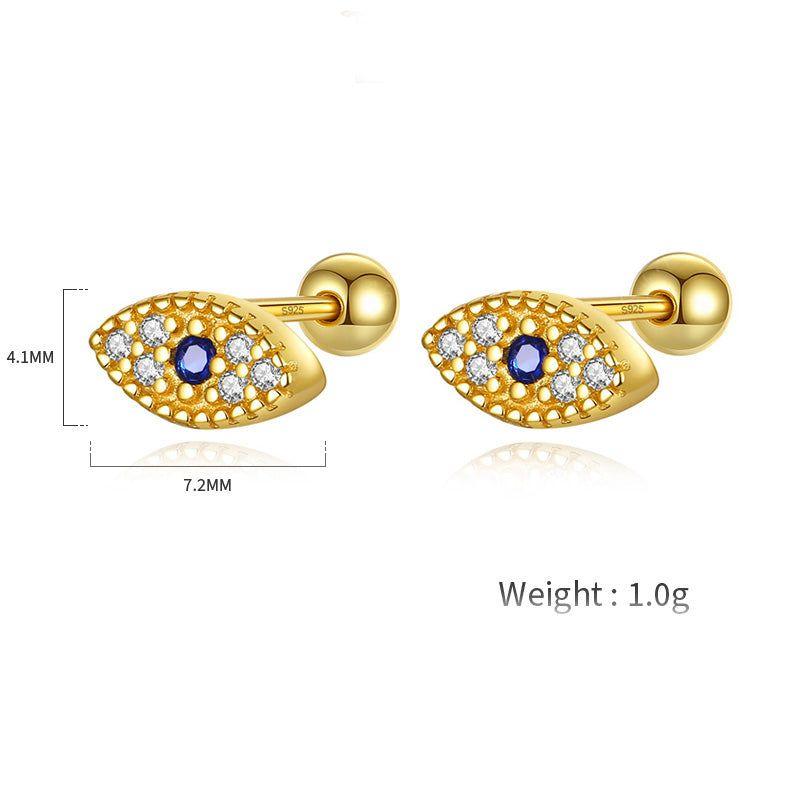 These petite sterling silver earrings feature an evil eye motif in either gold or silver tones with a screw back that adjusts for lobes and cartilage piercings. The evil eye screw back studs are crafted from solid 925 sterling silver with platinum or gold plating and cubic zirconia inlay, offering lightweight comfort and chic style that wards off unwanted gazes. Slip these on for a subtle, stately accent to any ensemble while gaining Turkish evil eye protection.