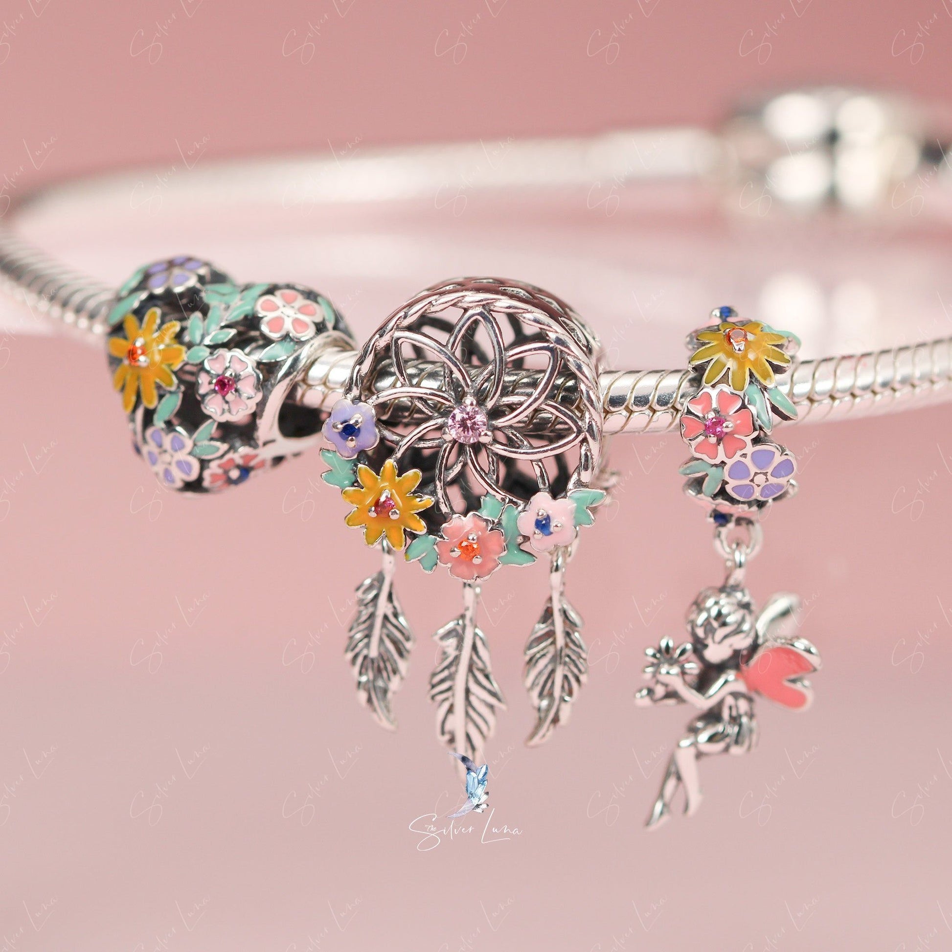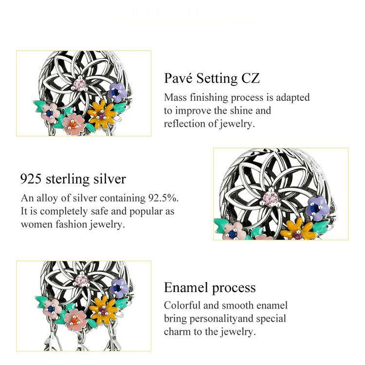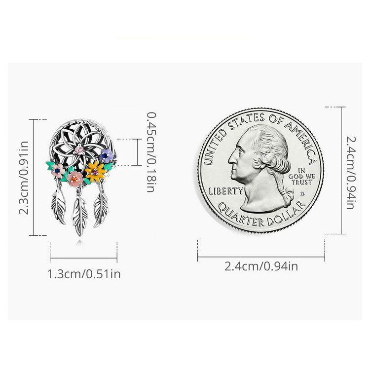 Infuse a touch of floral beauty into your dream catcher charm with this exquisite pendant. This 925 sterling silver beauty showcases a large, enamel-colored dream catcher design with a vibrant flower decoration. Use it to enhance your bracelet, or gift it to a cherished loved one.