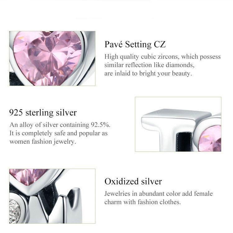 Discover the perfect gift for your mother, featuring the stunning 3D design of the phrase "I LOVE MOM". Crafted with solid 925 sterling silver and adorned with sparkling cubic zirconia gemstones, this charm is finished with platinum plating for a luxurious and enduring shine. It's the ultimate charm to add to any bracelet, or you can explore our selection of charm bracelets for the perfect match.