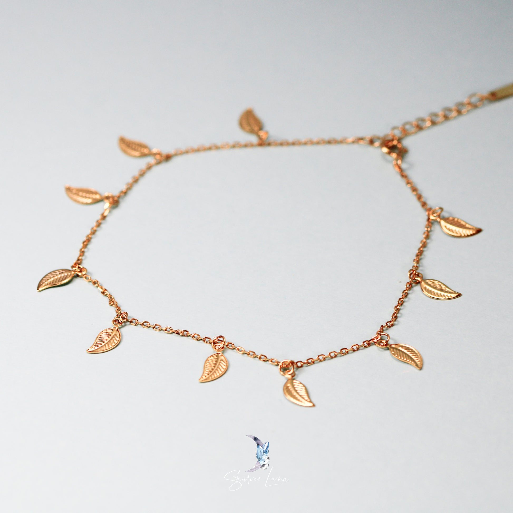 Bohemian leaves charm sterling silver anklet