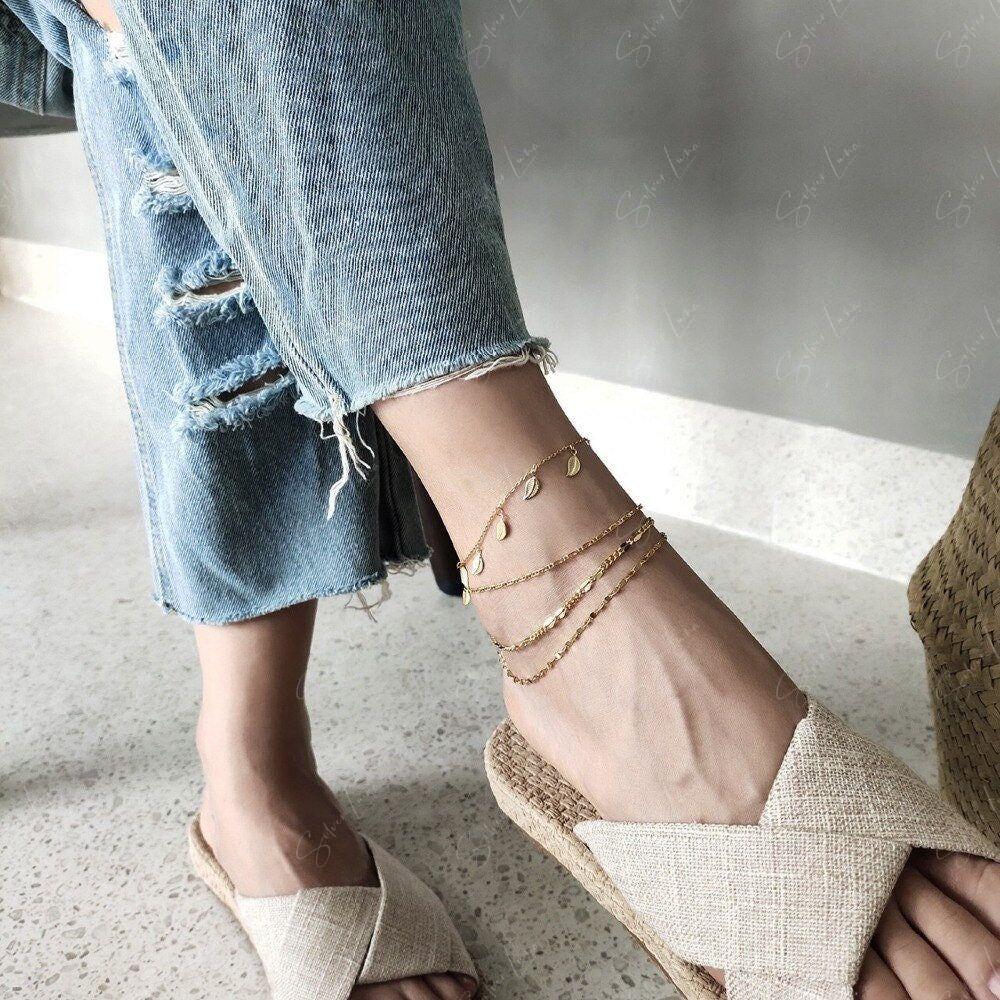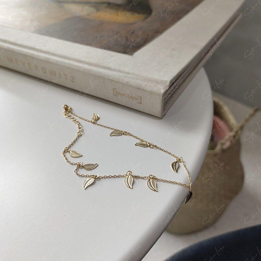 Add a touch of whimsy to your everyday look with this 925 sterling silver leaf charm anklet, featuring a 14k gold plated finish. Whether you're walking in the sun or dressing up for a night out, this dainty and cute body jewelry will shine with you. Make a statement and add this ankle bracelet to your collection, perfect for pairing with your favorite sandals.