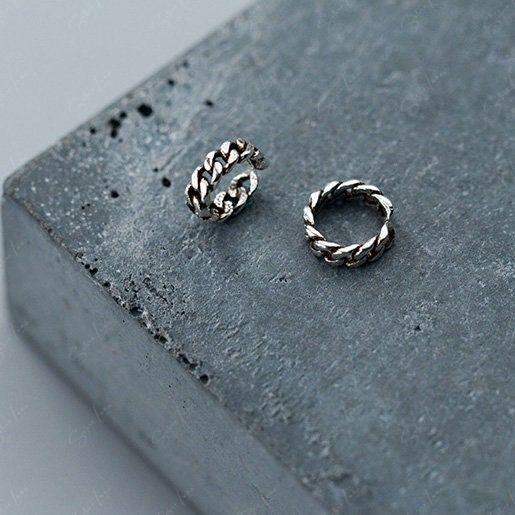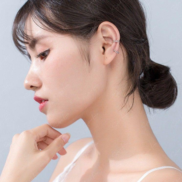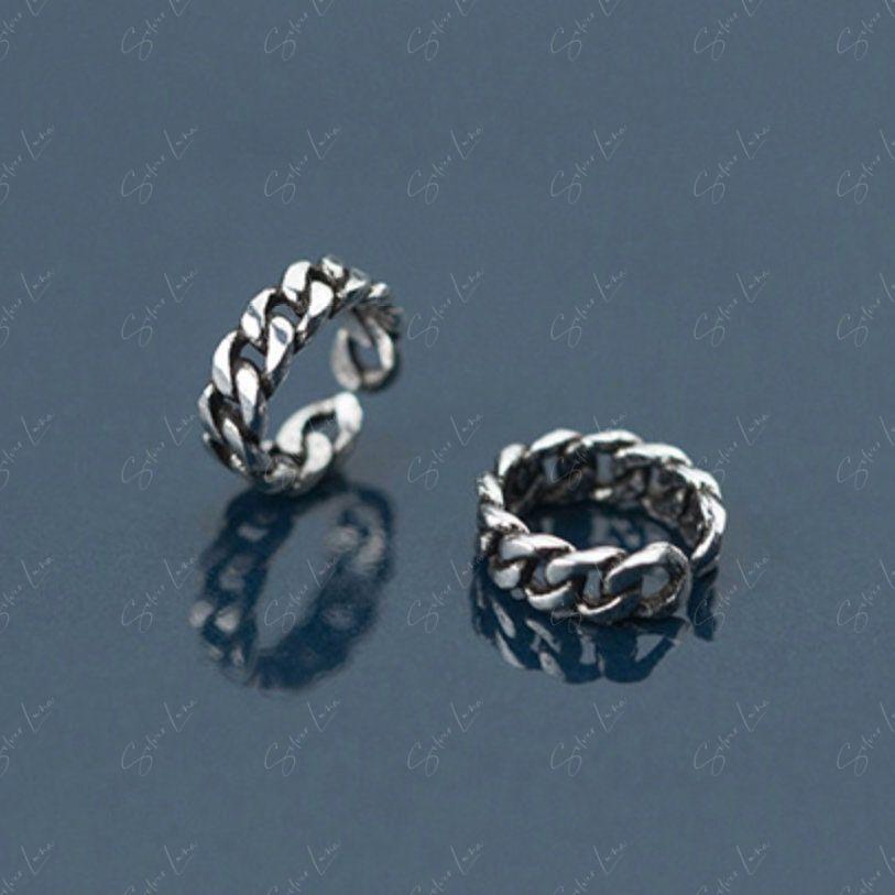 Stunning link chain ear cuffs crafted from 925 sterling silver with platinum plating and dark oxidation, boasting a Thai silver style and non-piercing design for the cartilage.