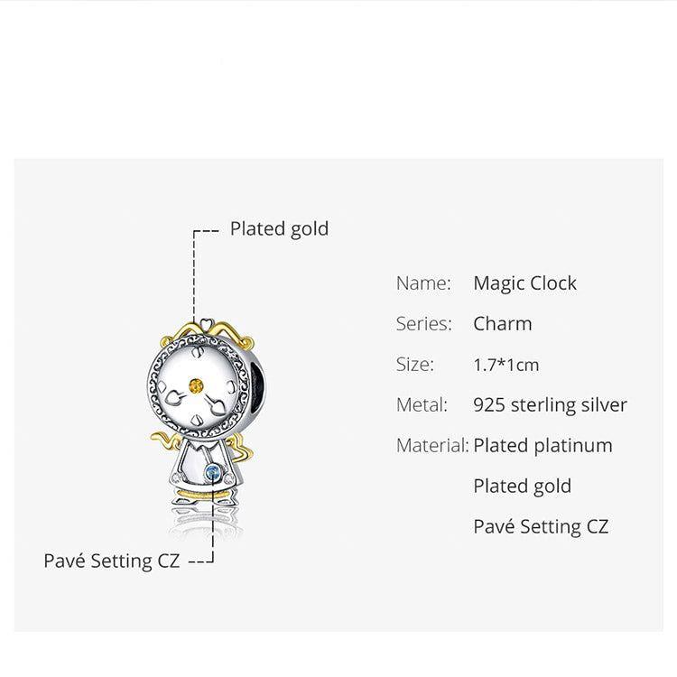 This enchanting charm for your bracelet features a magical clock design made of premium 925 sterling silver and plated with platinum, creating a truly luxurious look. It is an ideal addition to your bracelet collection or a meaningful present for someone special