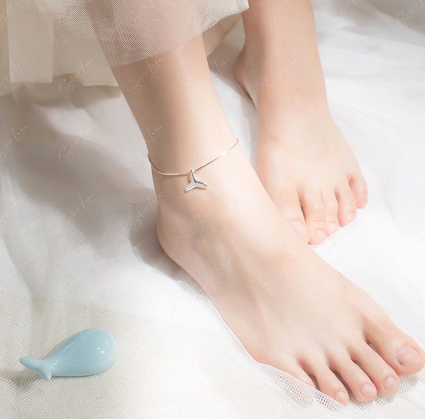 Mermaid tail snake chain sterling silver ankle bracelet