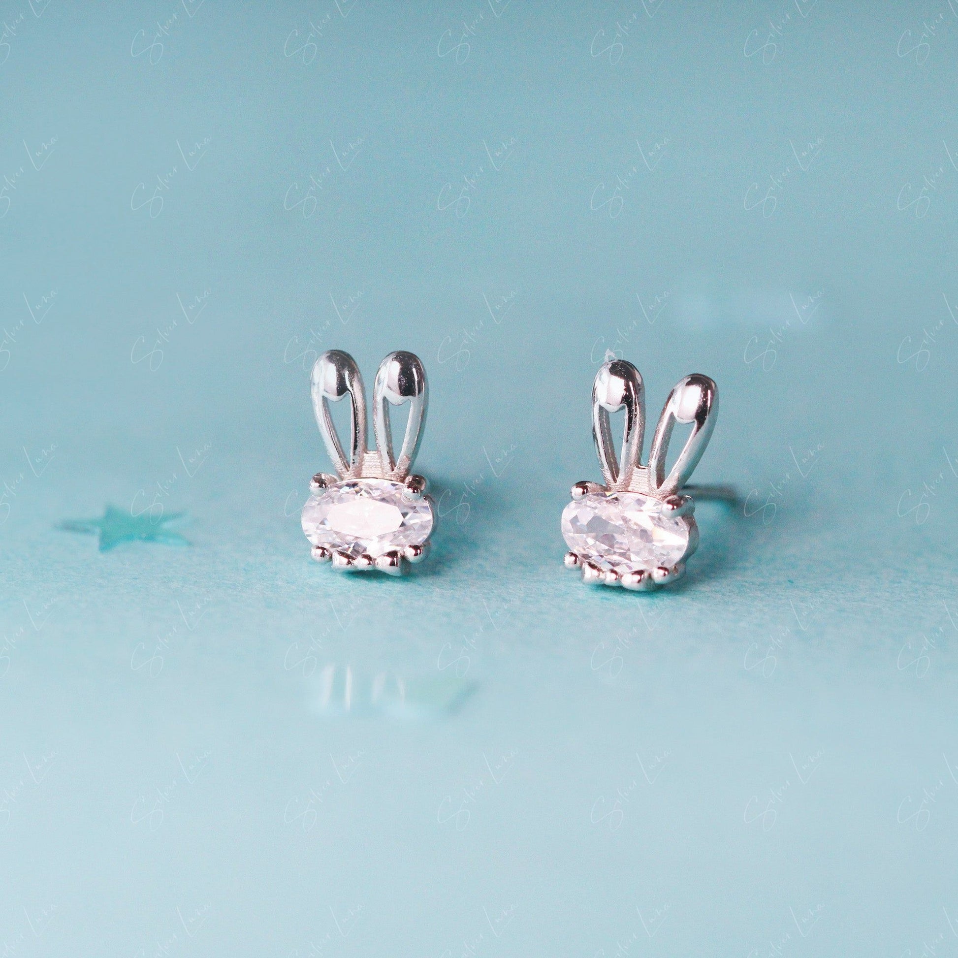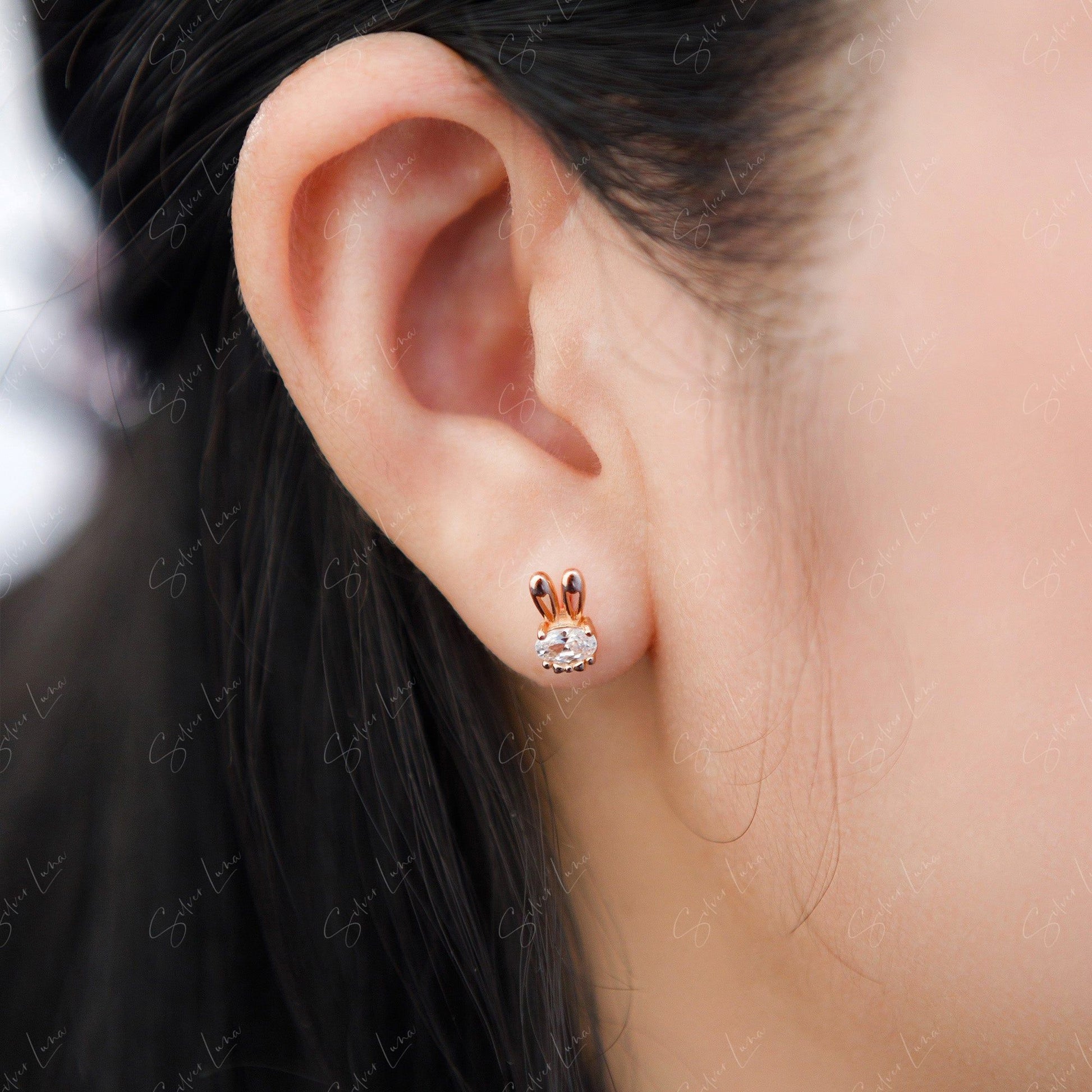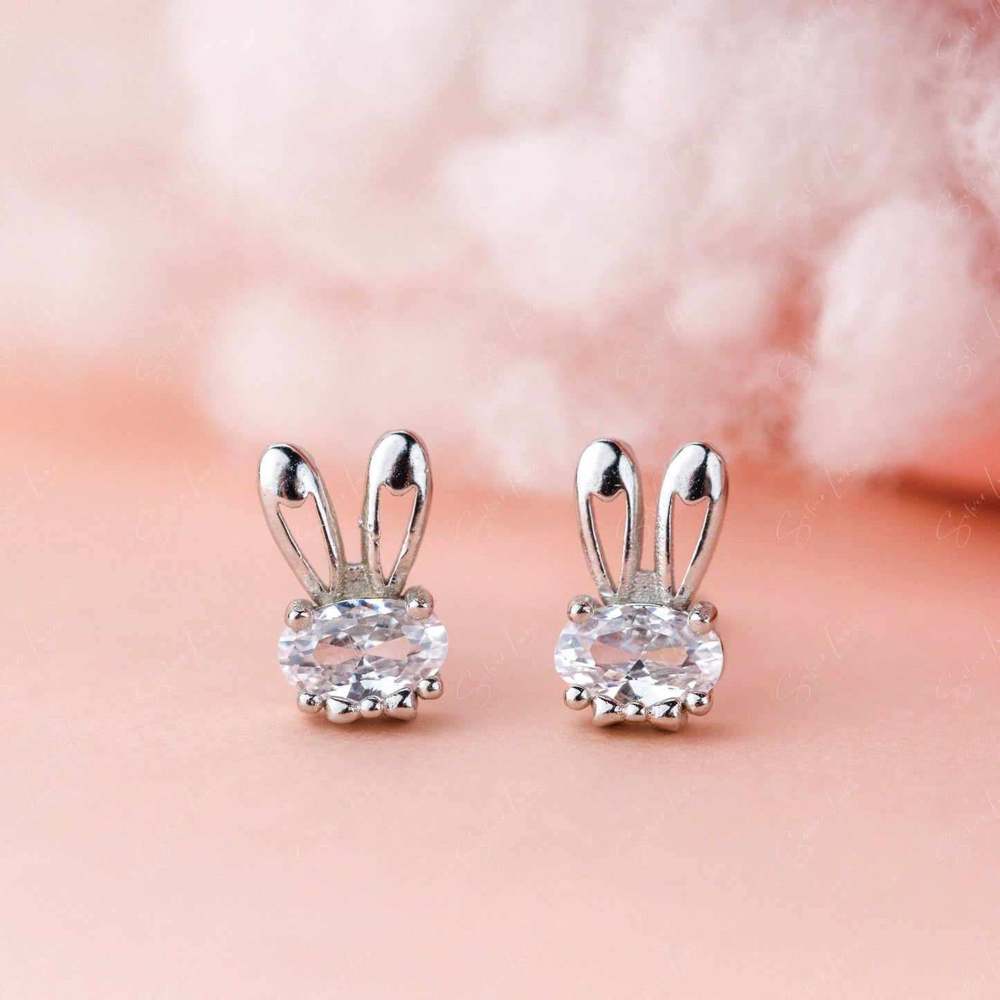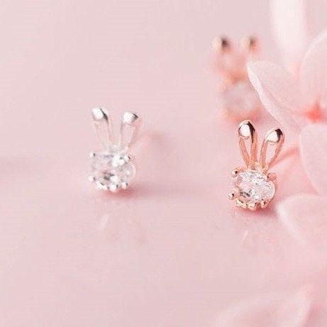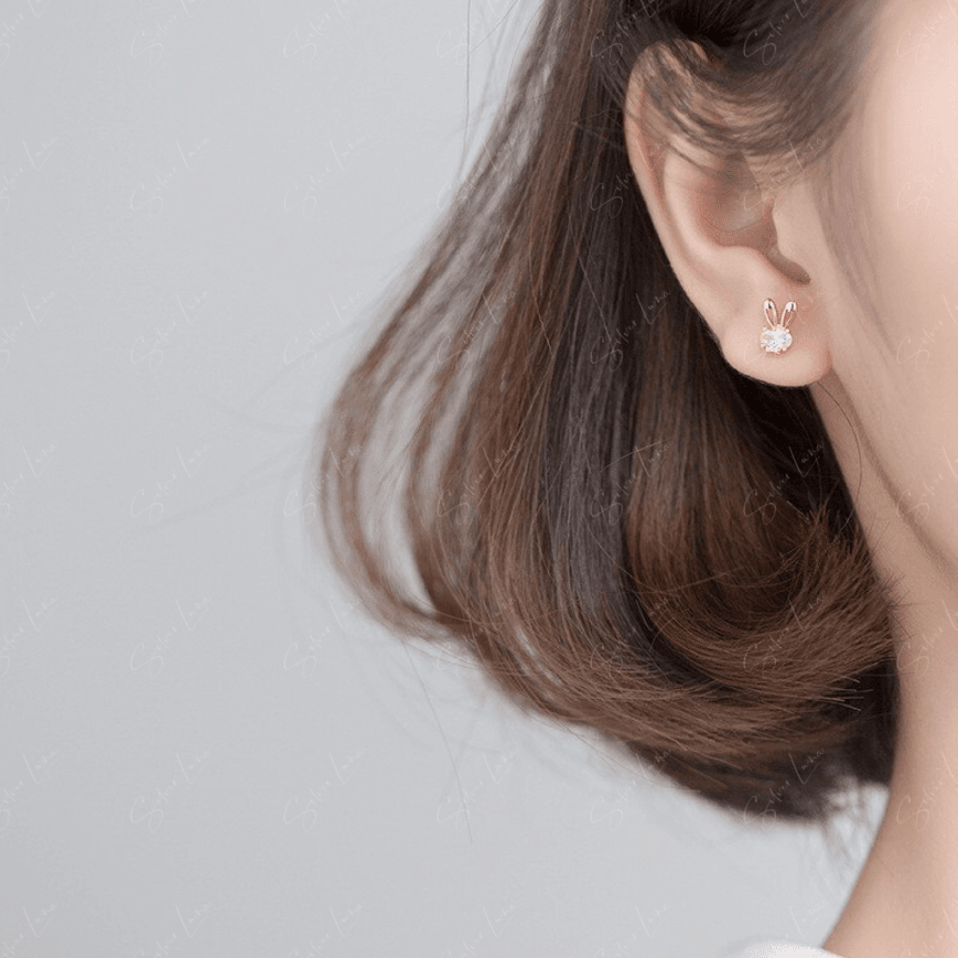 Cute bunny ears sterling silver stud earrings