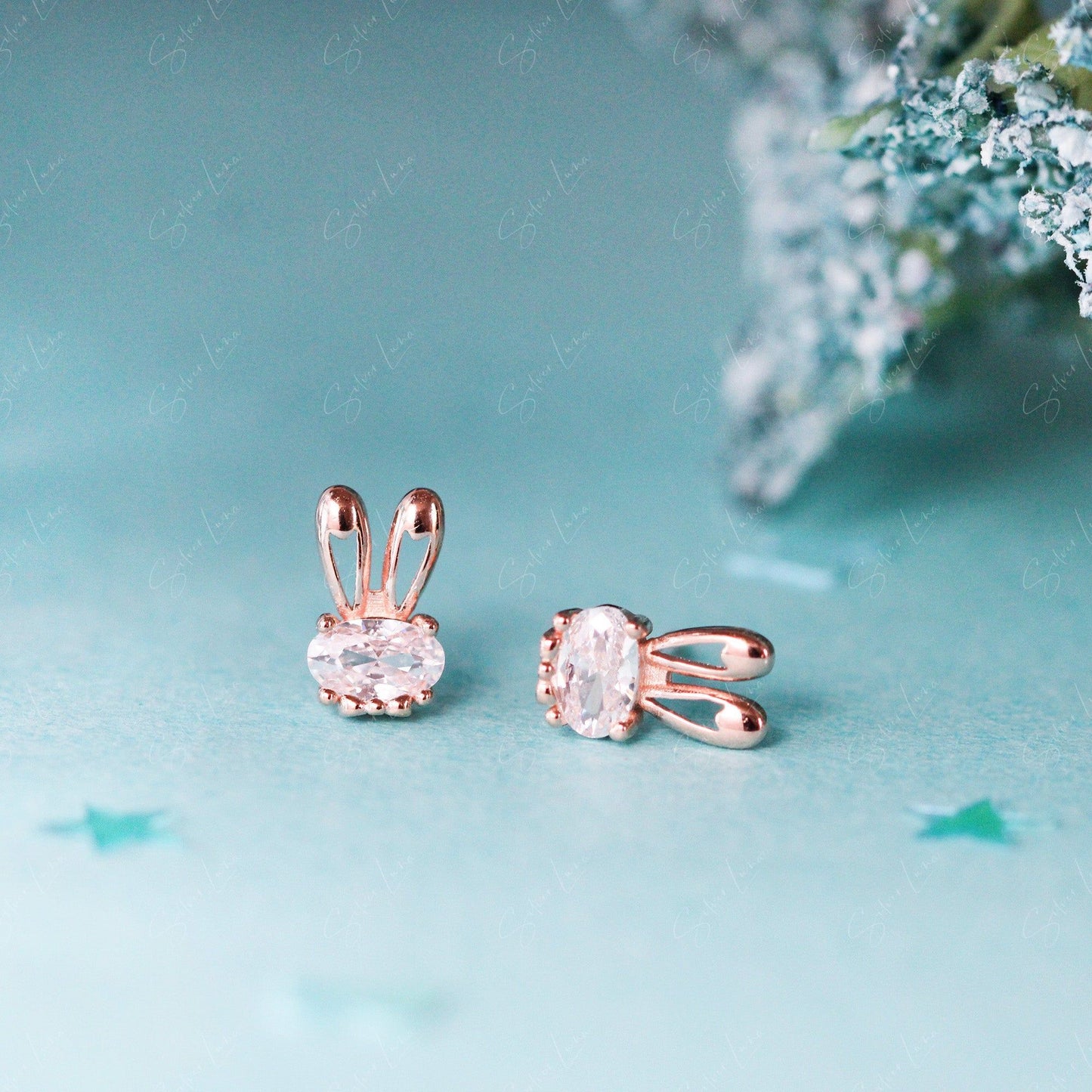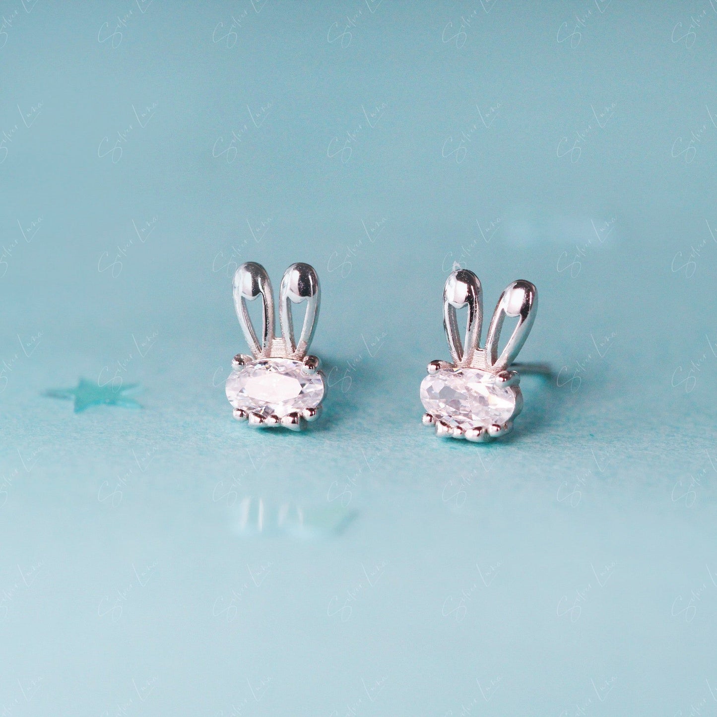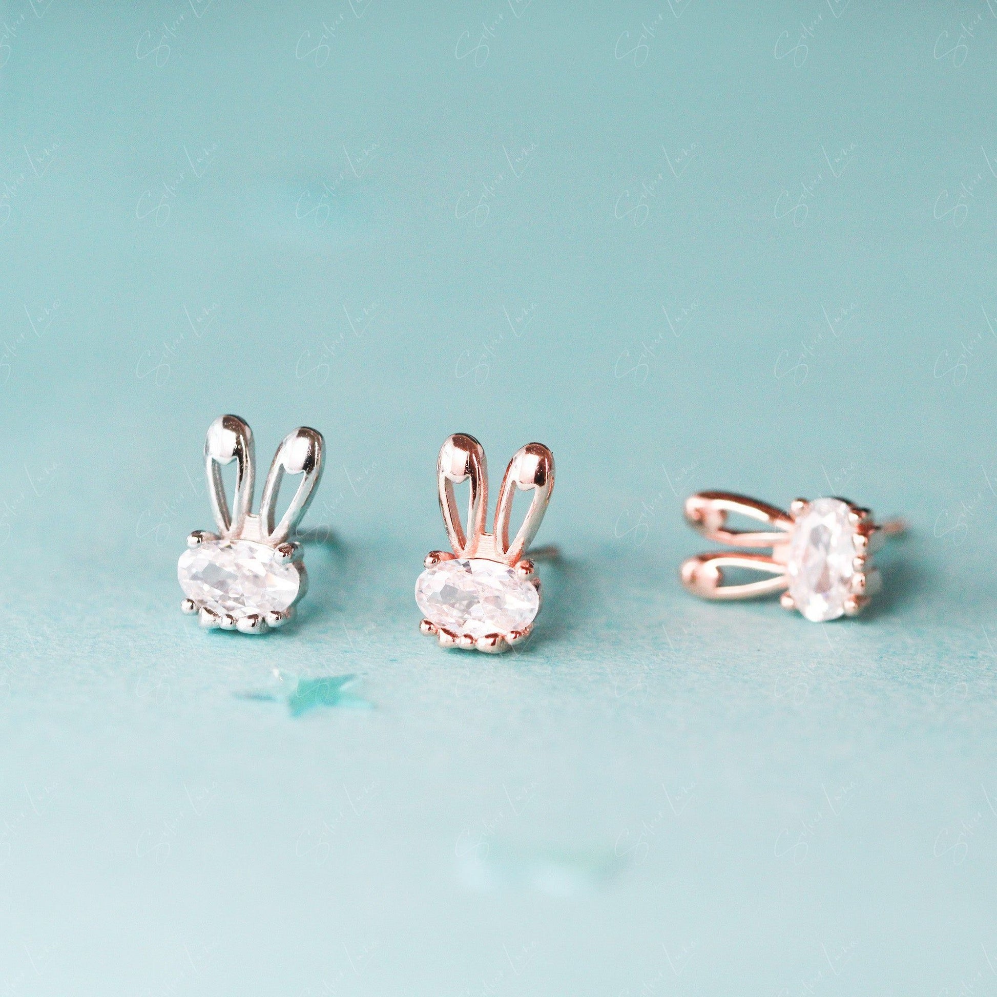 Cute bunny ears sterling silver stud earrings