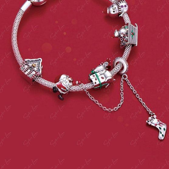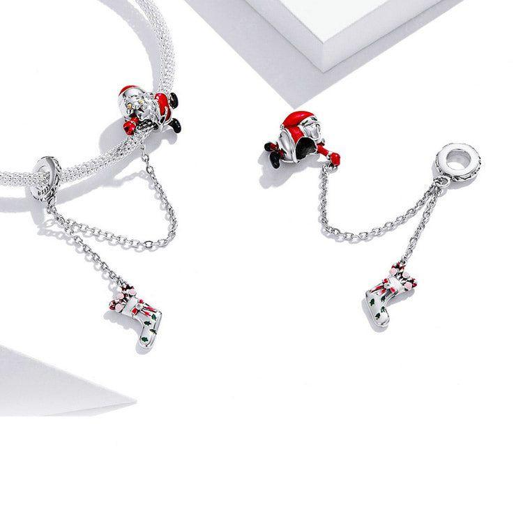 This festive Santa Claus Christmas safety chain for bracelets is made of high-quality 925 sterling silver and features a charming design of Santa Claus holding a gift sock. Add this delightful accessory to your bracelet collection or give it as a special holiday gift to a loved one. Get into the holiday spirit and show off your love for Santa with this stunning Christmas safety chain! Made with high-quality 925 sterling silver, this chain features a charming design of Santa Claus holding a gift sock. Add it to your bracelet collection for a festive touch or give it as a special holiday gift to a loved one. Every time you wear it, you'll feel the magic of Christmas!