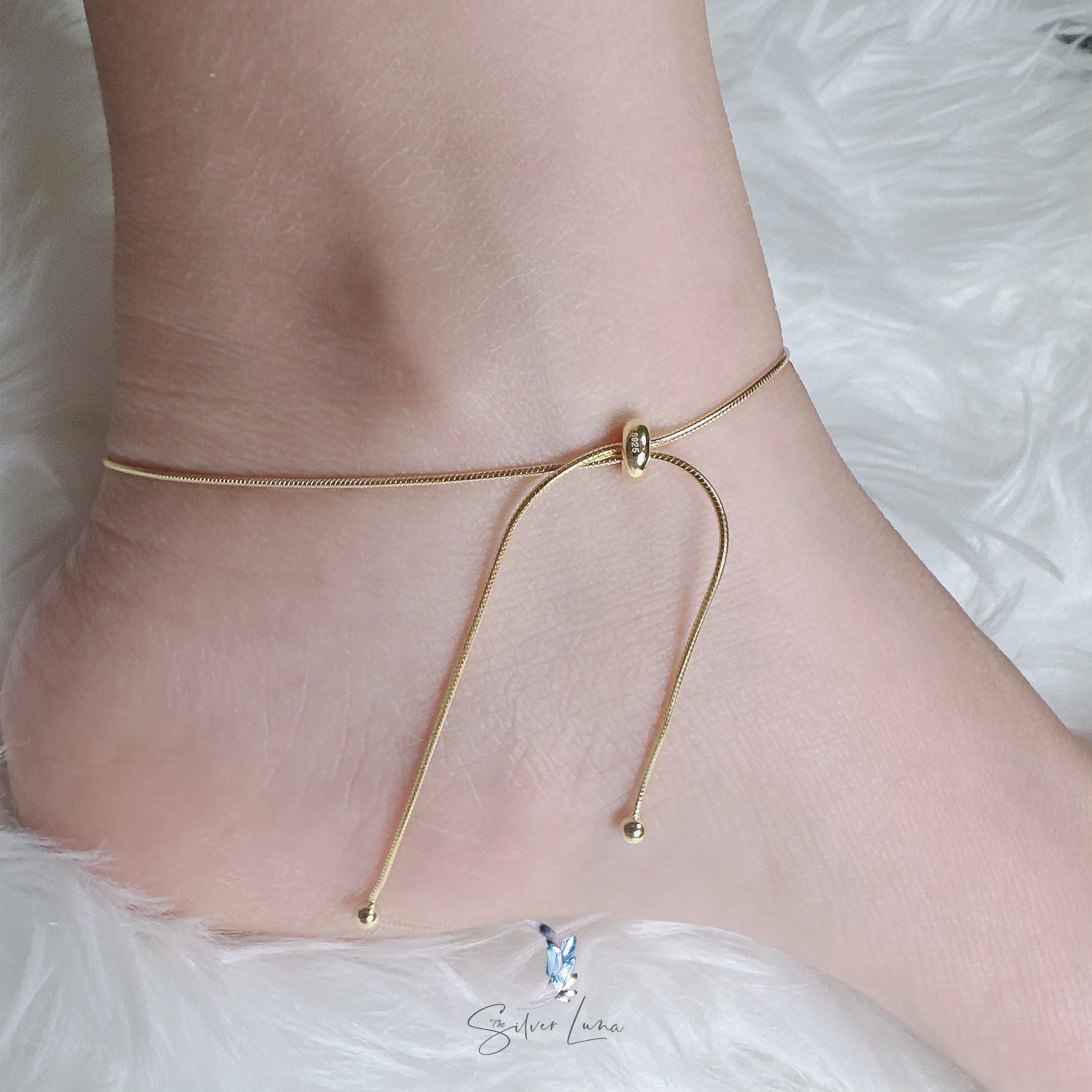 Add a touch of luxury to your everyday jewelry collection with our adjustable snake chain anklet. Crafted from solid 925 sterling silver with platinum or gold plating, it offers a long-lasting shine and sophisticated look. The chain can be adjusted up to 31.5 cm, making it a perfect fit for anyone. Whether for yourself or as a gift, this minimalist anklet is a must-have addition to your wardrobe.