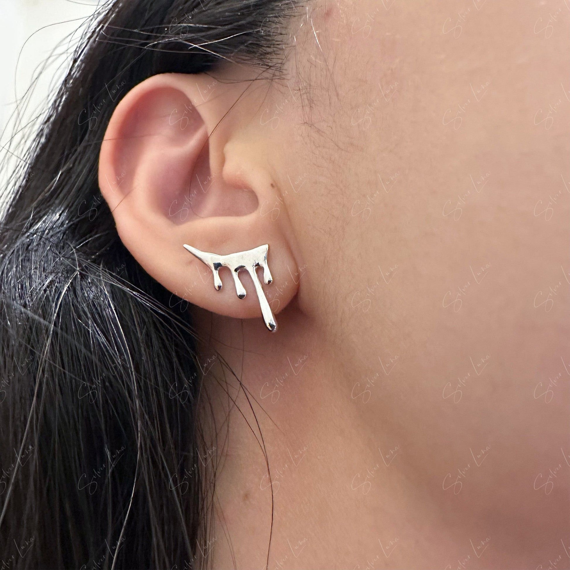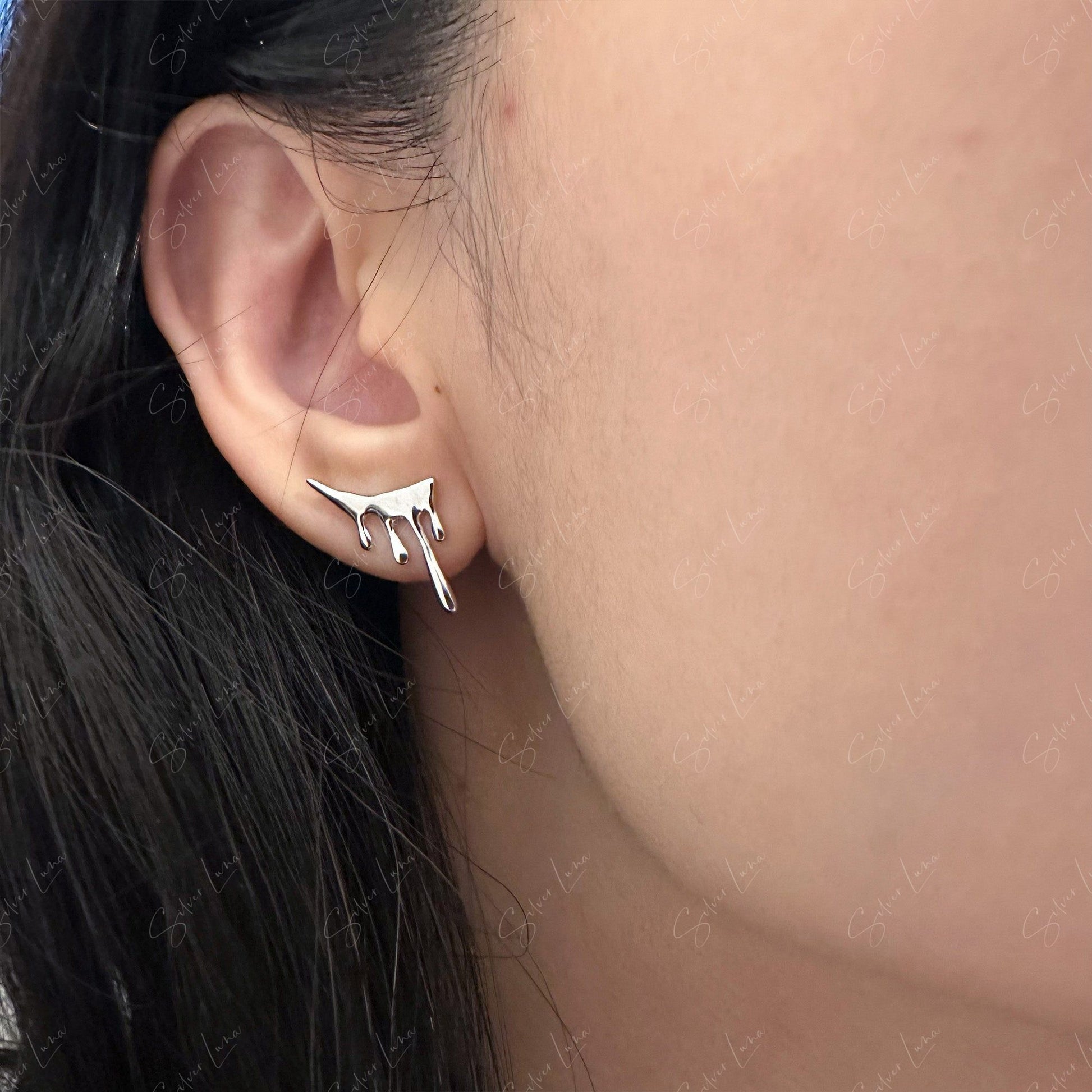 These abstract droplet earrings drip with high-end luxury. Crafted from sterling silver and plated with platinum, they feature a water-like droplet design that evokes the fluid motion of melting ice. Their unique shape and creative motif make them a standout addition to any jewelry collection, while their sterling silver blend ensures lasting durability and shine. Slip them on to channel a bold sense of individual style that refuses to be contained. Like droplets of water, these earrings effortlessly defy convention while adding a touch of whimsy and wonder to everyday moments. Unique silver earrings don't get any cooler than these melting droplet studs.