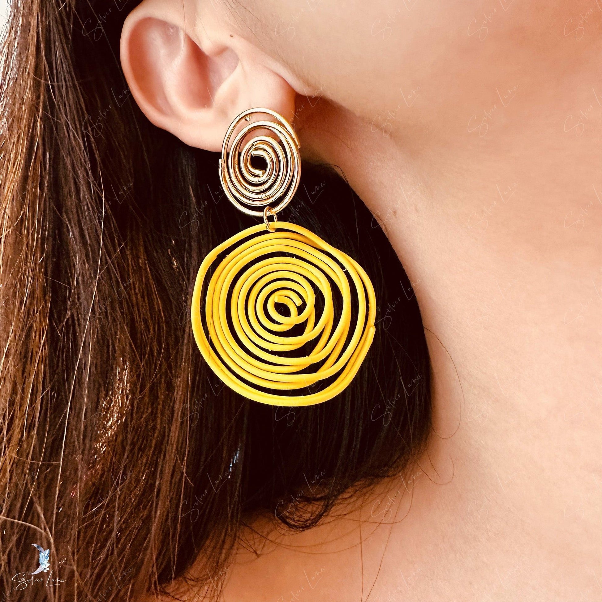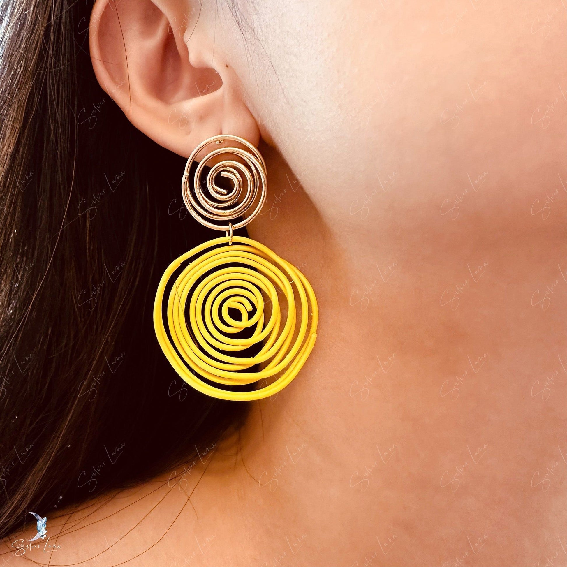 Unique spiral circles design dangle drop earrings in different color, light weight and comfortable to wear, made a unique statement and elevate your outfit.