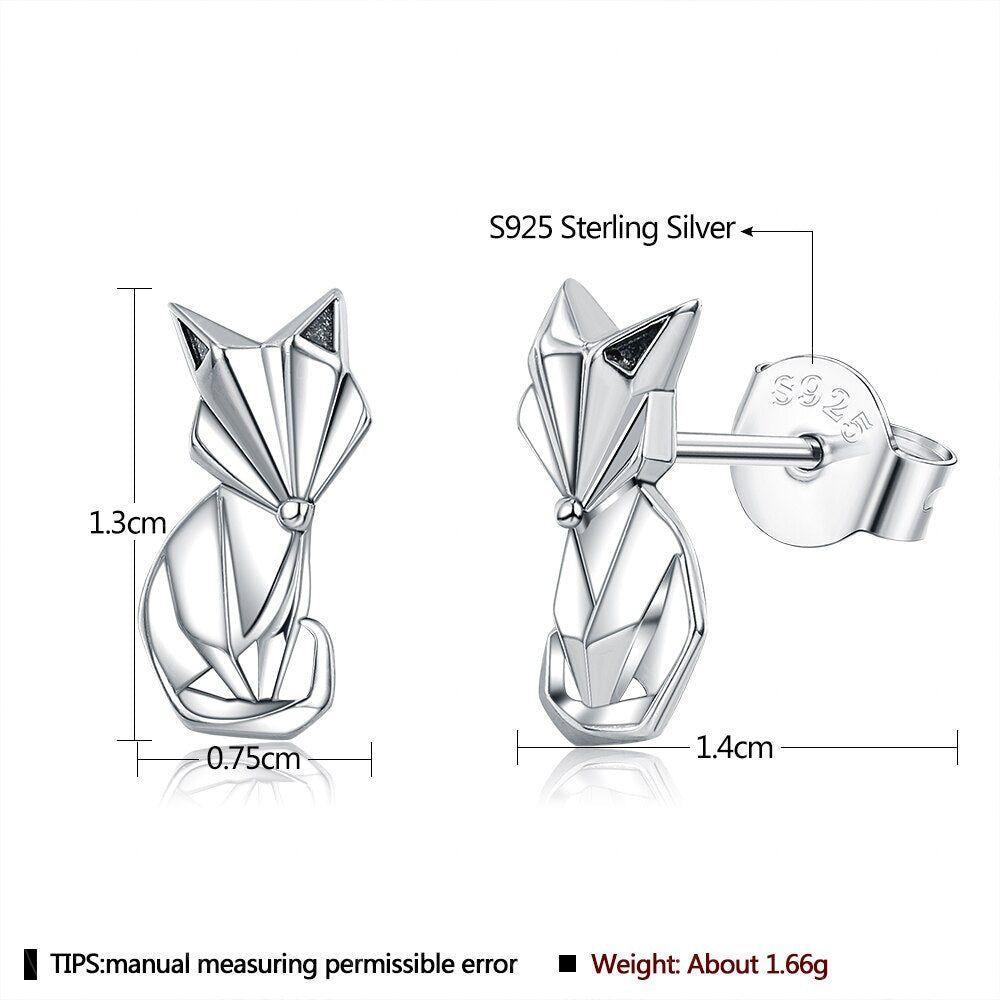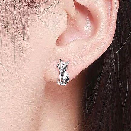 Abstract geometric fox animal stud earrings