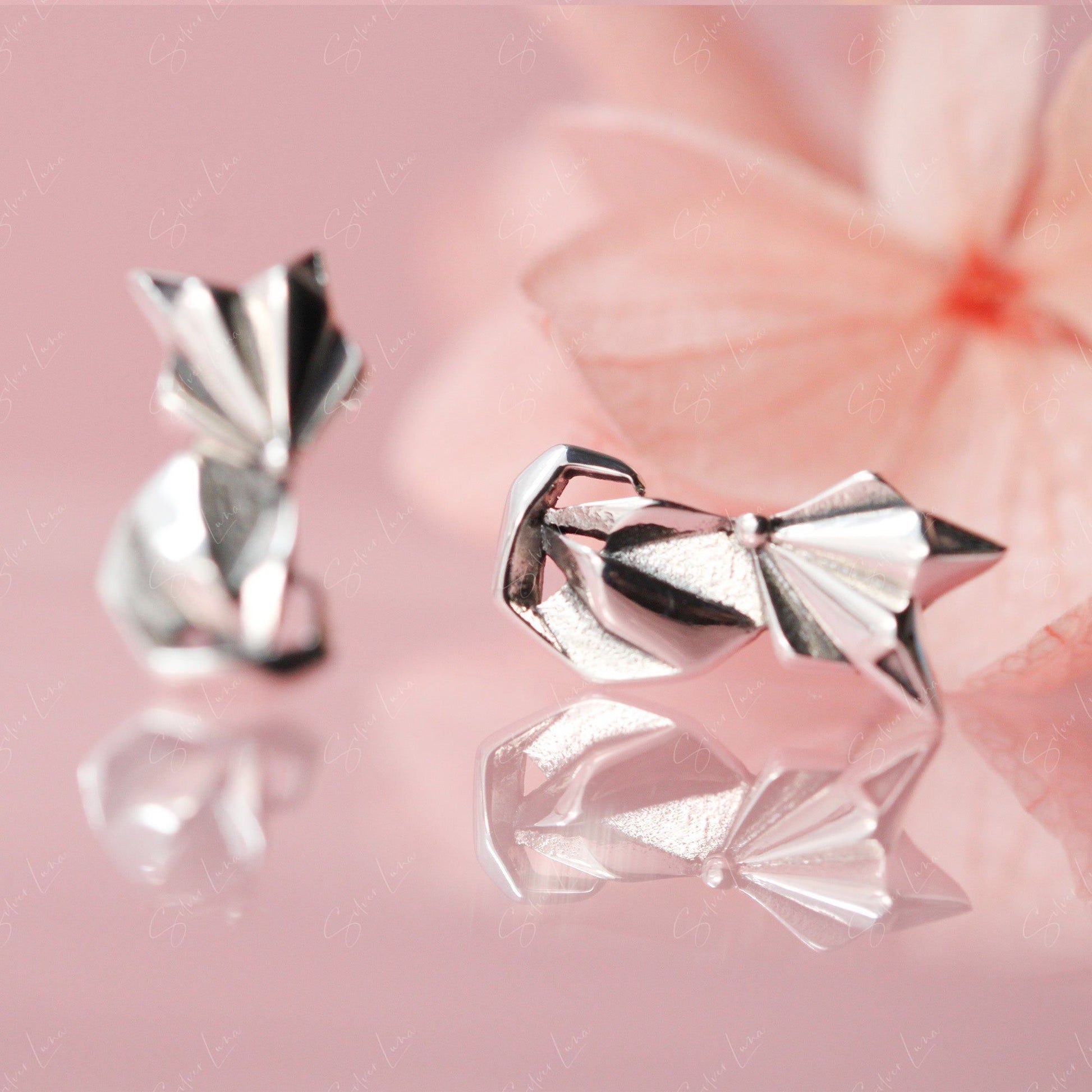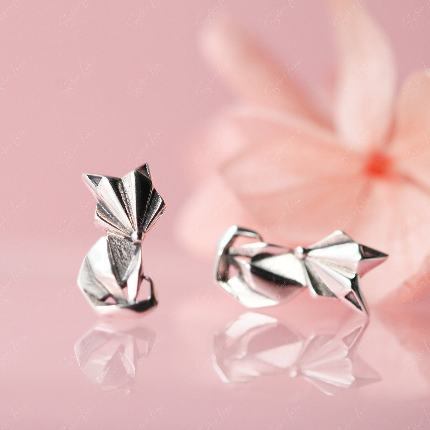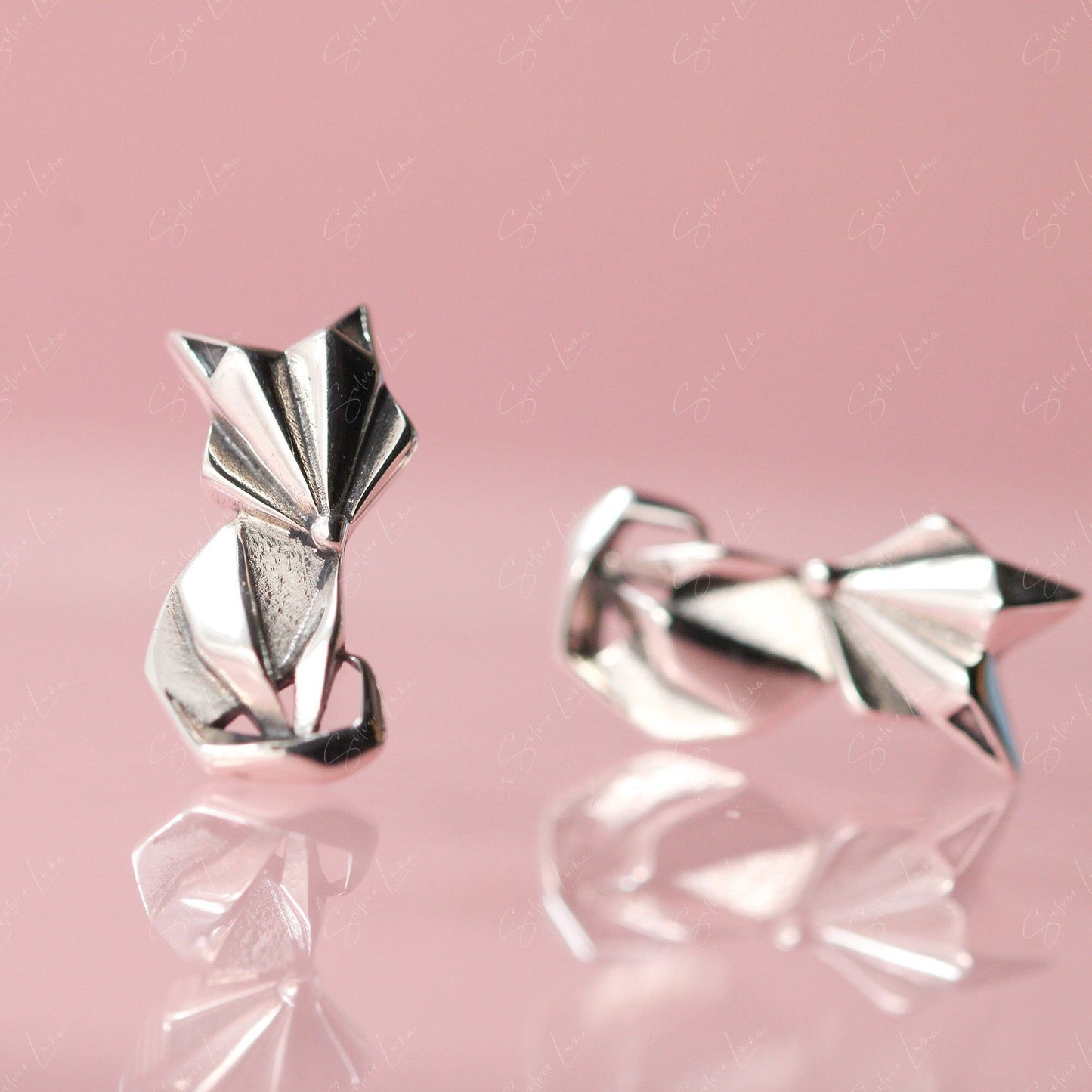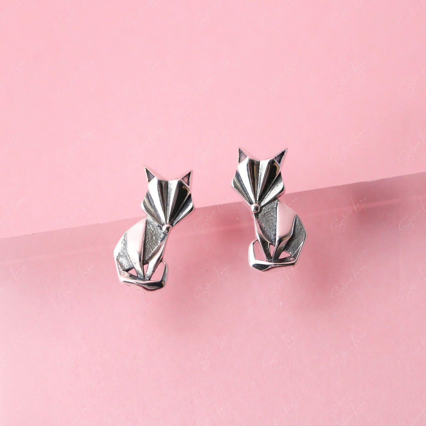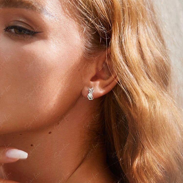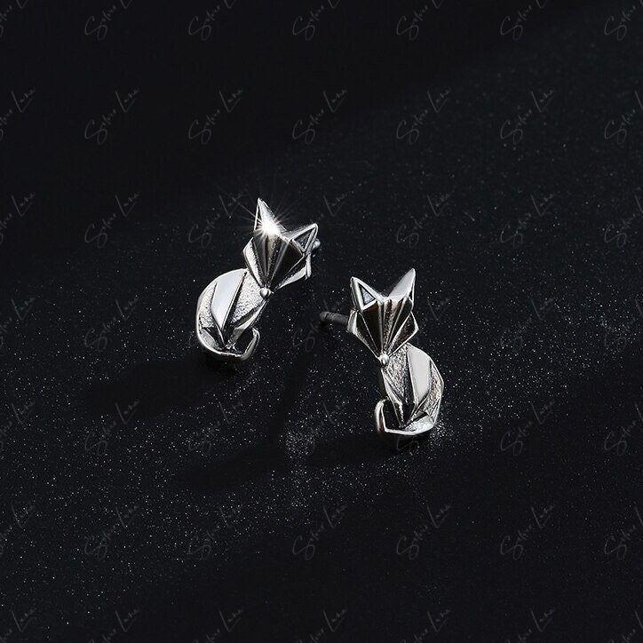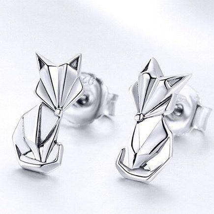 These cute abstract animal stud earrings feature a geometric shape of a fox crafted from solid 925 sterling silver with platinum plating. The contrast and oxidation process give them a luxe look and long-lasting shine perfect for everyday wear. Add these fox studs to your fine jewelry collection or gift them to a loved one for an affordable piece of art you can wear. The whimsical geometric design will bring a smile every time you catch a glimpse in the mirror.