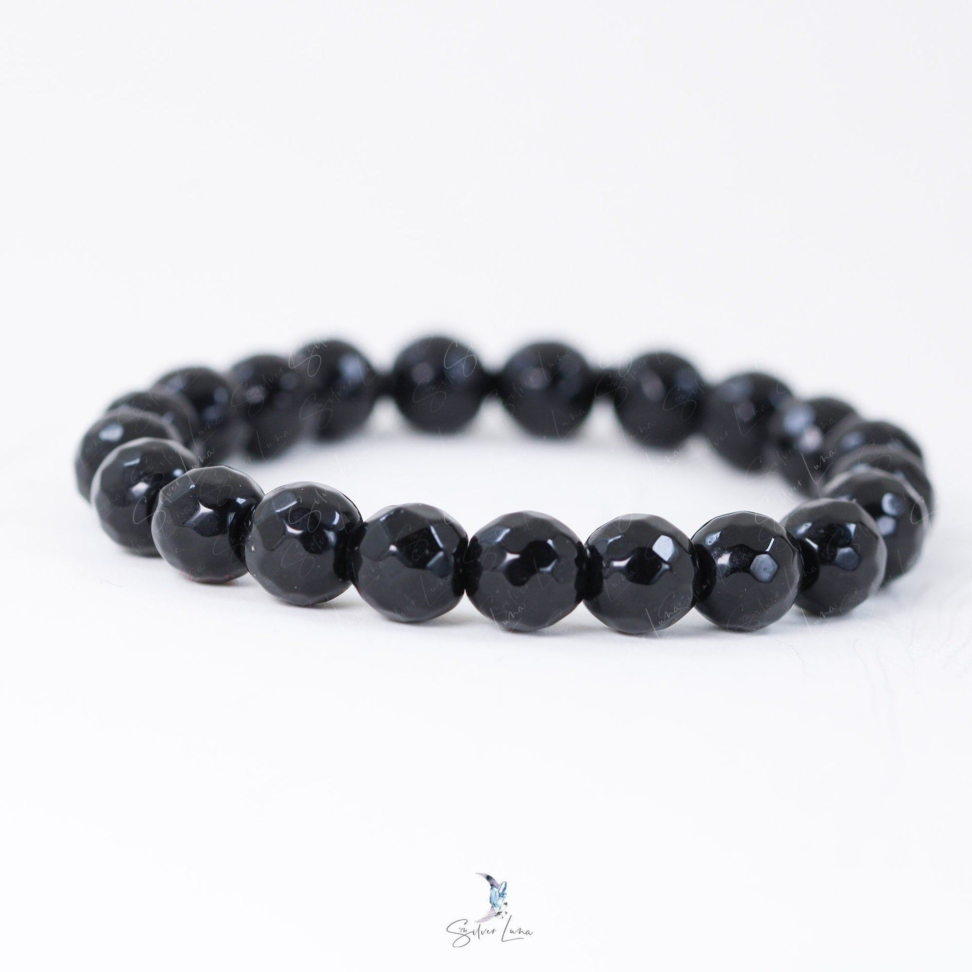 Elevate your style with this stunning black agates stone beaded bracelet, featuring faceted stones and a solid 925 sterling silver heart charm. The unique design and custom fit make it a must-have addition to your everyday gemstone collection or a thoughtful gift for someone special. Let the beauty and symbolism of this bracelet captivate your senses and add a touch of passion to your wardrobe.