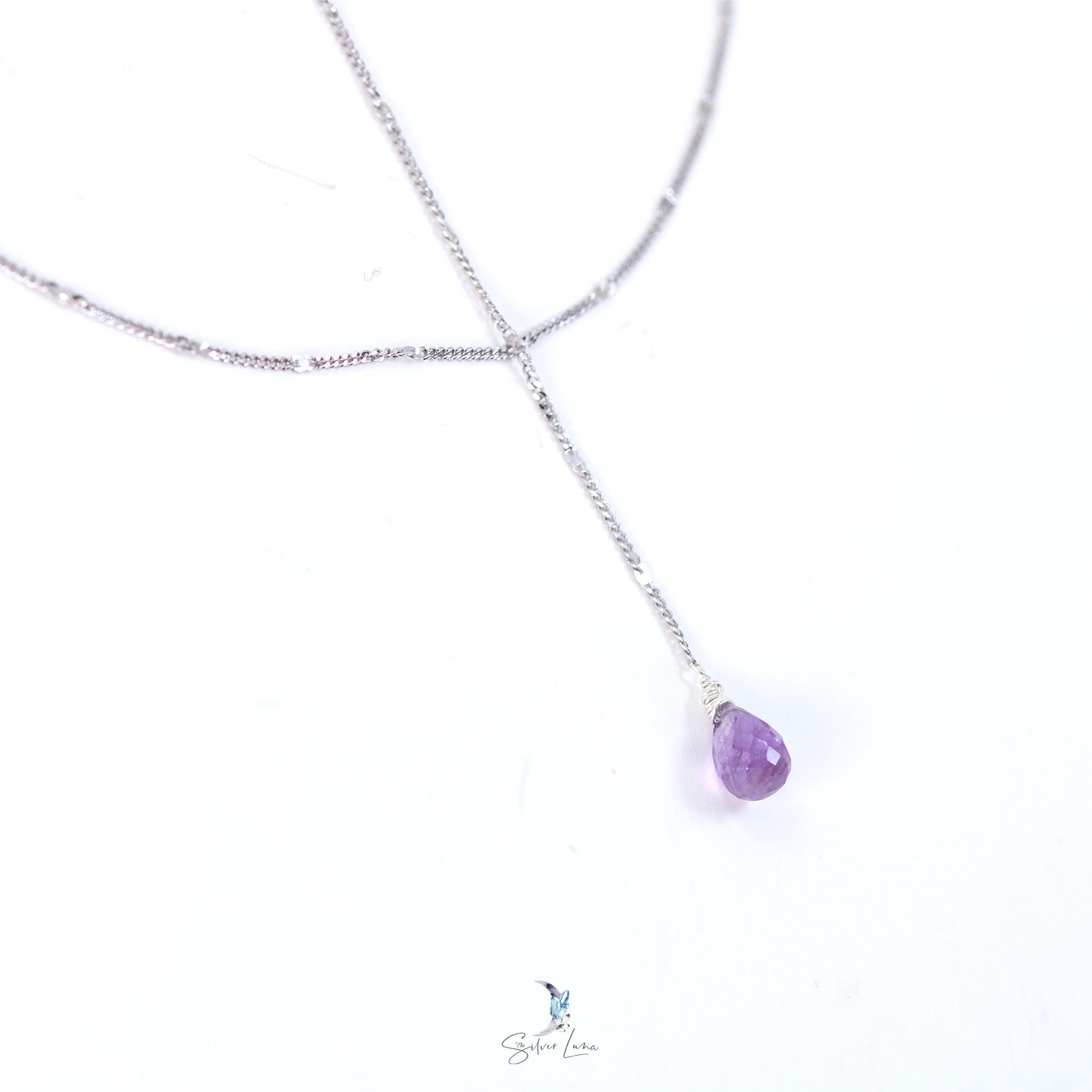 Expertly crafted in 925 sterling silver, this Amethyst teardrop double layer long chain necklace exudes elegance and sophistication. The stunning teardrop design and double layering add a touch of uniqueness, making it a perfect accessory for any occasion. Elevate your style with this timeless and beautifully designed necklace.
