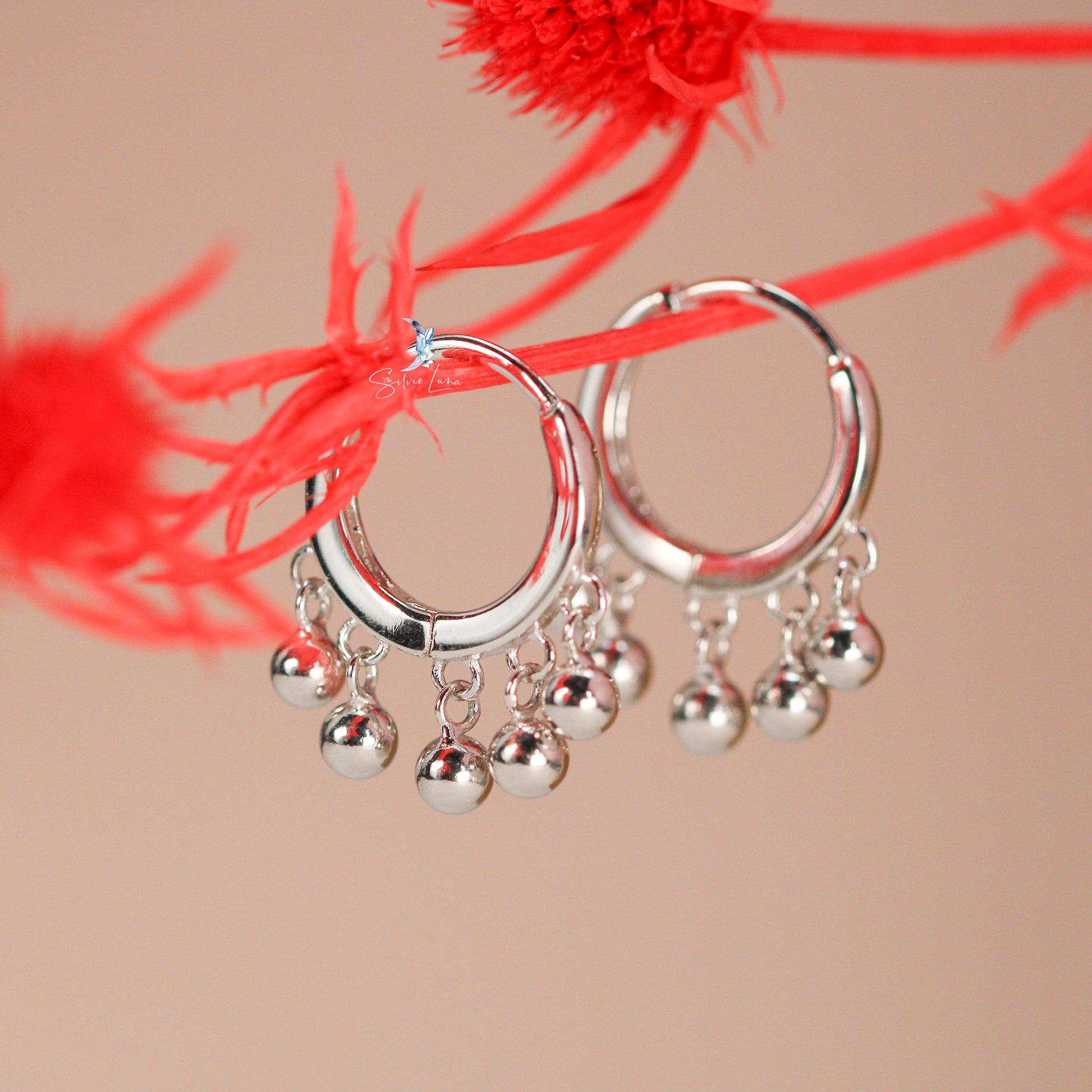 Enhance your style with these stunning ball charms hoop earrings. Made from high-quality 925 sterling silver with a platinum plate, these ear huggies are both elegant and durable. Perfect for any occasion, they are a must-have accessory for any fashion-forward individual. Elevate your look with the perfect touch of sparkle and sophistication!