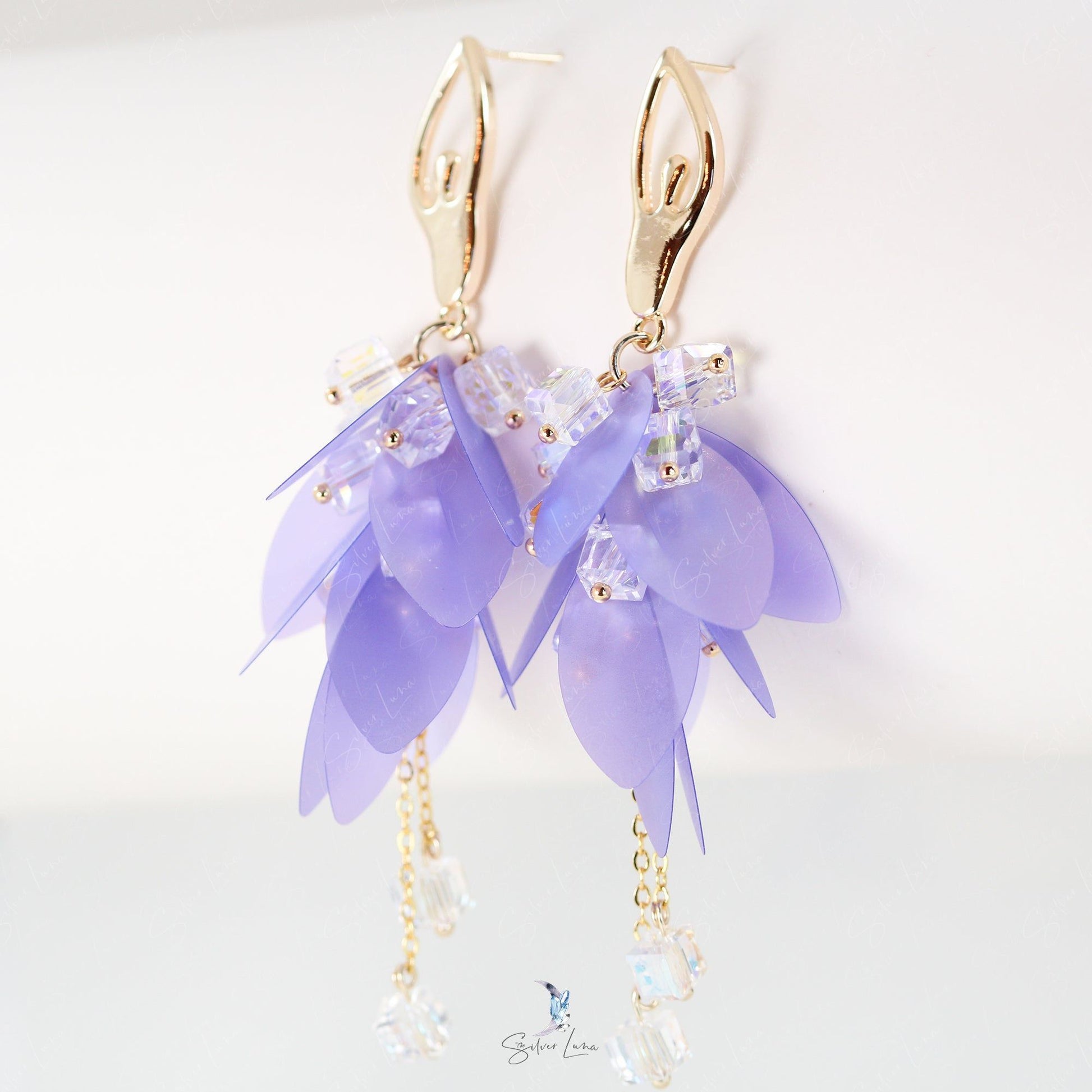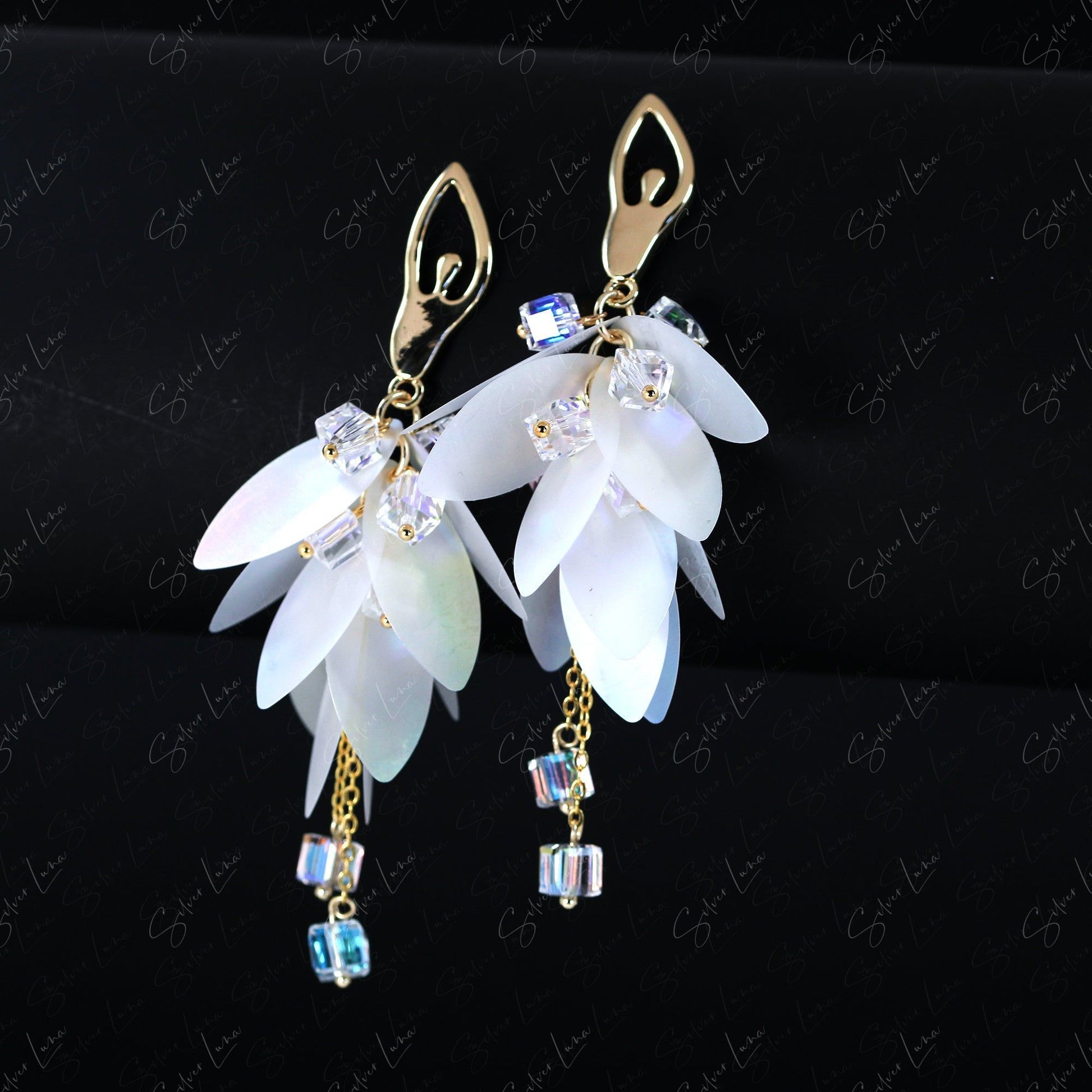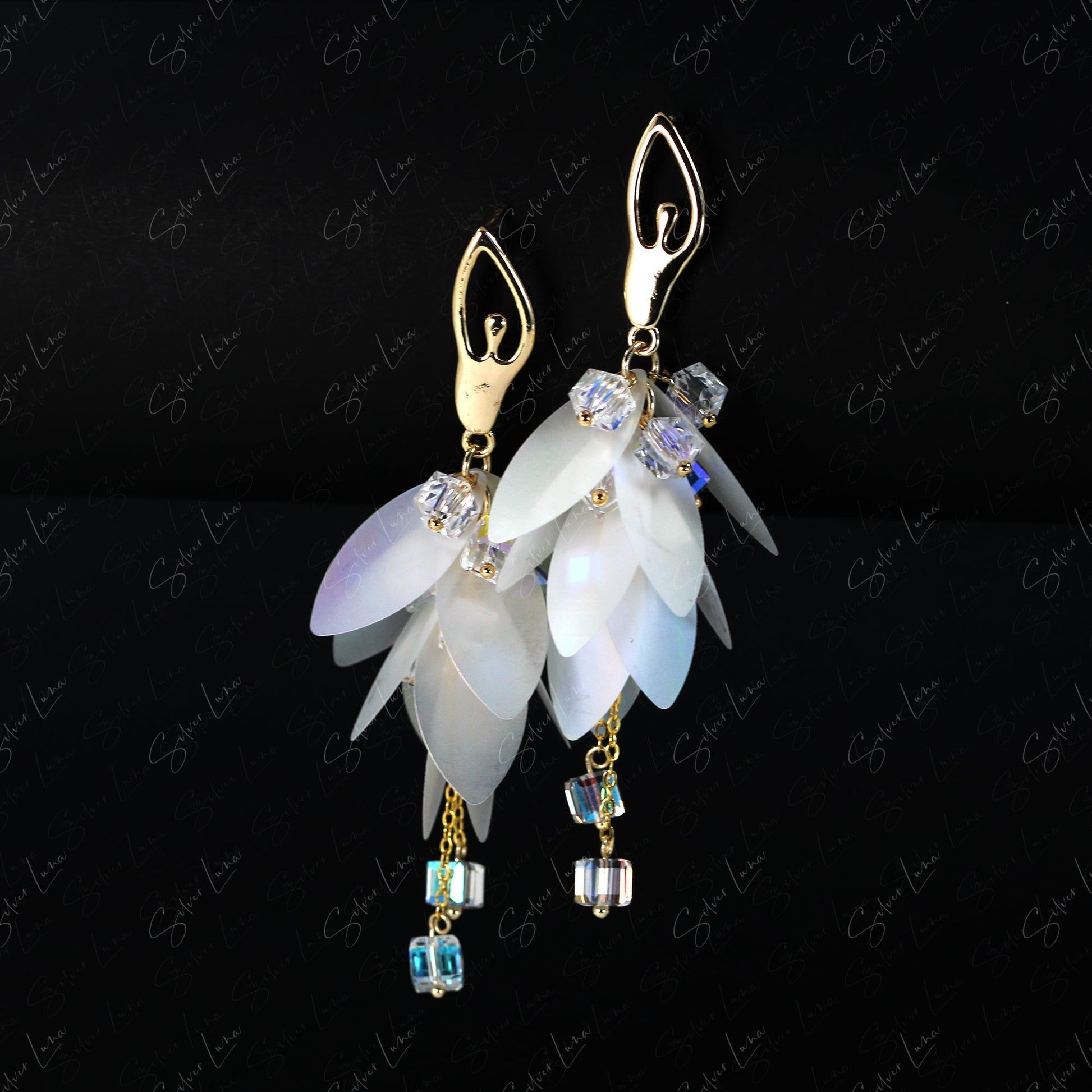 These stunning gold plated dangle earrings showcase the graceful silhouette of a ballet dancer, adorned with sparkling crystal beads and transparent leaves. The solid brass studs feature a shiny 24k gold finish, shaped like a dancing girl. Personalize your look by selecting a dress color other than white. Add these exquisite earrings to your everyday jewelry collection or surprise a loved one with a thoughtful gift.