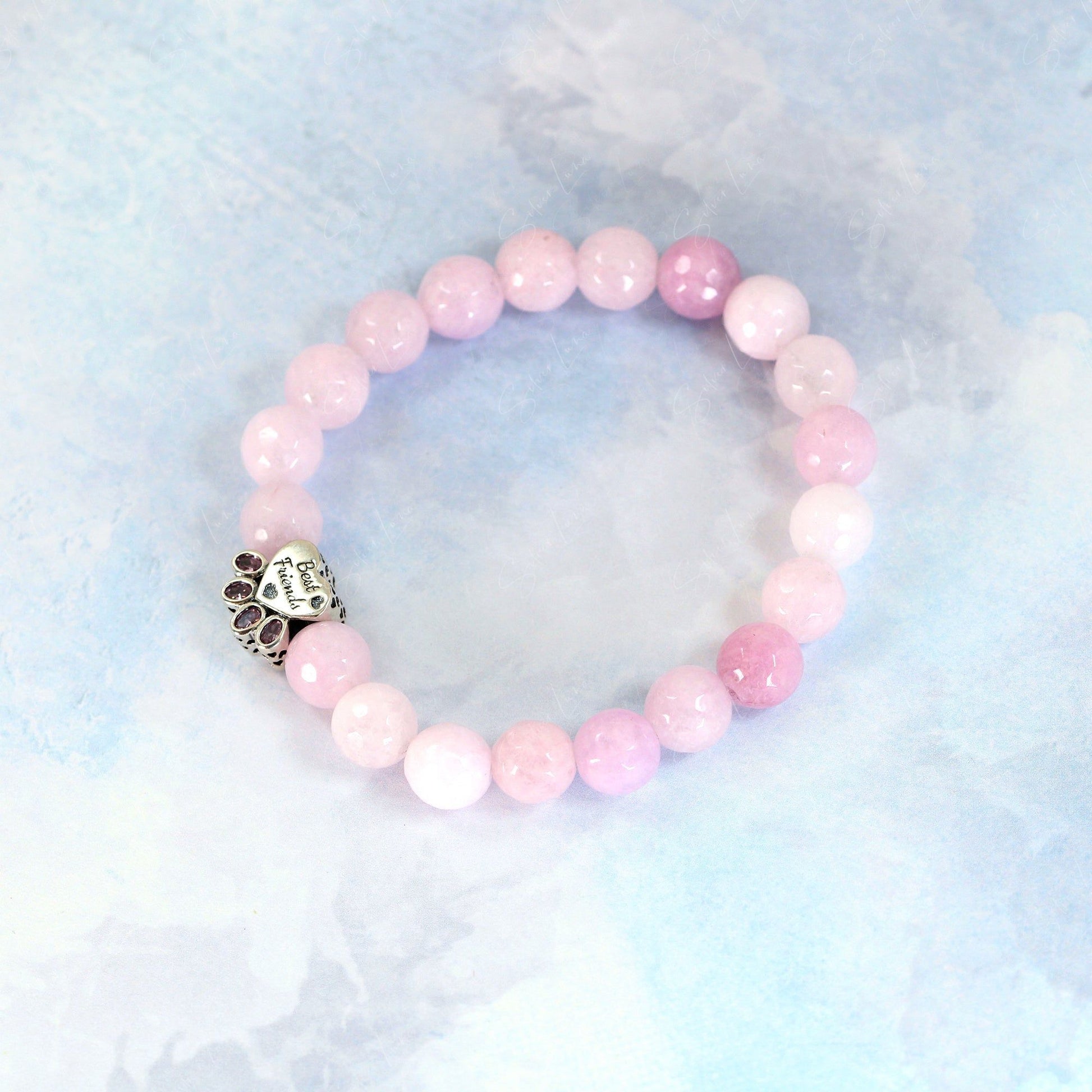 Best friends Paw charm pink Kunzite jade beaded bracelet