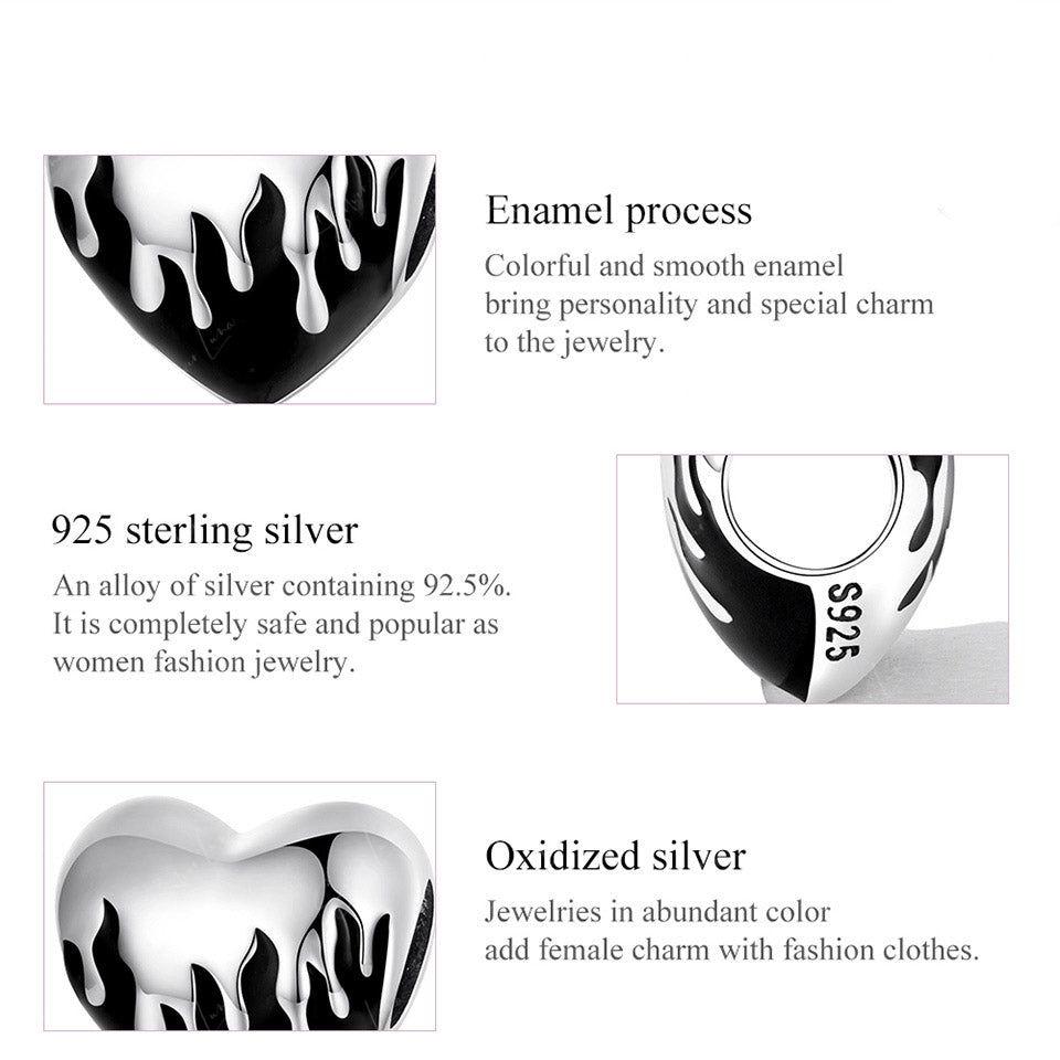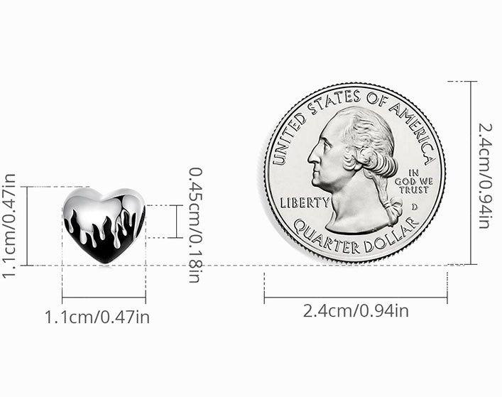 The black dripping heart charm features nice contrast dripping heart design in black and silver color made of solid 925 sterling silver and enamel color decoration. Get ready to add a touch of edginess and elegance to your charm bracelet with our black dripping heart charm! Made of solid 925 sterling silver with enamel color decoration, this bead charm features a stunning contrast of black and silver that will surely turn heads. Whether you're going for a bold and daring look or want to add a touch of mystery, our black dripping heart charm will make a statement and elevate your charm collection to a whole new level!