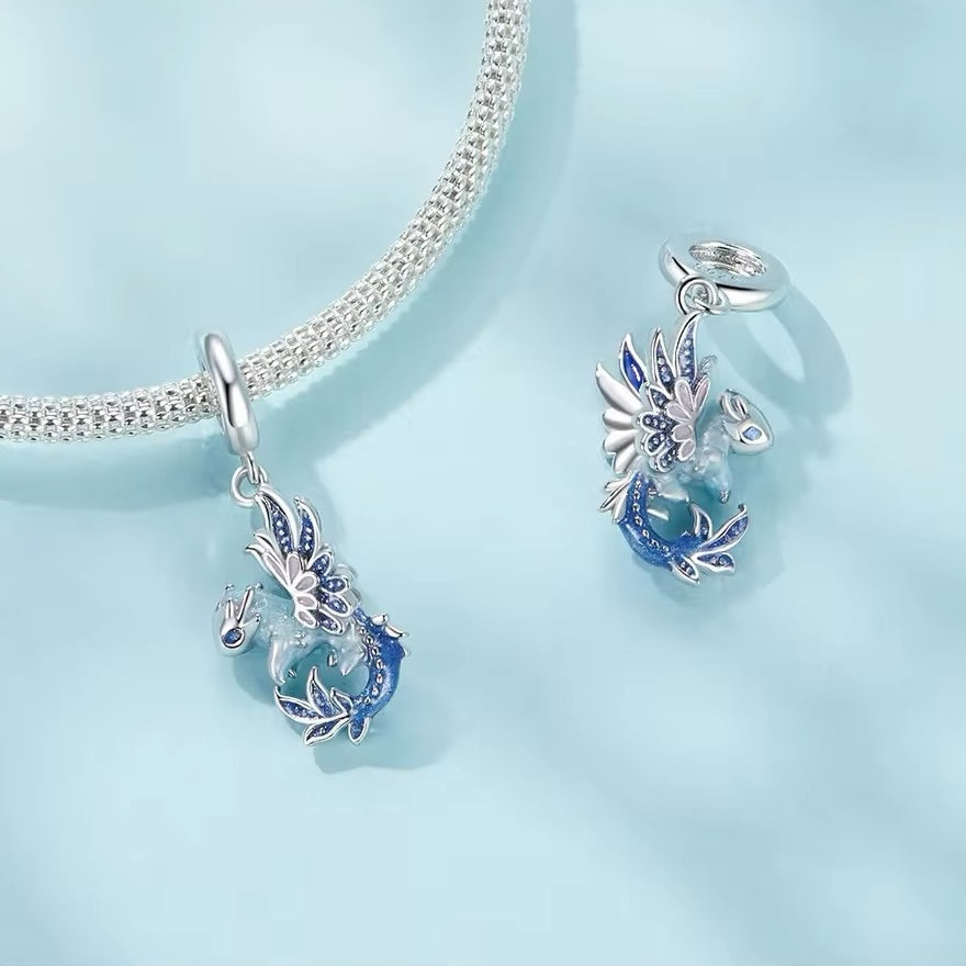 Unleash the power and mystery of the Blue Dragon with our stunning sterling silver charm for your bracelet. This intricately designed dangle will add a touch of enchantment to any accessory, making it a must-have for dragon lovers and fashion enthusiasts alike. Elevate your style with our Blue Dragon charm!
