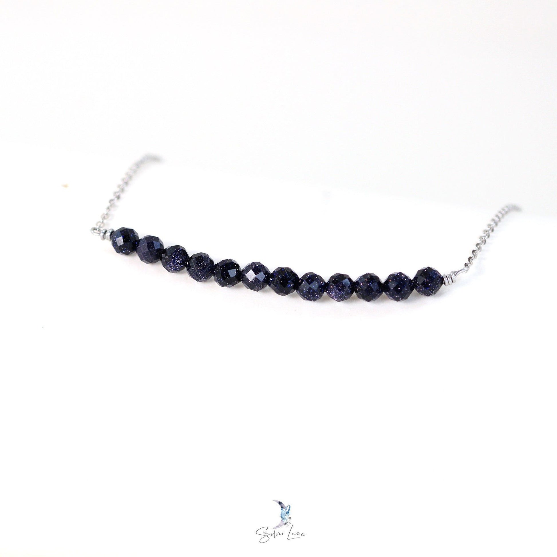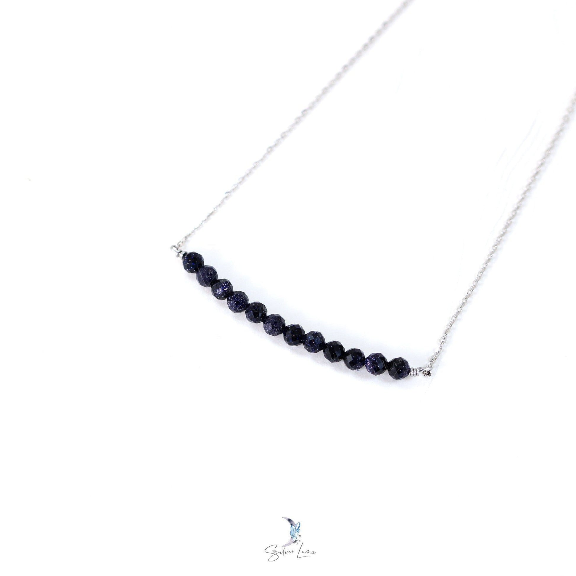 This stunning pendant necklace showcases a row of exquisite 4mm blue sandstone beads on a sturdy 925 sterling silver chain. It's the perfect addition to any jewelry collection, whether for yourself or a special someone.