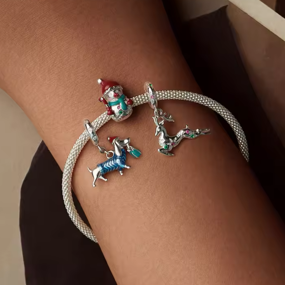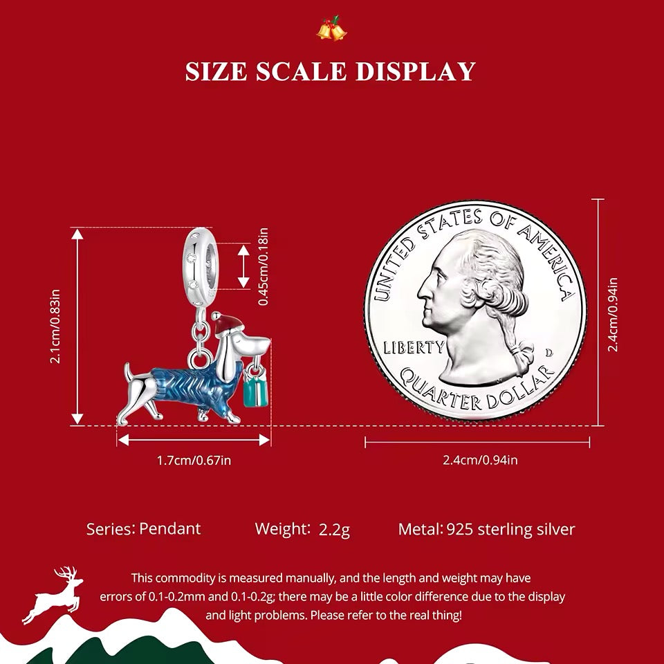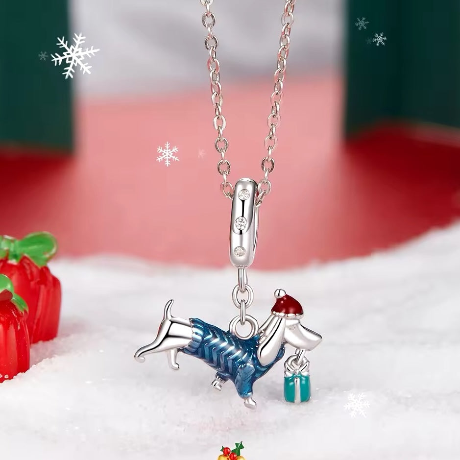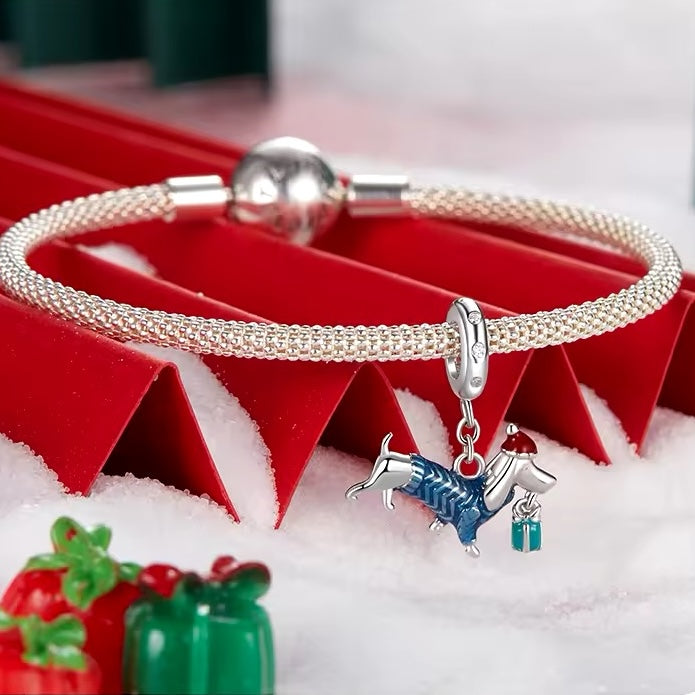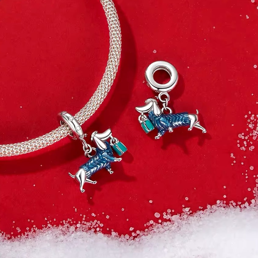 Add a festive touch to your jewelry collection with our Christmas dog pendant charm. Crafted in 925 sterling silver and enamel, this charm features a cute dog holding a present with great detail. Perfect for adding holiday cheer to any bracelet or necklace.
