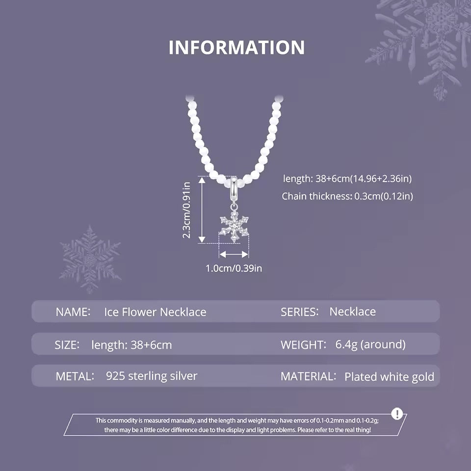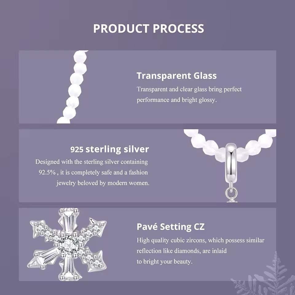 This Christmas snowflake glass beaded necklace is the perfect accessory for the holiday season. Featuring an elegant crystal snowflake pendant charm and white glass beads, it adds a touch of sparkle to any outfit. The 925 sterling silver adjustable chain and closure ensure a perfect fit.