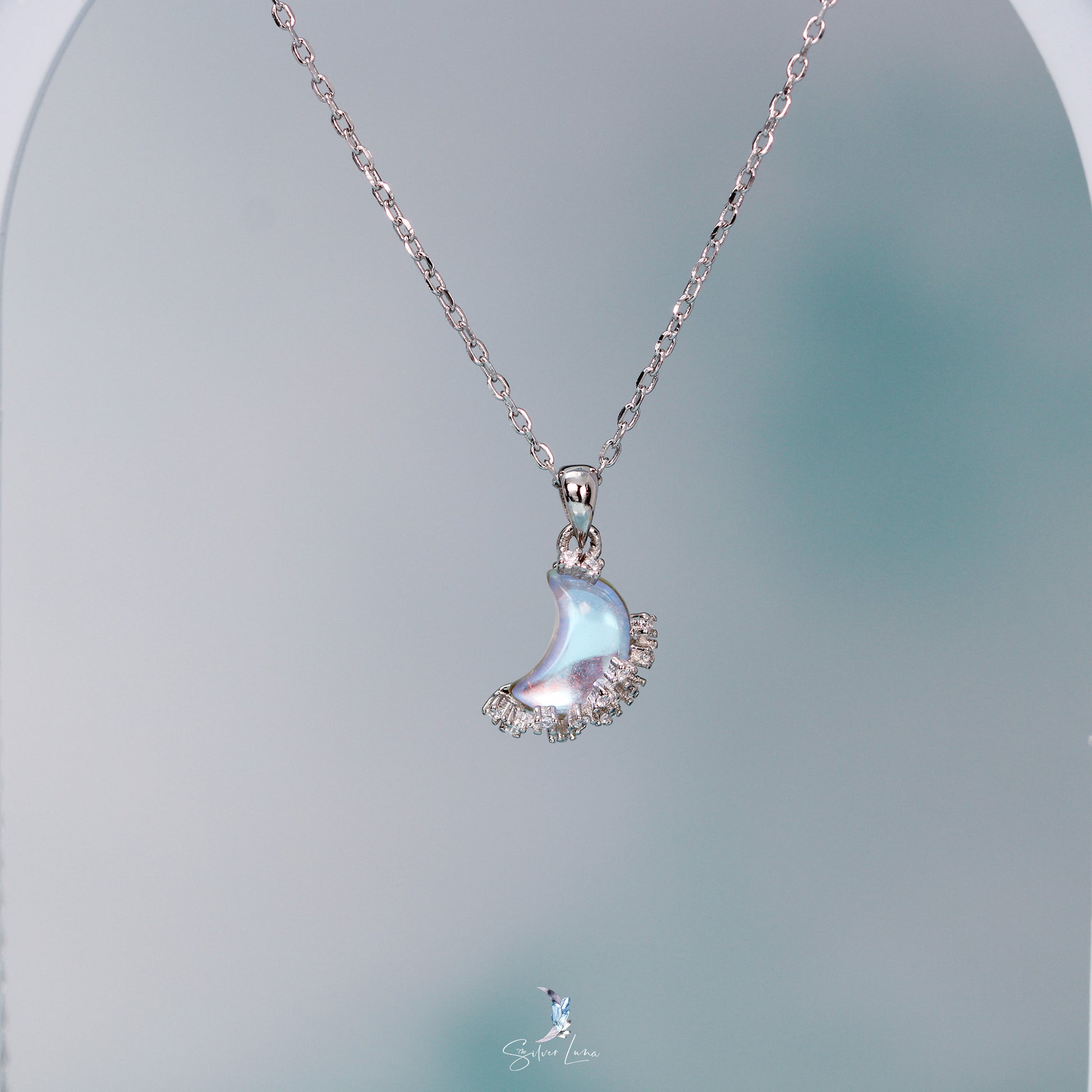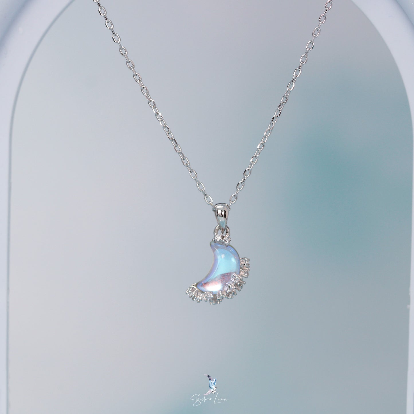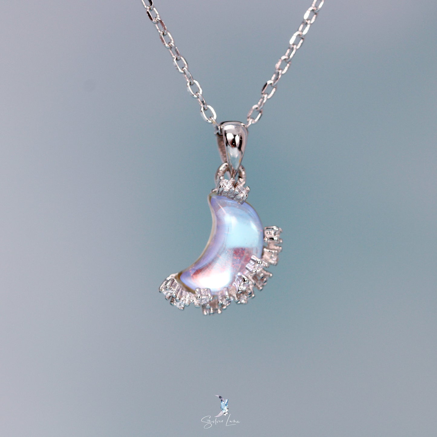 Synthetic moonstone sterling silver pendant necklace