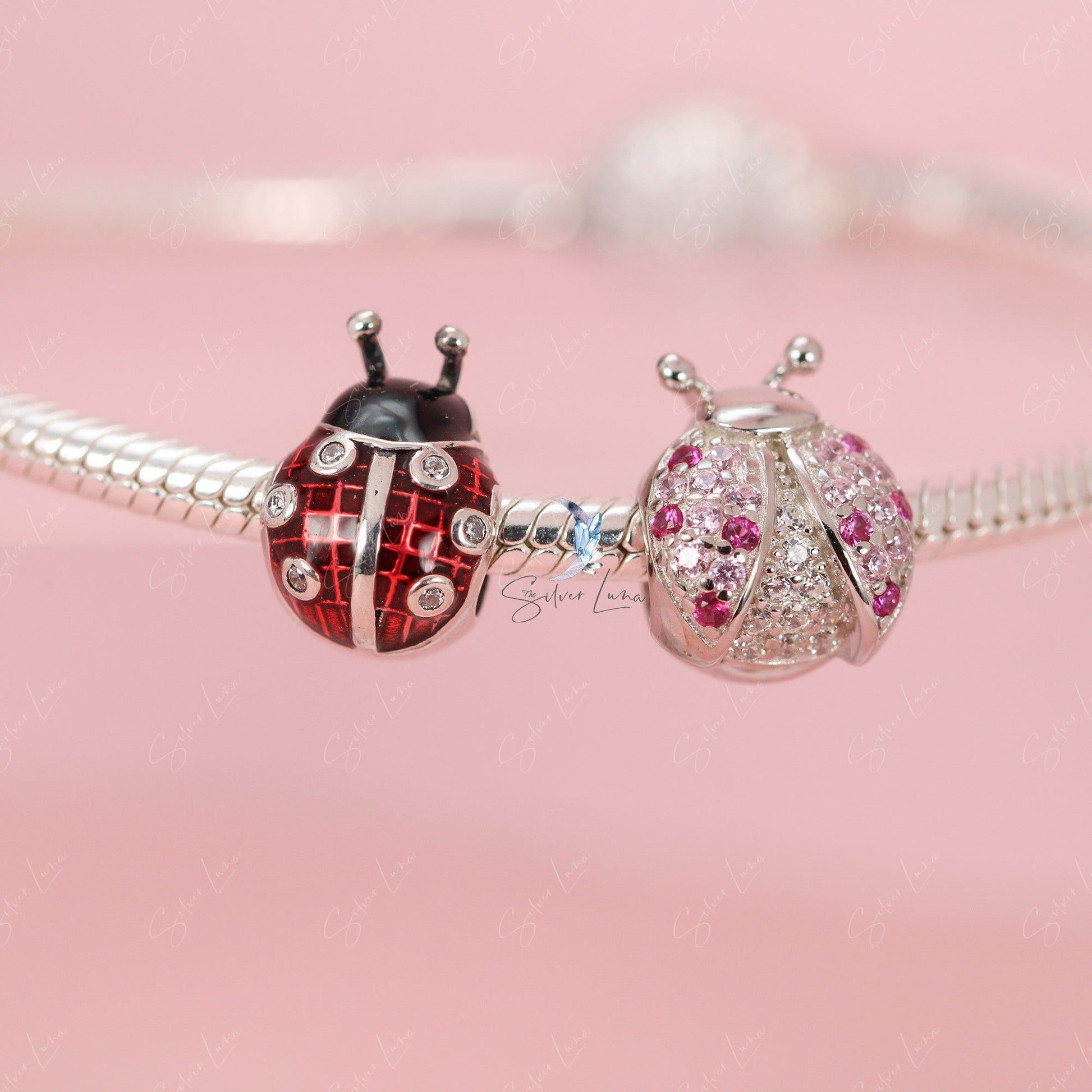 This cute ladybug charm for bracelet features small ladybug shape made of solid 925 sterling silver with cubic zirconia stones pave and platinum plating, highly polished for a great shine. Transform your bracelet with this adorable ladybug charm! Made with high-quality sterling silver and sparkling cubic zirconia stones, it adds a touch of charm and elegance to any outfit. The platinum plating gives it a luxurious finish, making it a must-have in your collection. Plus, its polished design creates an irresistible shine that will catch everyone's eye.