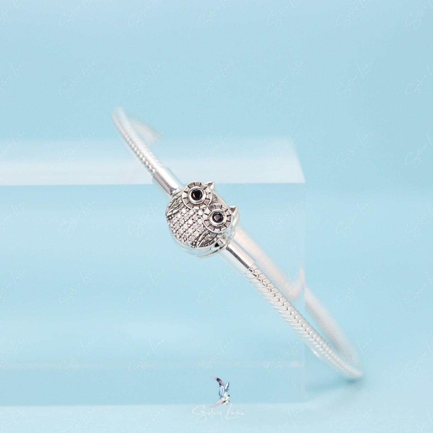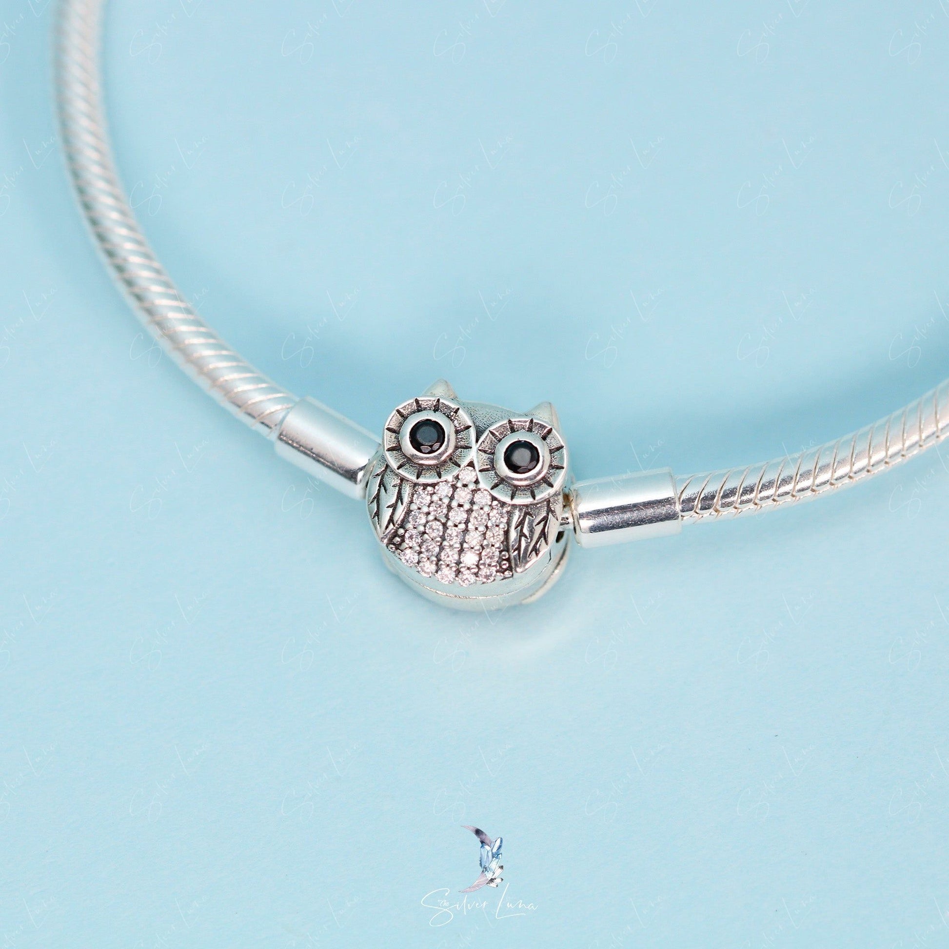 Cubic zirconia owl closure bracelet for charms