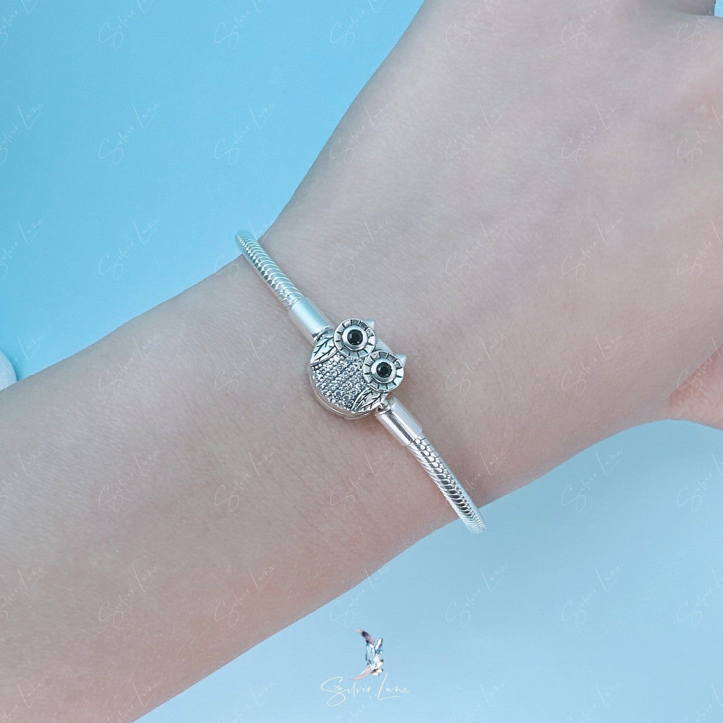 Unleashing the power of the mystical owl, this bracelet is specifically designed to perfectly fit large hole charms. The eye-catching owl closure is adorned with dazzling cubic zirconia, adding a touch of elegance to your ensemble. Made of high-quality 925 sterling silver, this bracelet is both supple when open and sturdy when closed. Give the gift of magic and add charms to your loved one's collection for an unforgettable story.