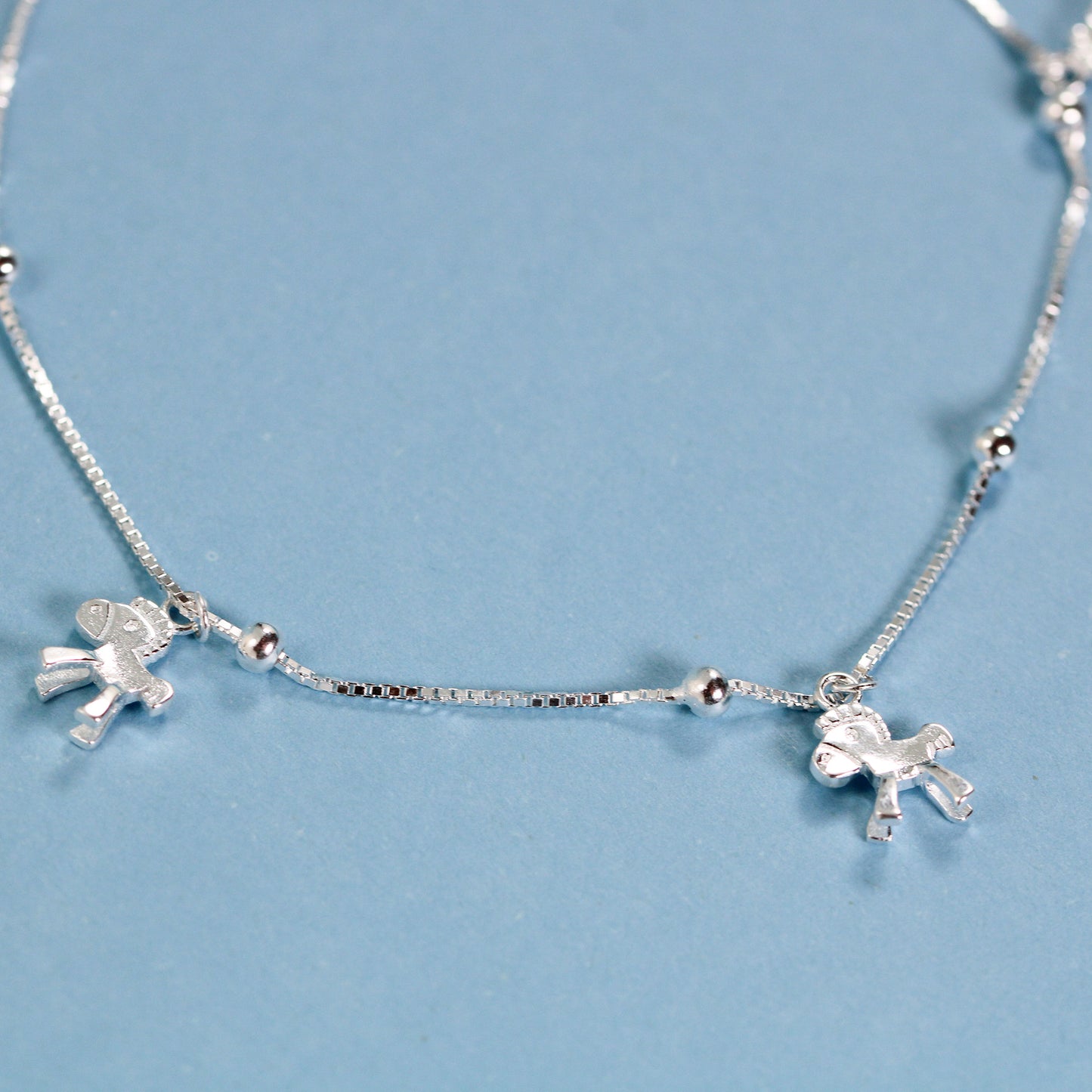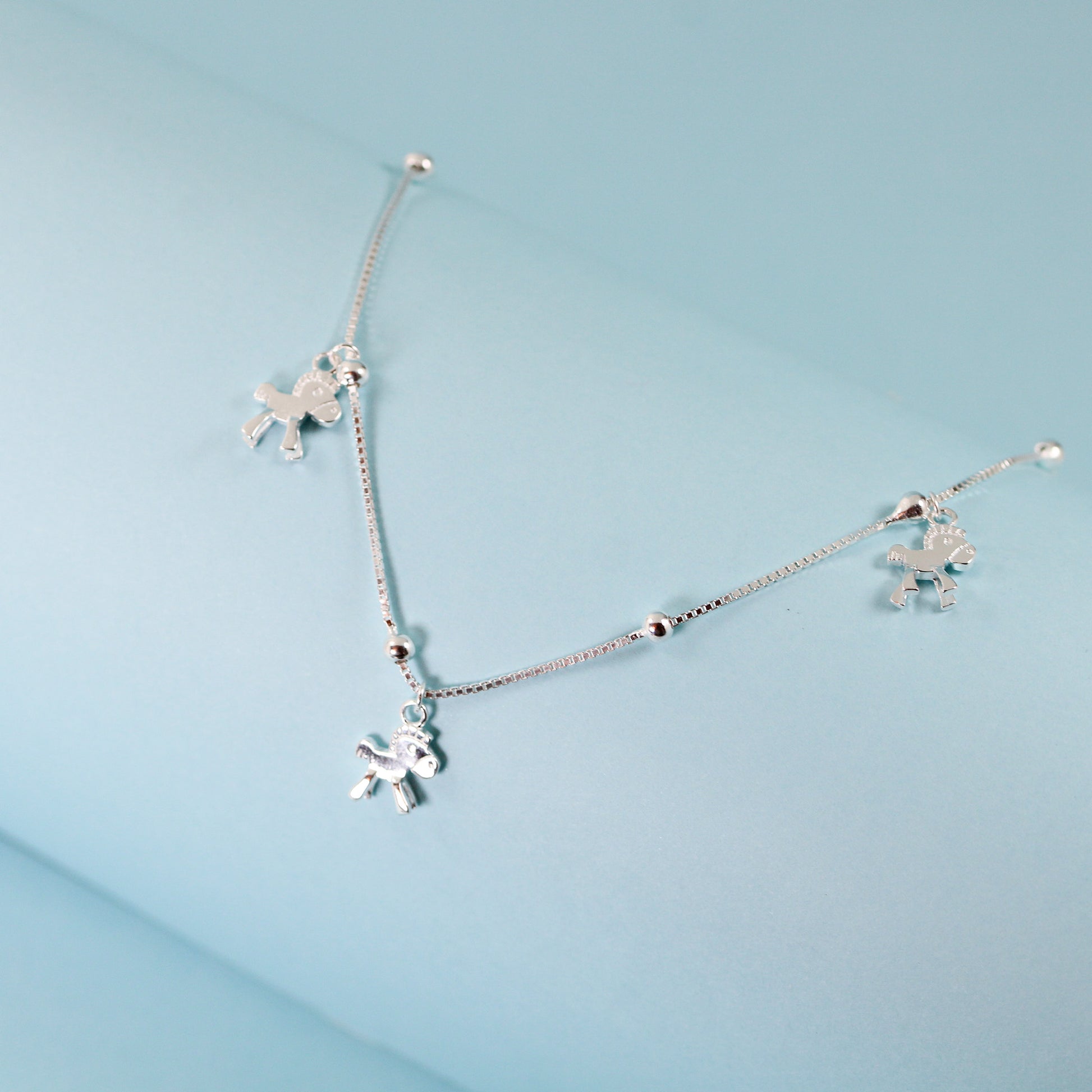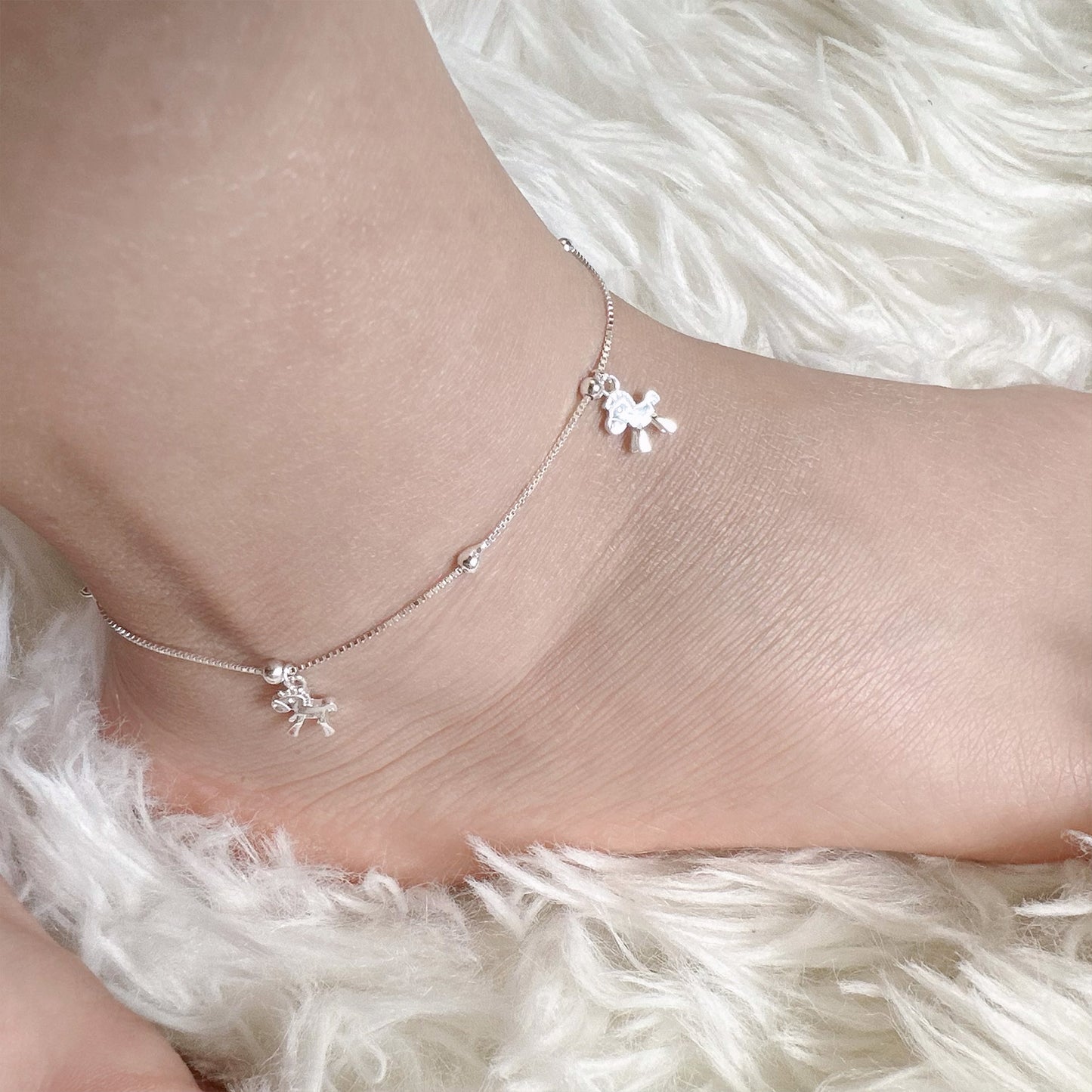 Unleash your inner equestrian style with this adorable horse charm ankle bracelet. Made of high quality 925 sterling silver, this charm adds a touch of cuteness to any outfit. Perfect for horse lovers, the delicate link chain and secure clasp make it easy to wear and show off your passion for these majestic creatures. Don't just accessorize, make a statement!