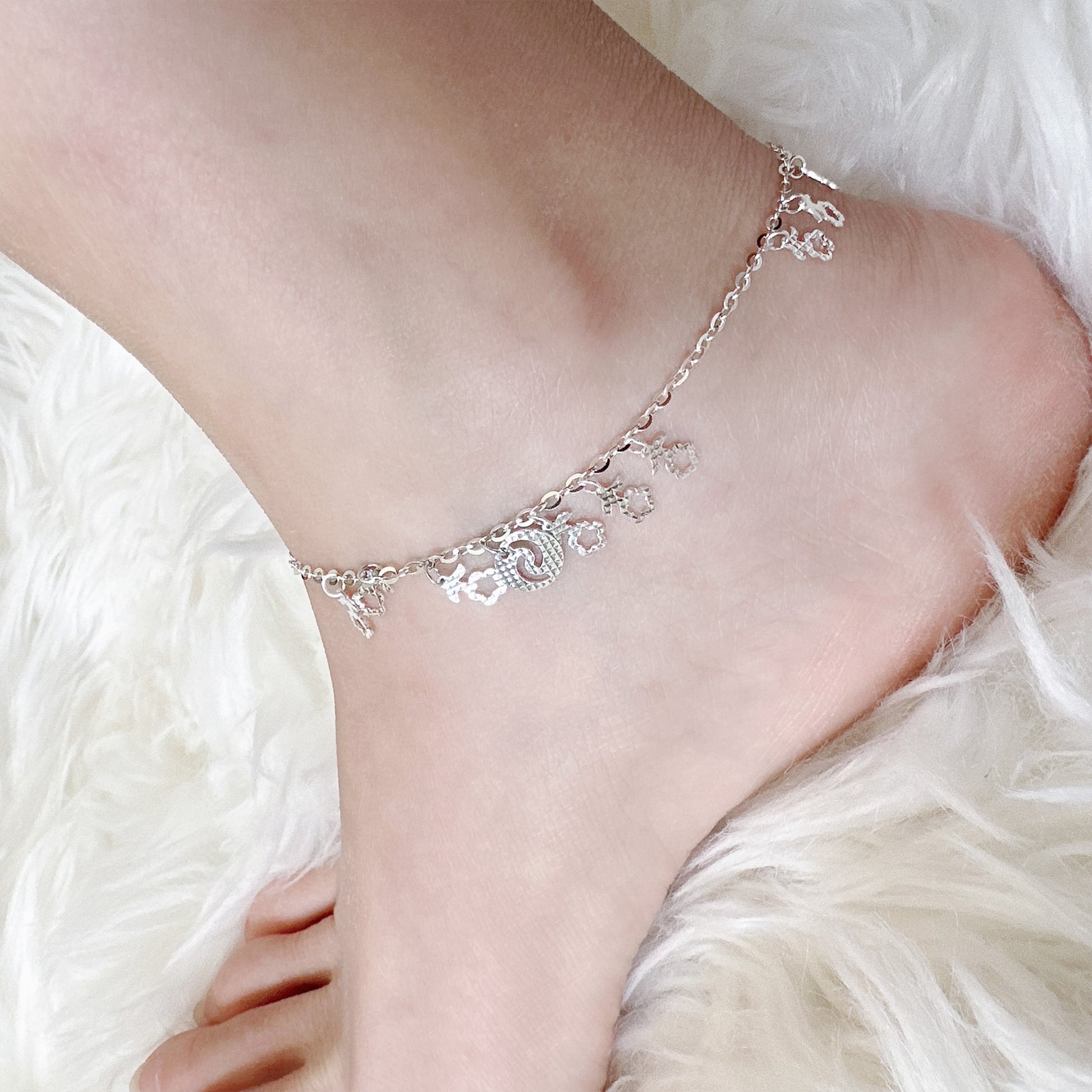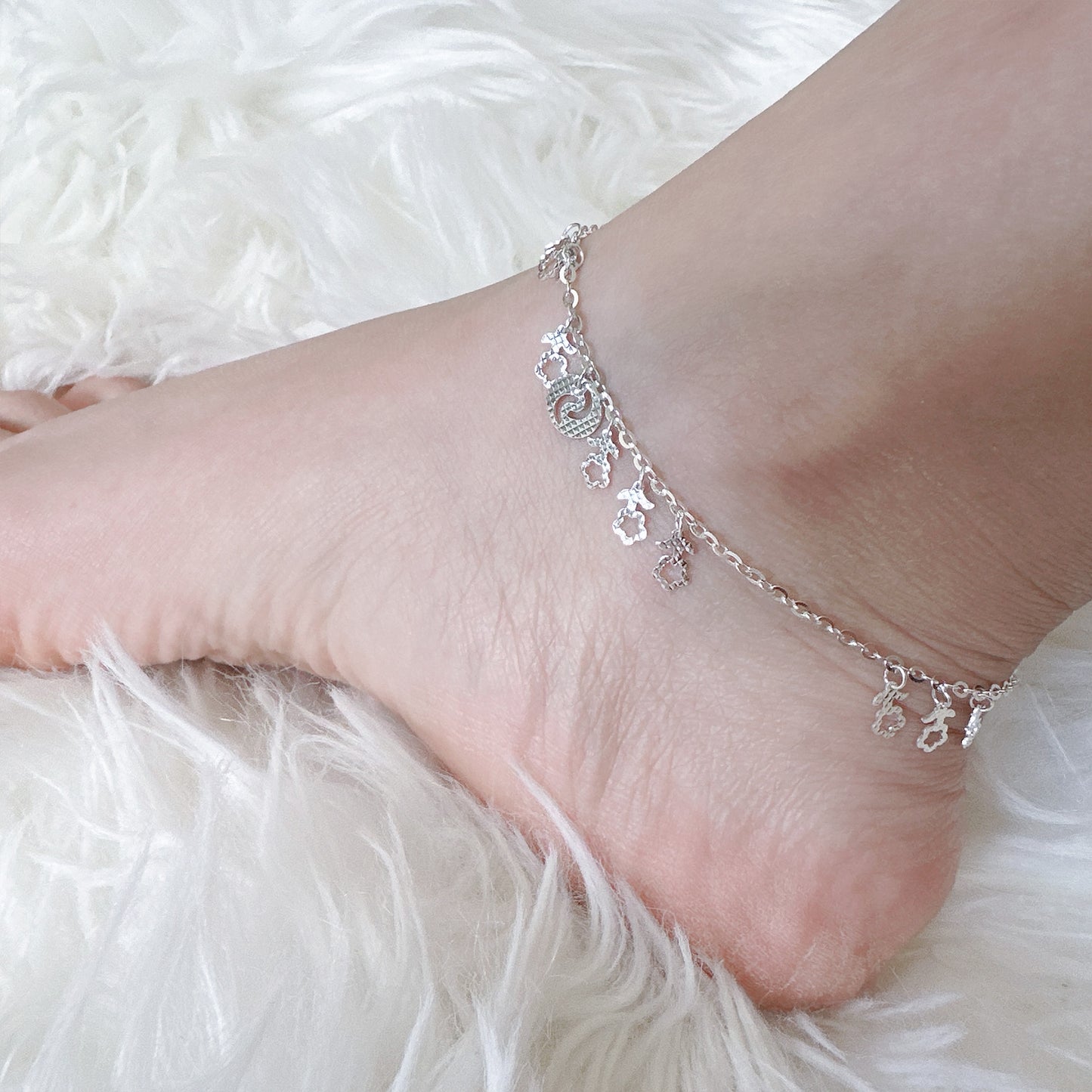Indulge in the ultimate feminine accessory with our Dazzling Flower Charms Sterling Silver Anklet! Featuring stunning flower charms in a classic sterling silver chain, this anklet adds a touch of elegance to any outfit. Perfect for any occasion, it's a must-have for every fashion-forward woman!
