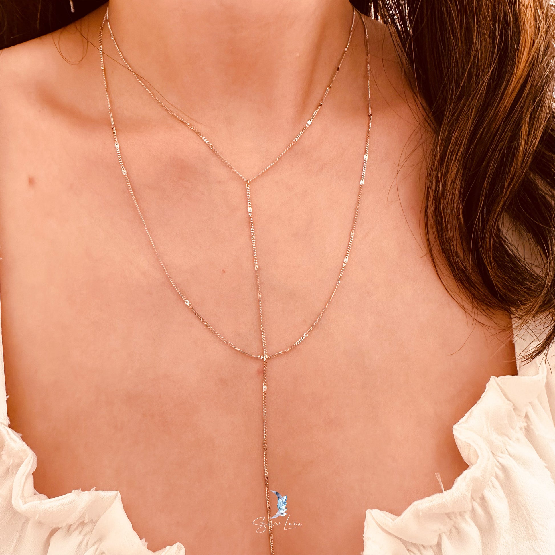 Indulge in the luxurious look of this double layer long chain silver necklace, crafted with dazzling 925 sterling silver and featuring a dramatic long chain drop at its center. Elevate your everyday style or gift it to someone special with this exquisite double layer necklace.