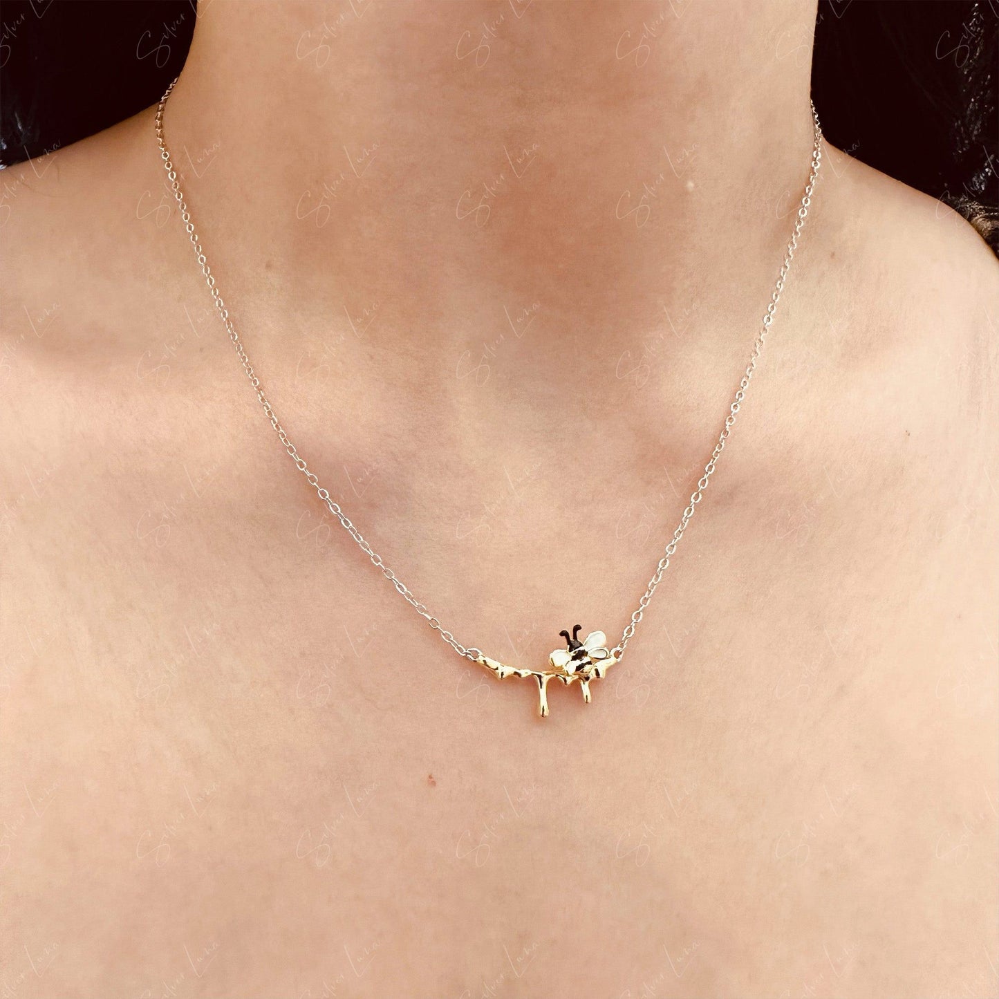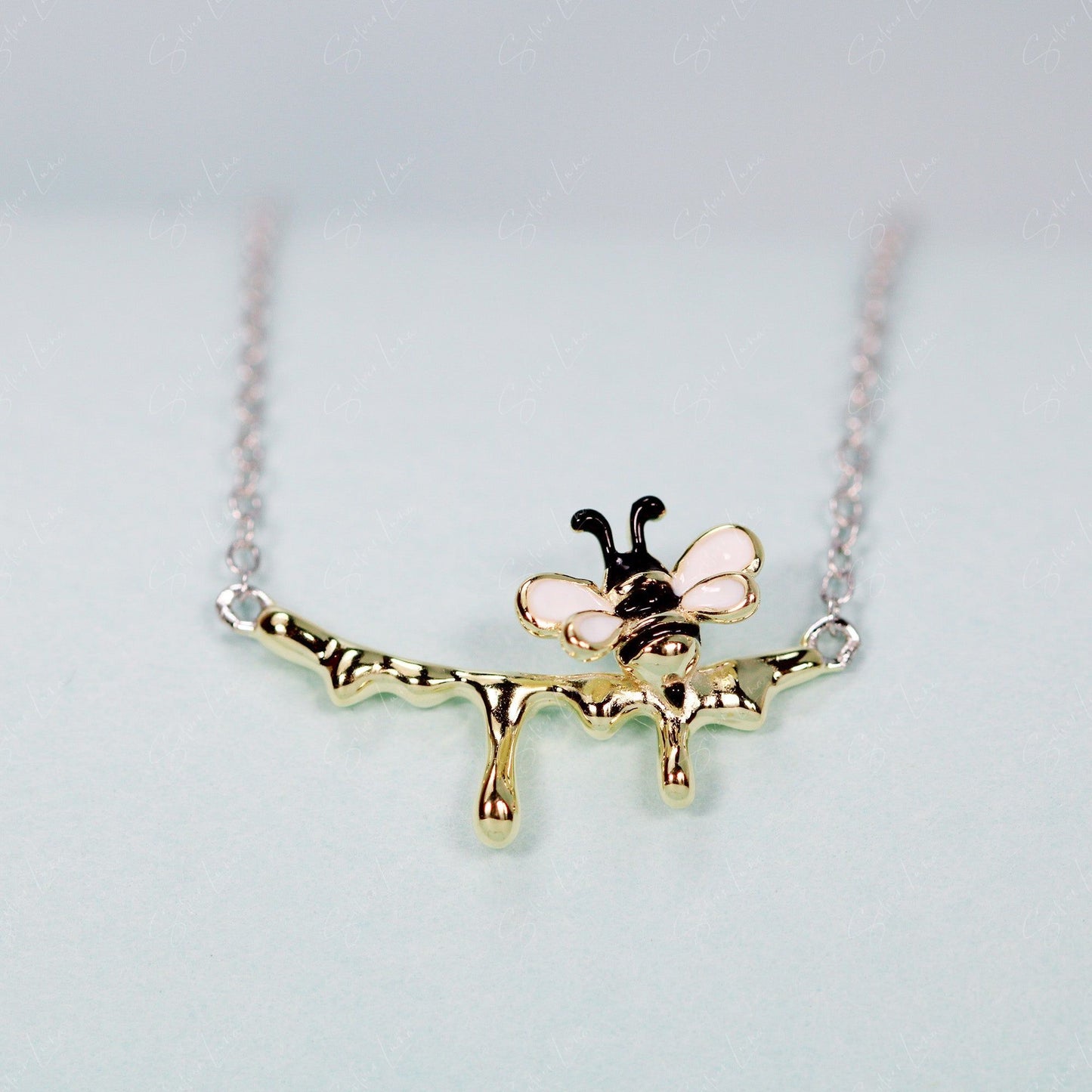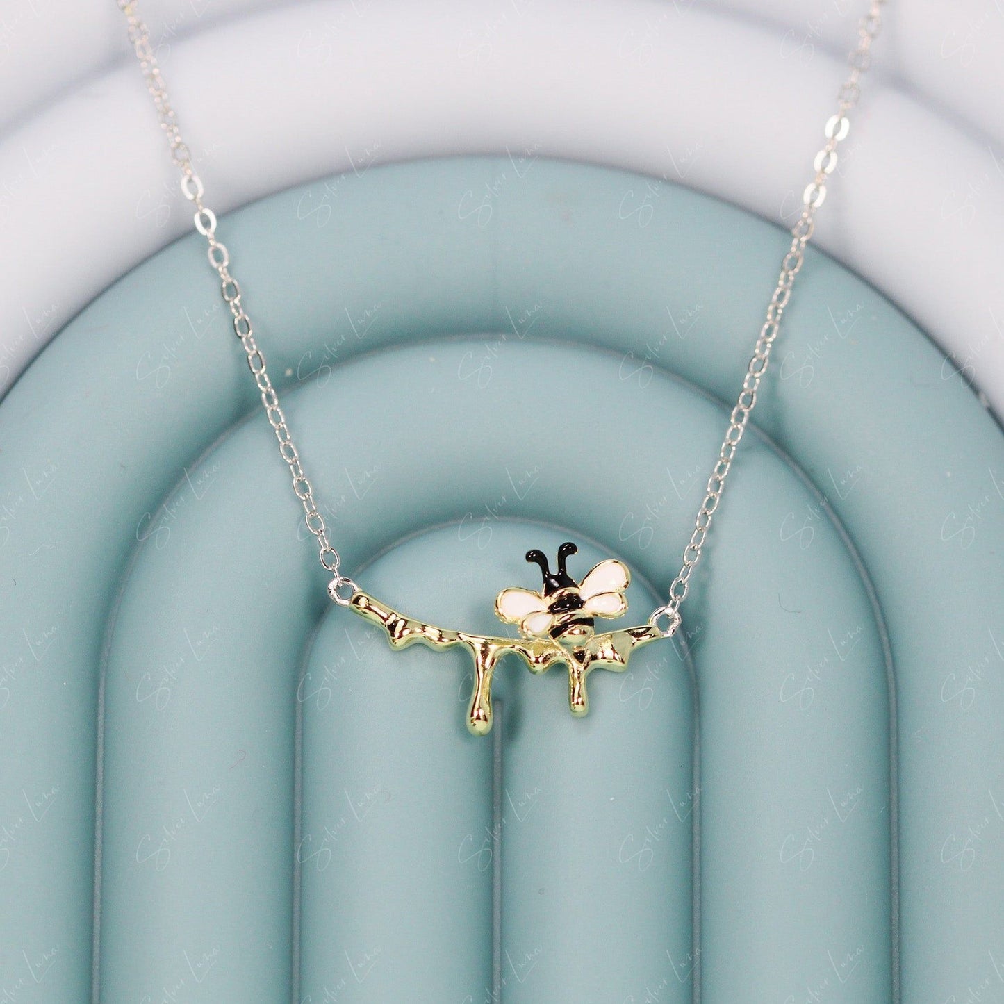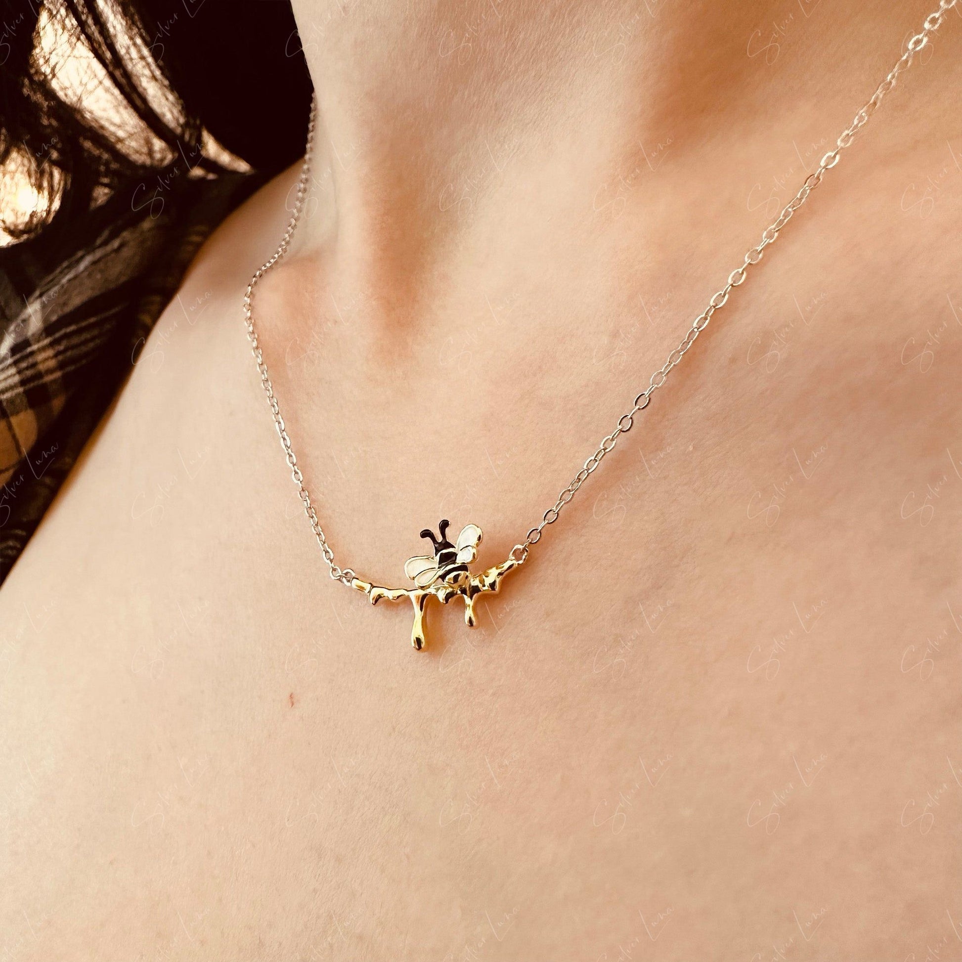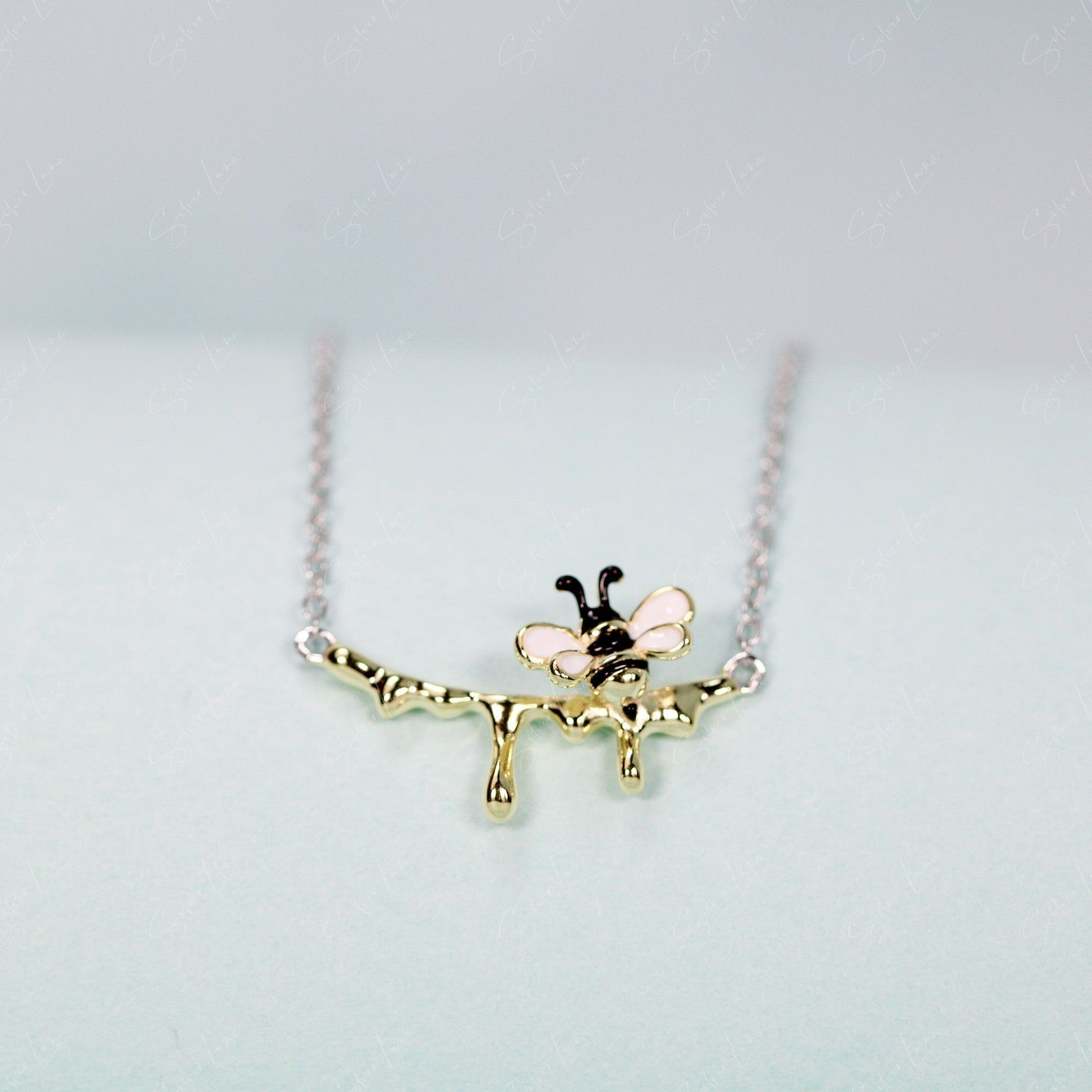 Dripping honey bee sterling silver pendant necklace