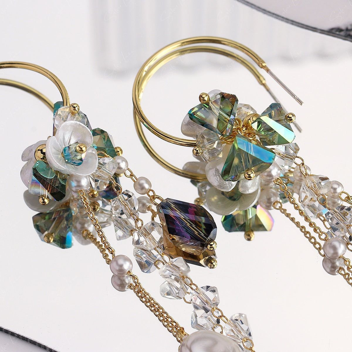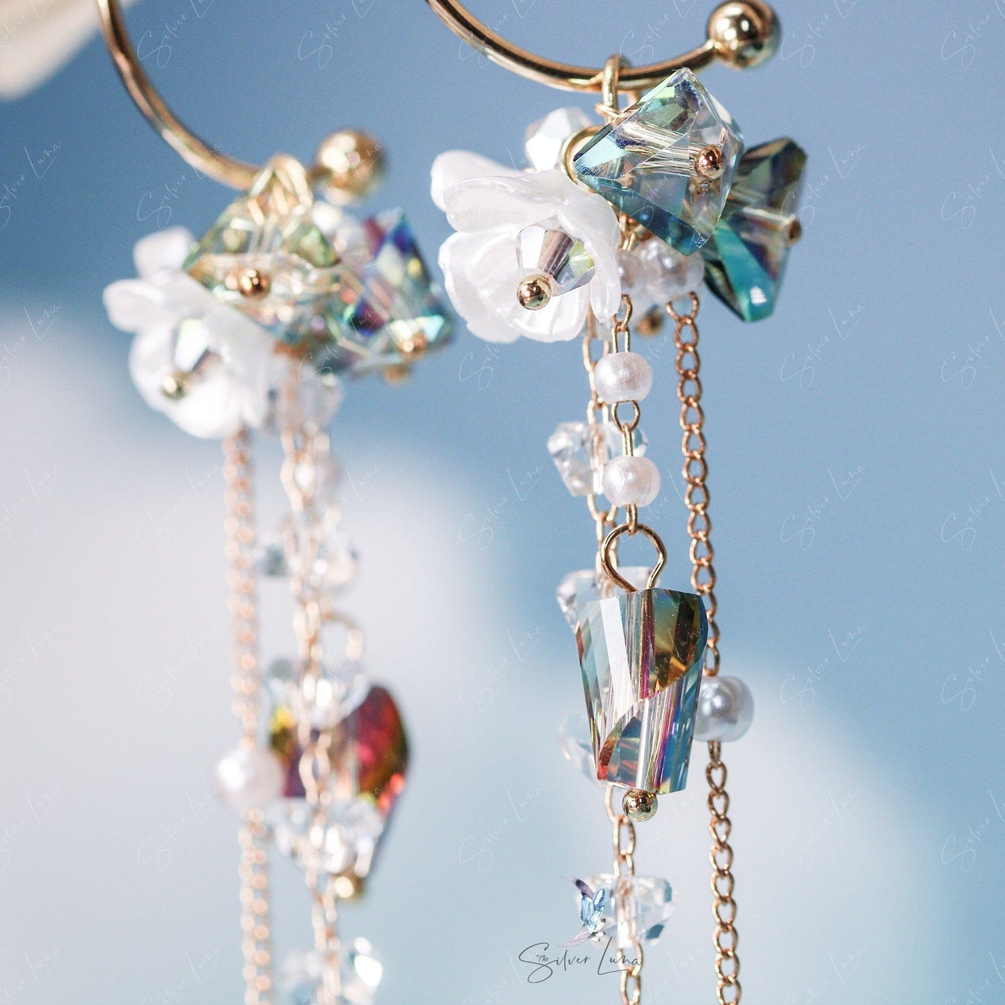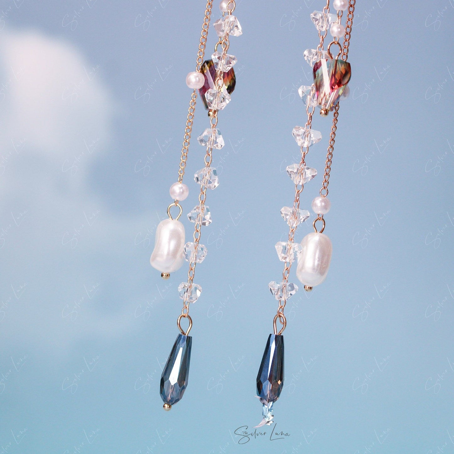 Materials: crystal beads, pearls, alloy