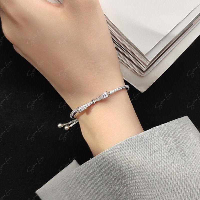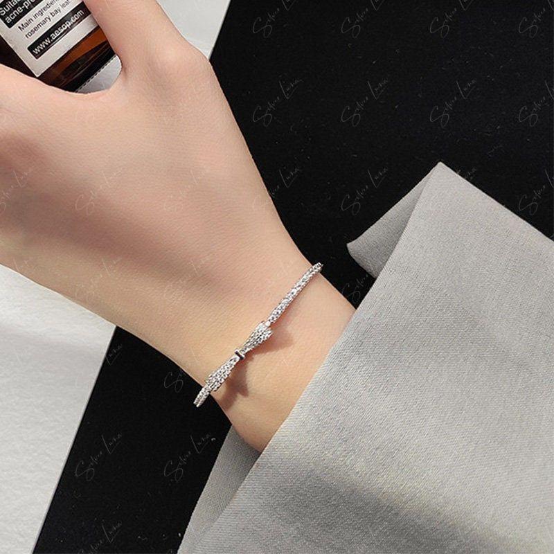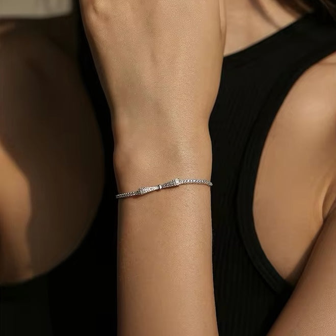 Bowtie cubic zirconia sterling silver bracelet