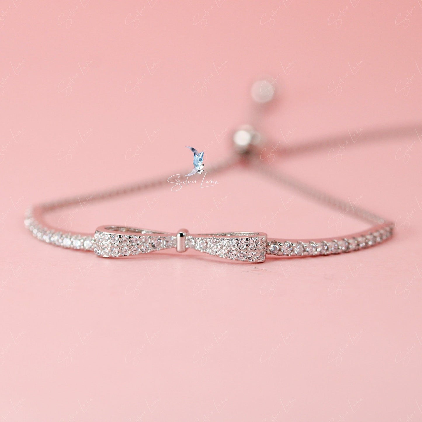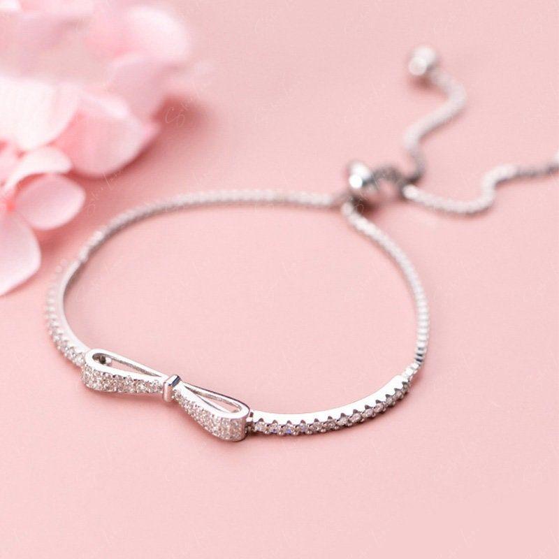 This stunning bow tie bracelet showcases an adorable bowtie adorned with shimmering cubic zirconia pave to enhance its reflective properties. The soft, adjustable box chain adds to its elegance, and it is expertly crafted from solid 925 sterling silver with platinum plating for a luxurious finish. Add this exquisite bow tie bracelet to your jewelry collection or gift it to a loved one for a truly special occasion.