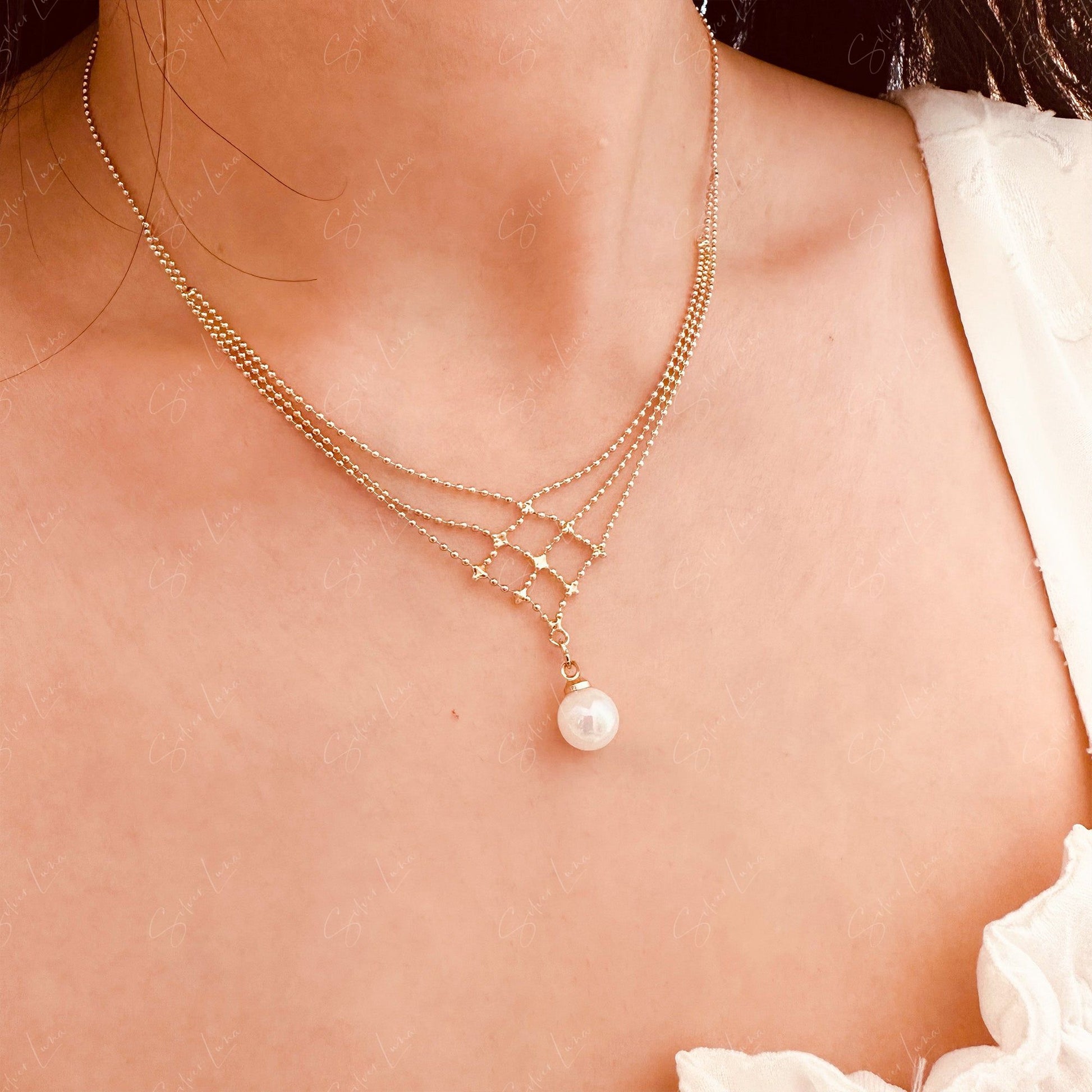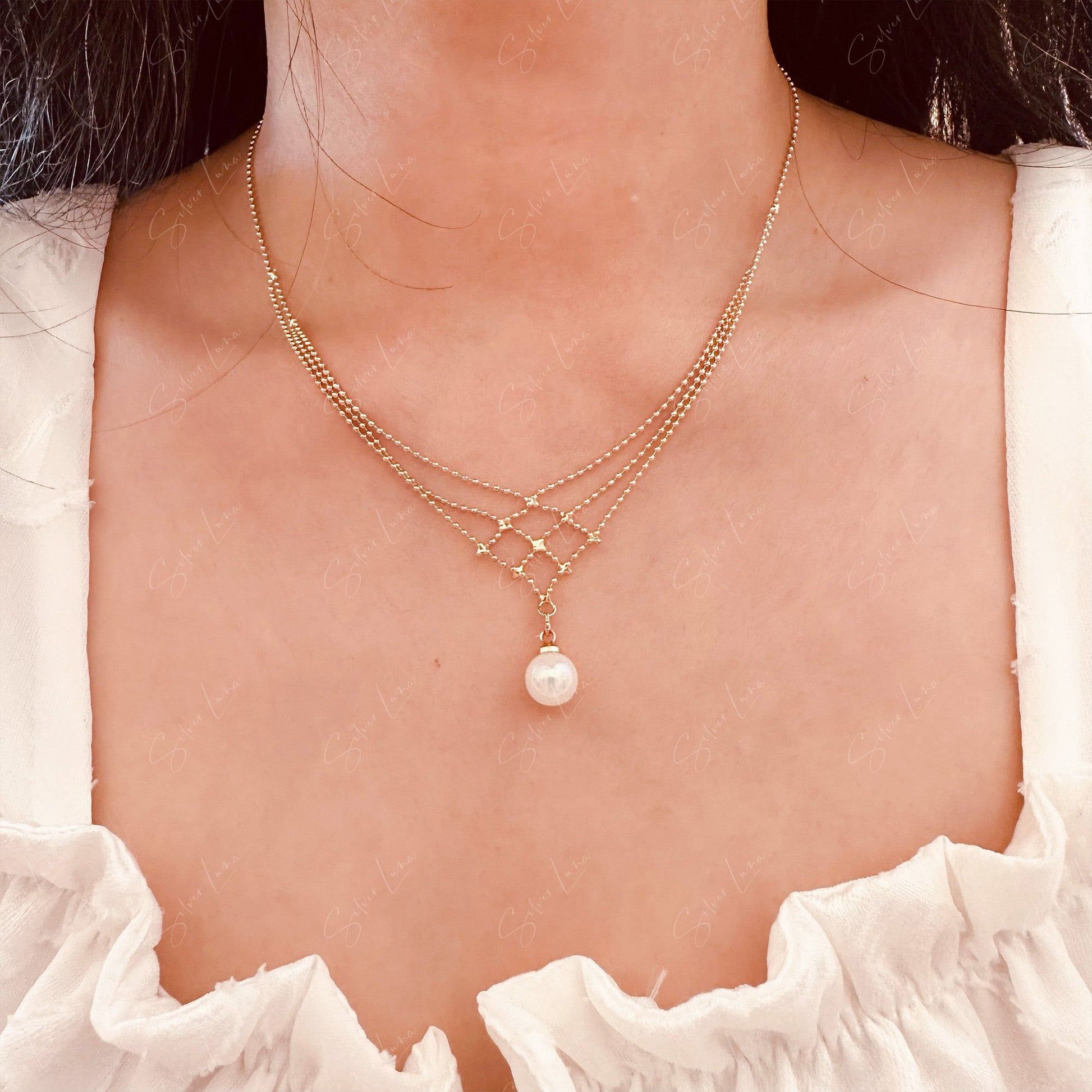 This necklace features elegant pearl drop with a nice woven ball bead chain that will make you shine, a perfect gift for your love one.