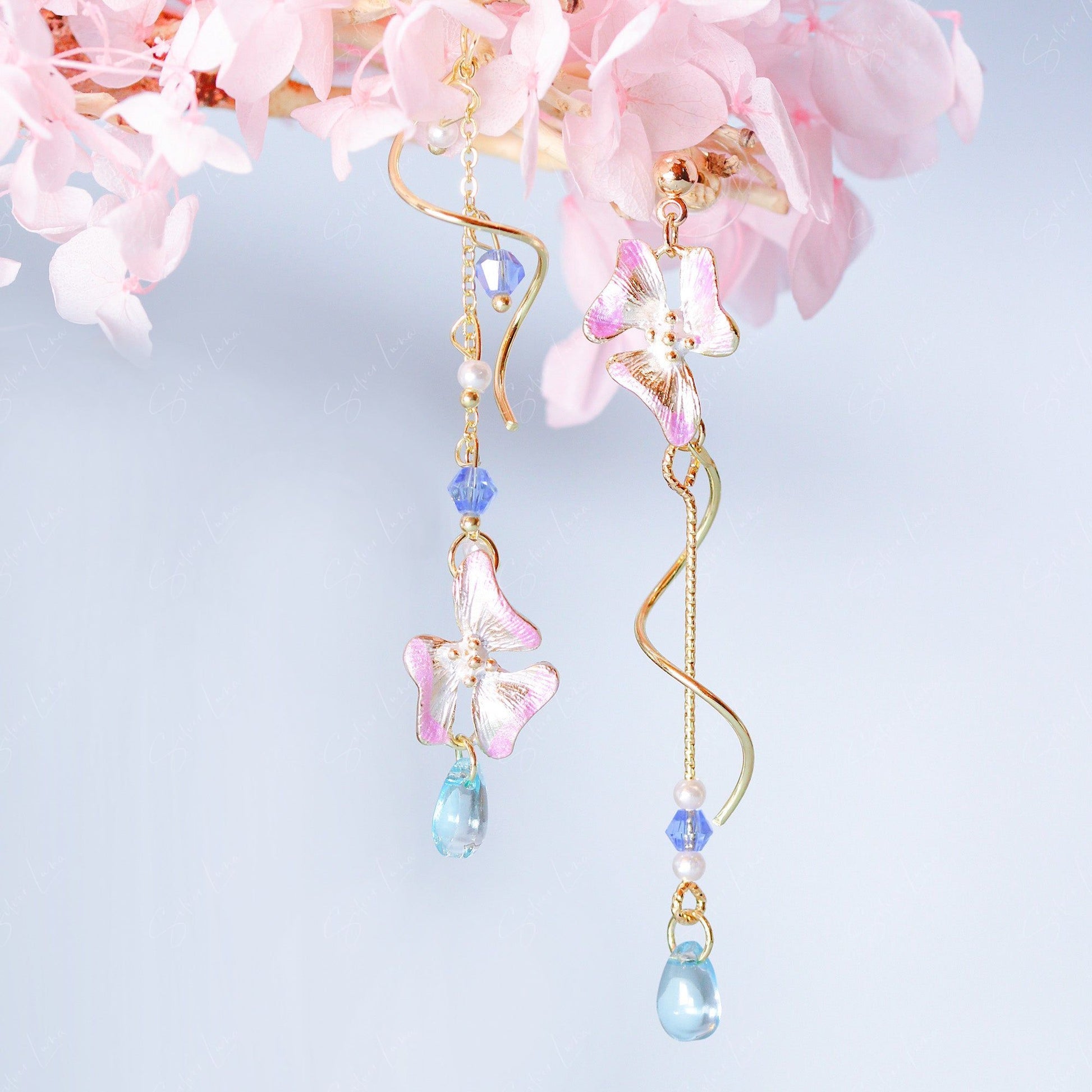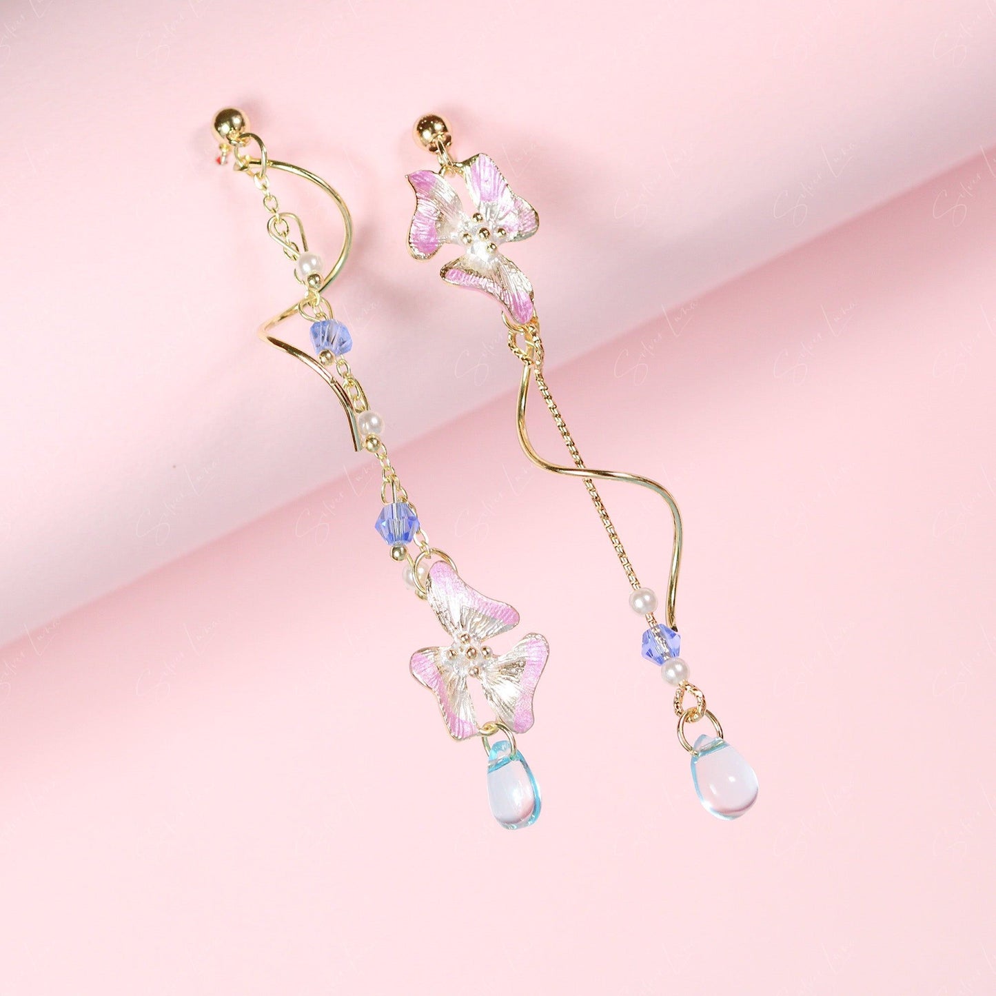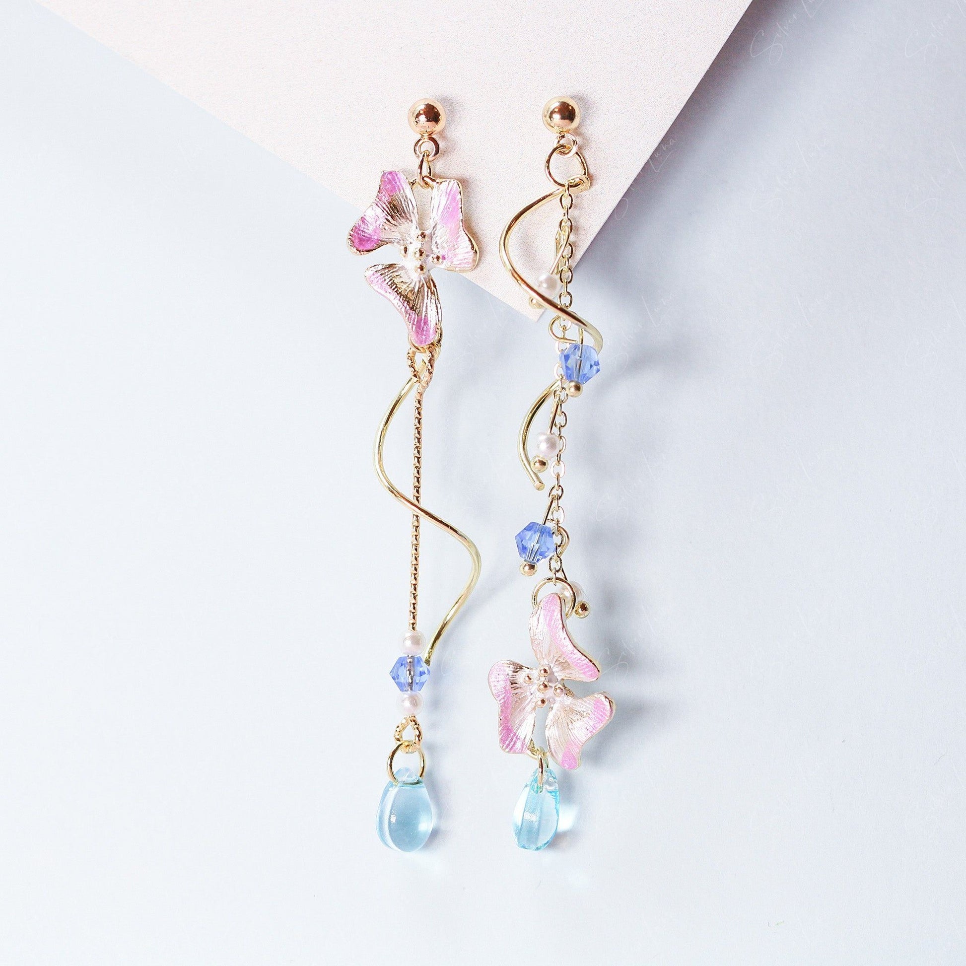 These elegant flower dangle drop earrings features asymmetric design flower with tear drop dangle end. These sweet temperament fashion earrings will elevate your outfit and make a unique statement.