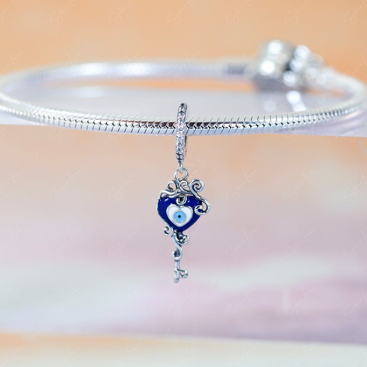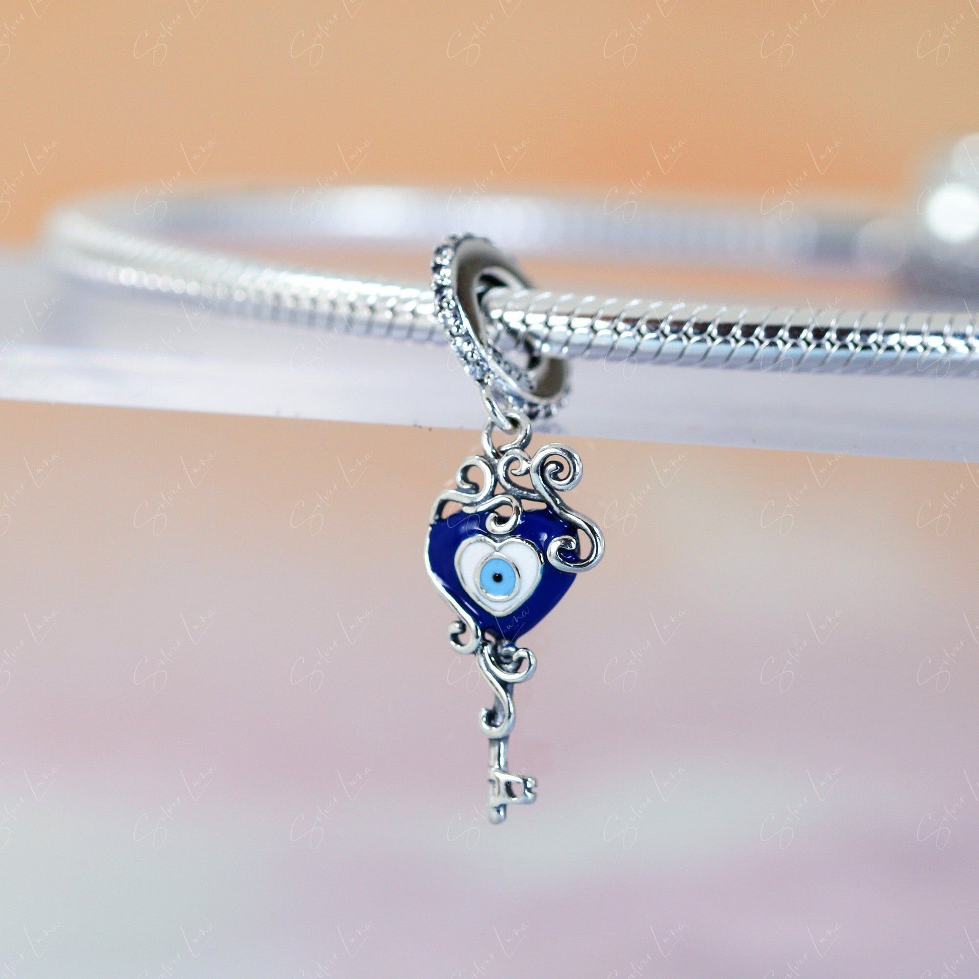 Evil eye amulet heart shape key pendant charm