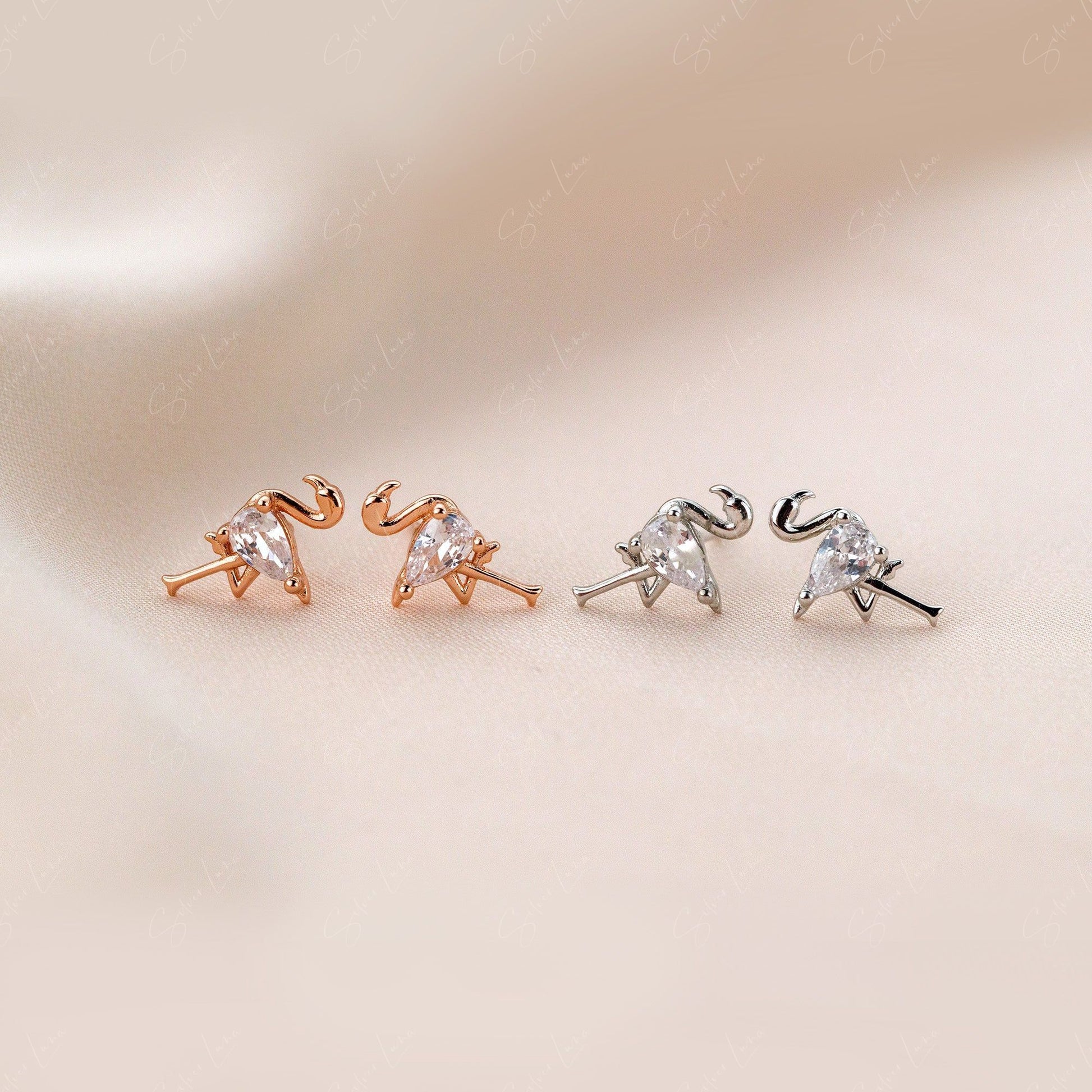 The flamingo silver stud animal earrings feature a unique design of flamingo with cubic zirconia gemstone in 925 sterling silver. With minimalist design, the dainty flamingo stud earrings can be a great everyday wear jewelry. Make a statement with these elegant flamingo earrings in sterling silver. The unique design and sparkling gemstone are sure to turn heads and add a touch of glamour to your everyday look!