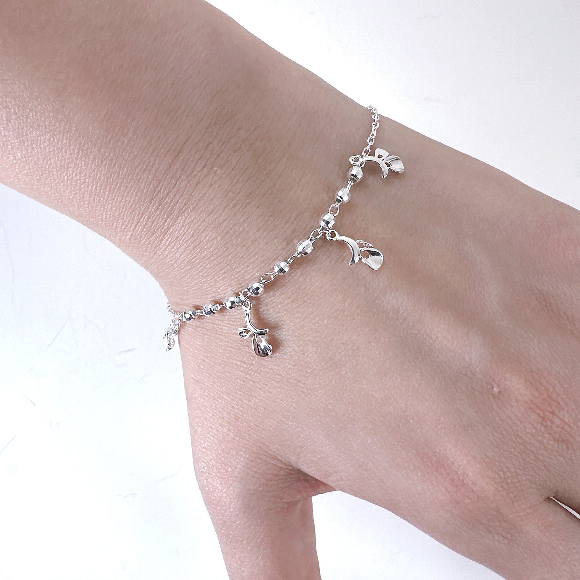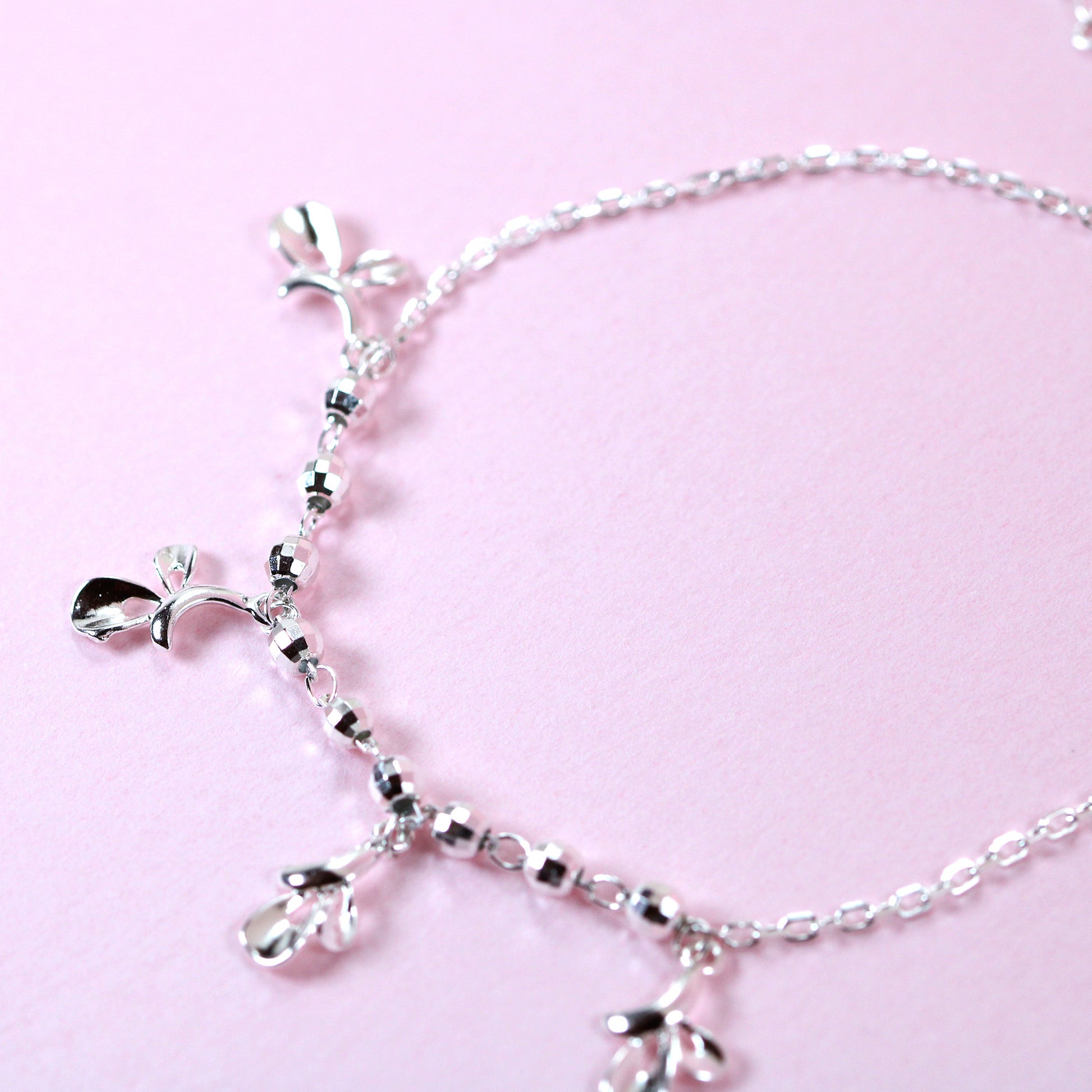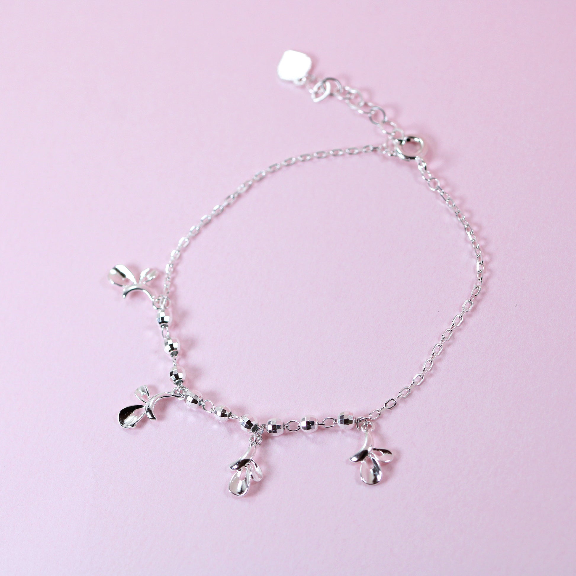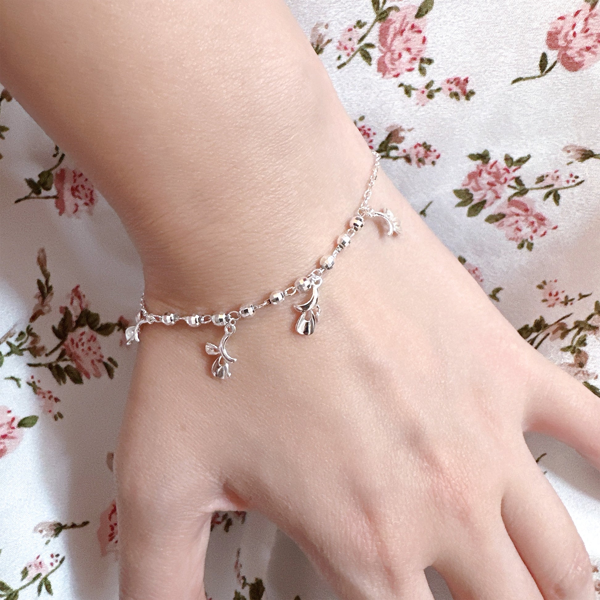Floral leaves charm ball chain silver bracelet