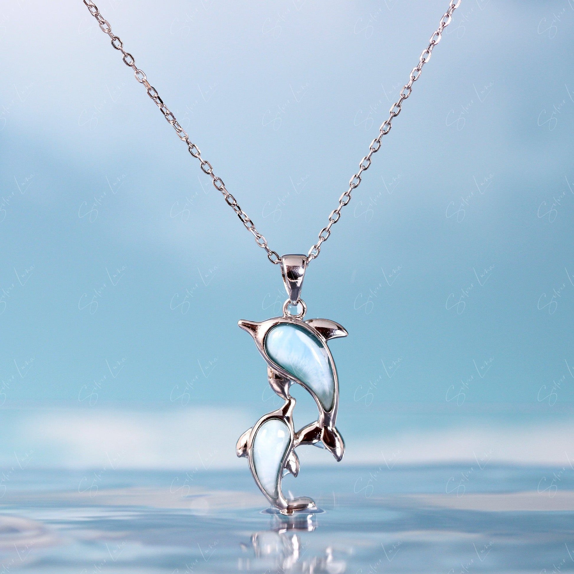 Ocean Larimar dolphins pendant necklace in sterling silver